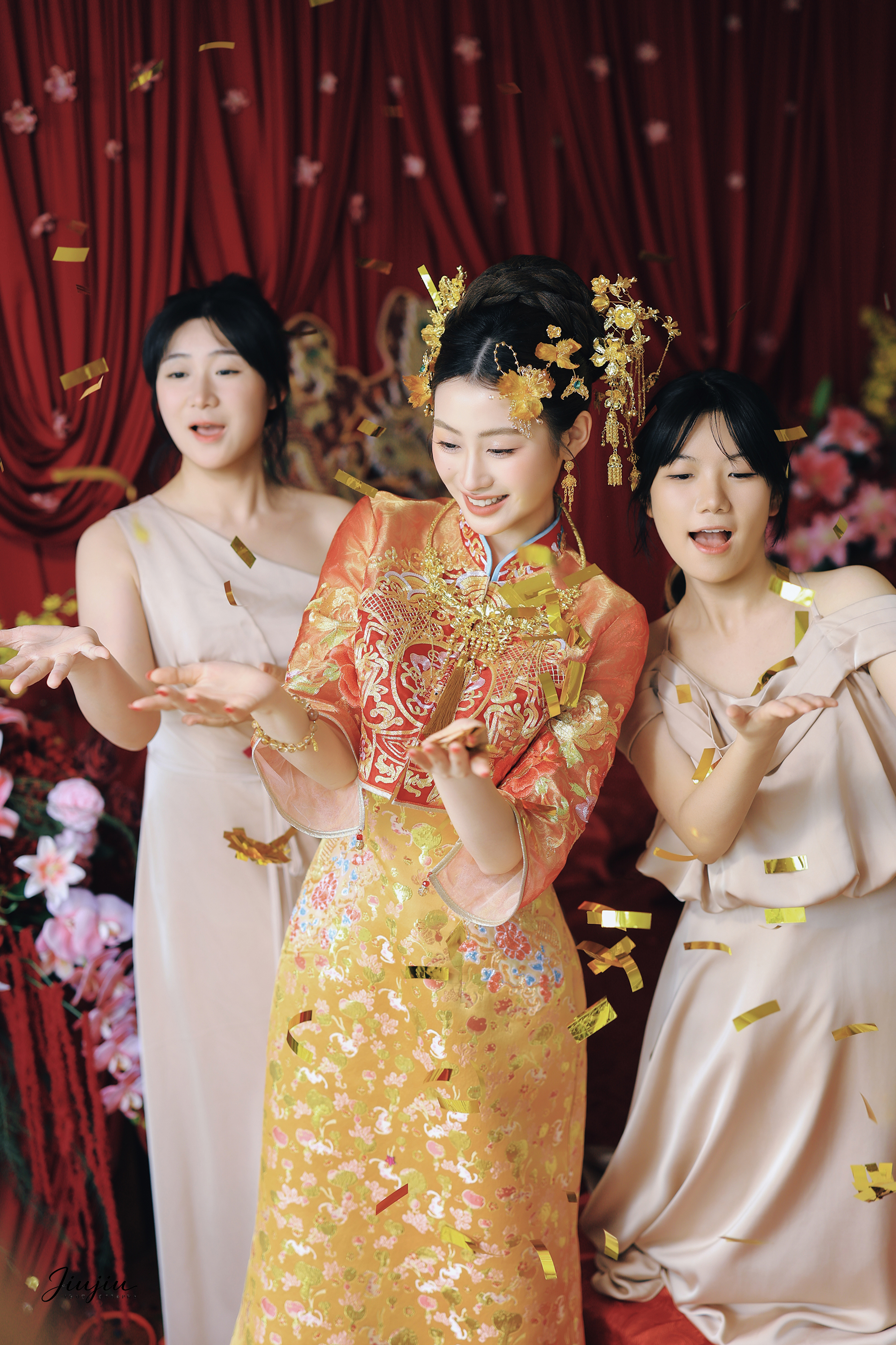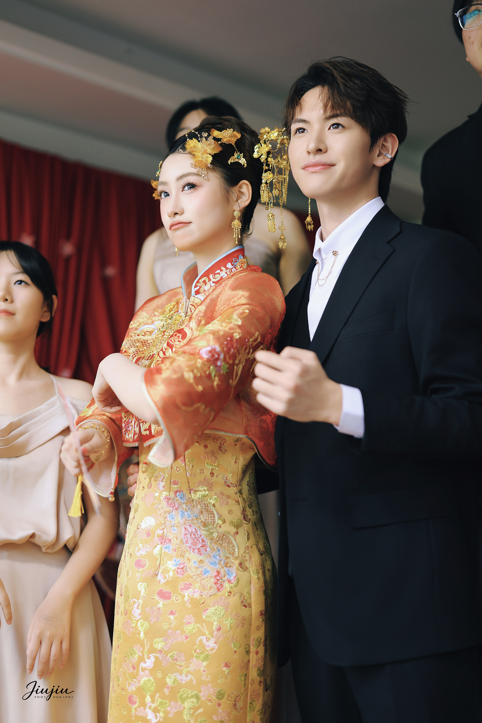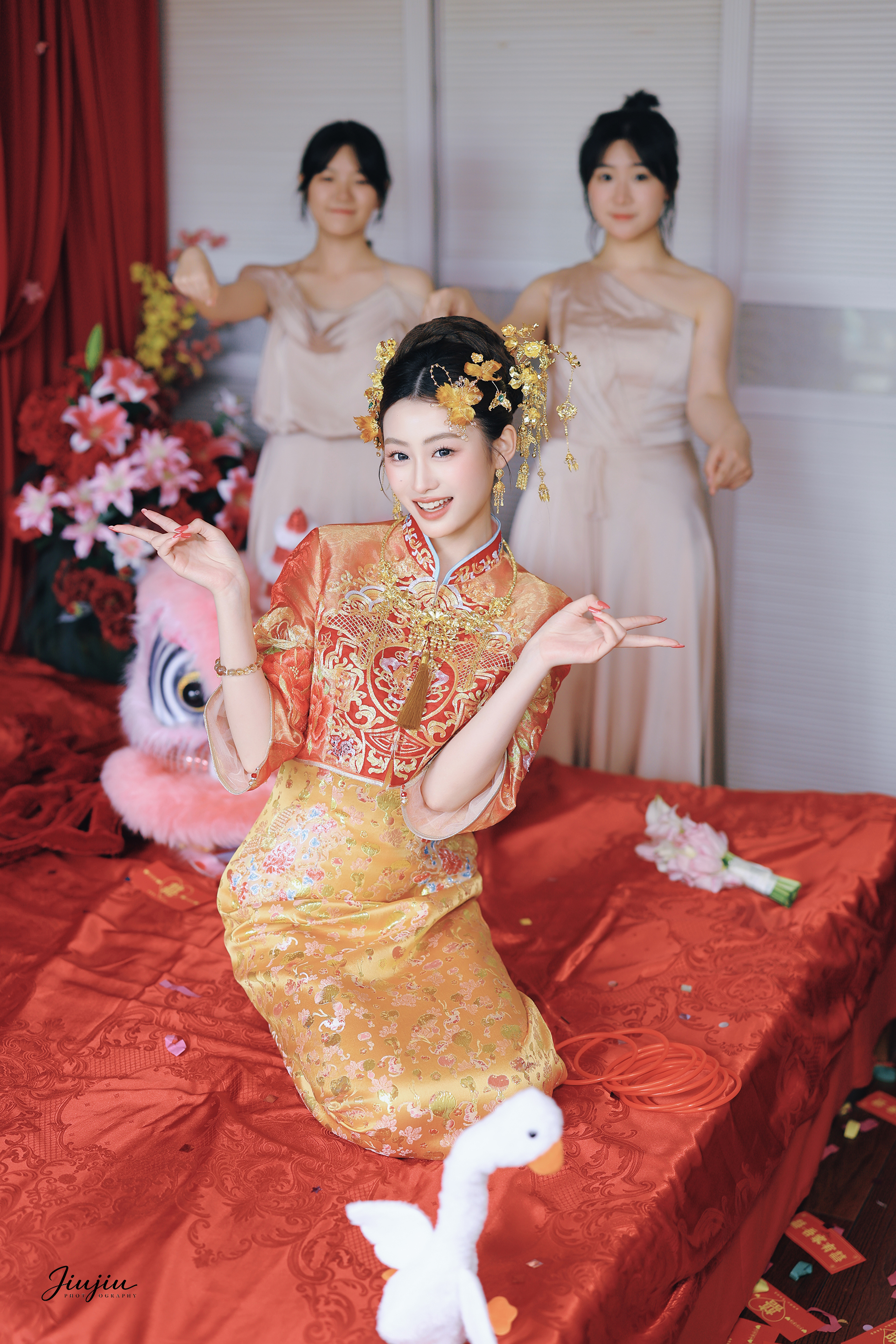 红色晨袍农村婚礼