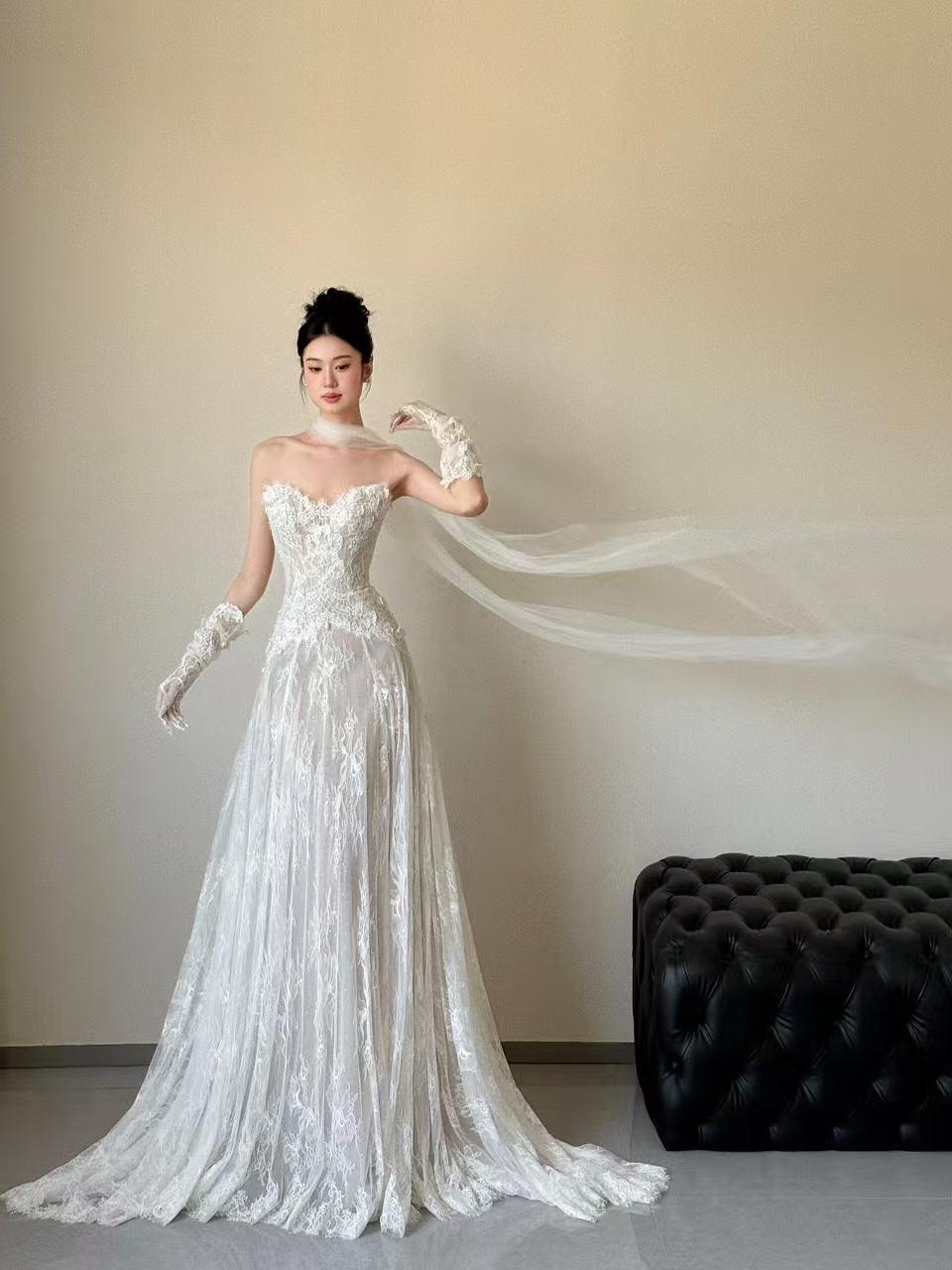 蕾丝缎面婚纱