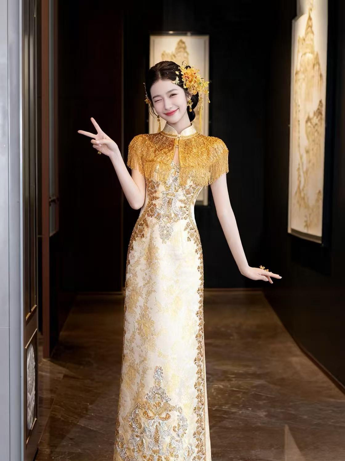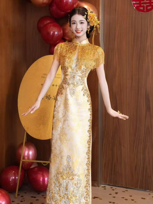 金色流苏旗袍