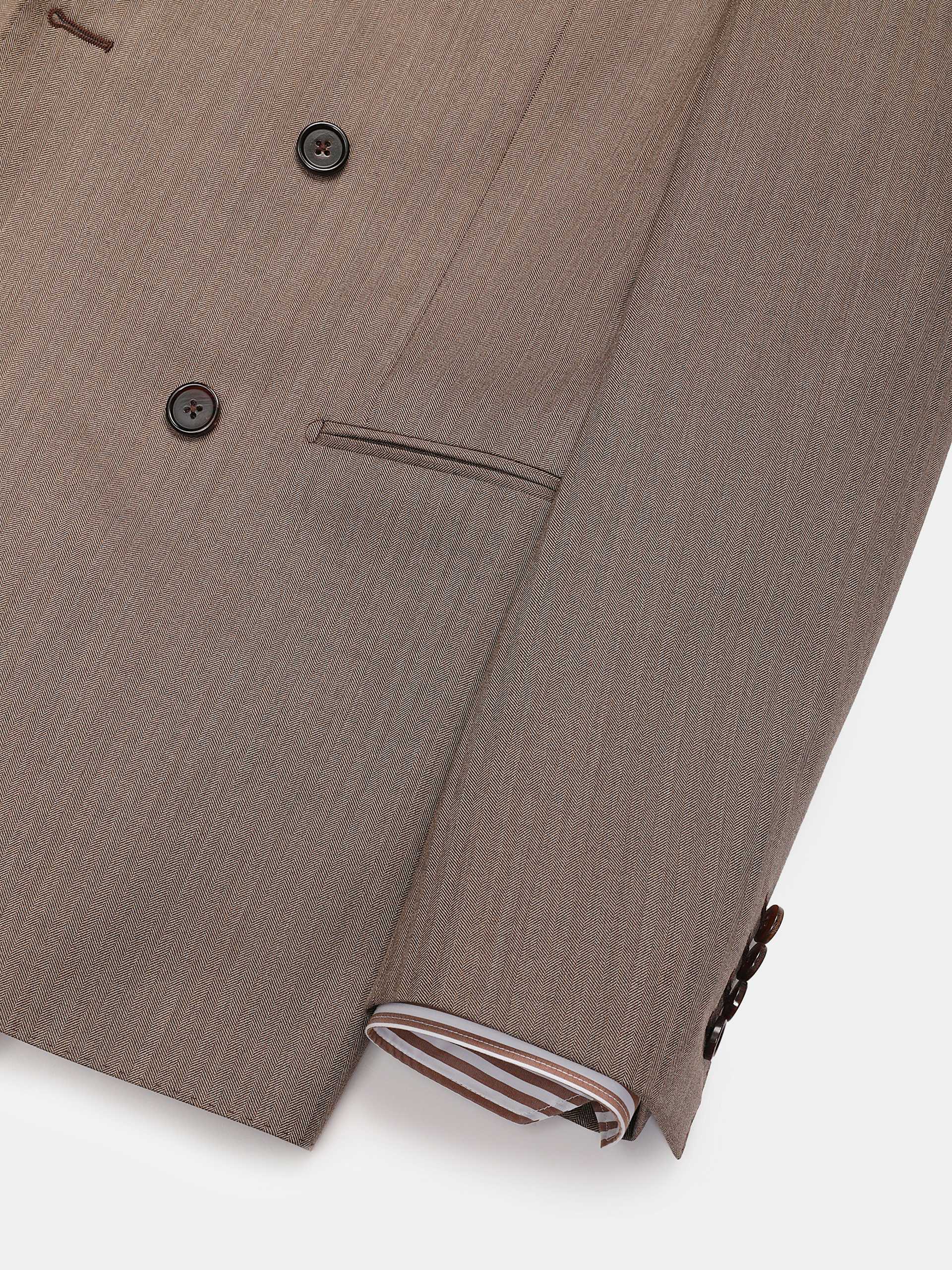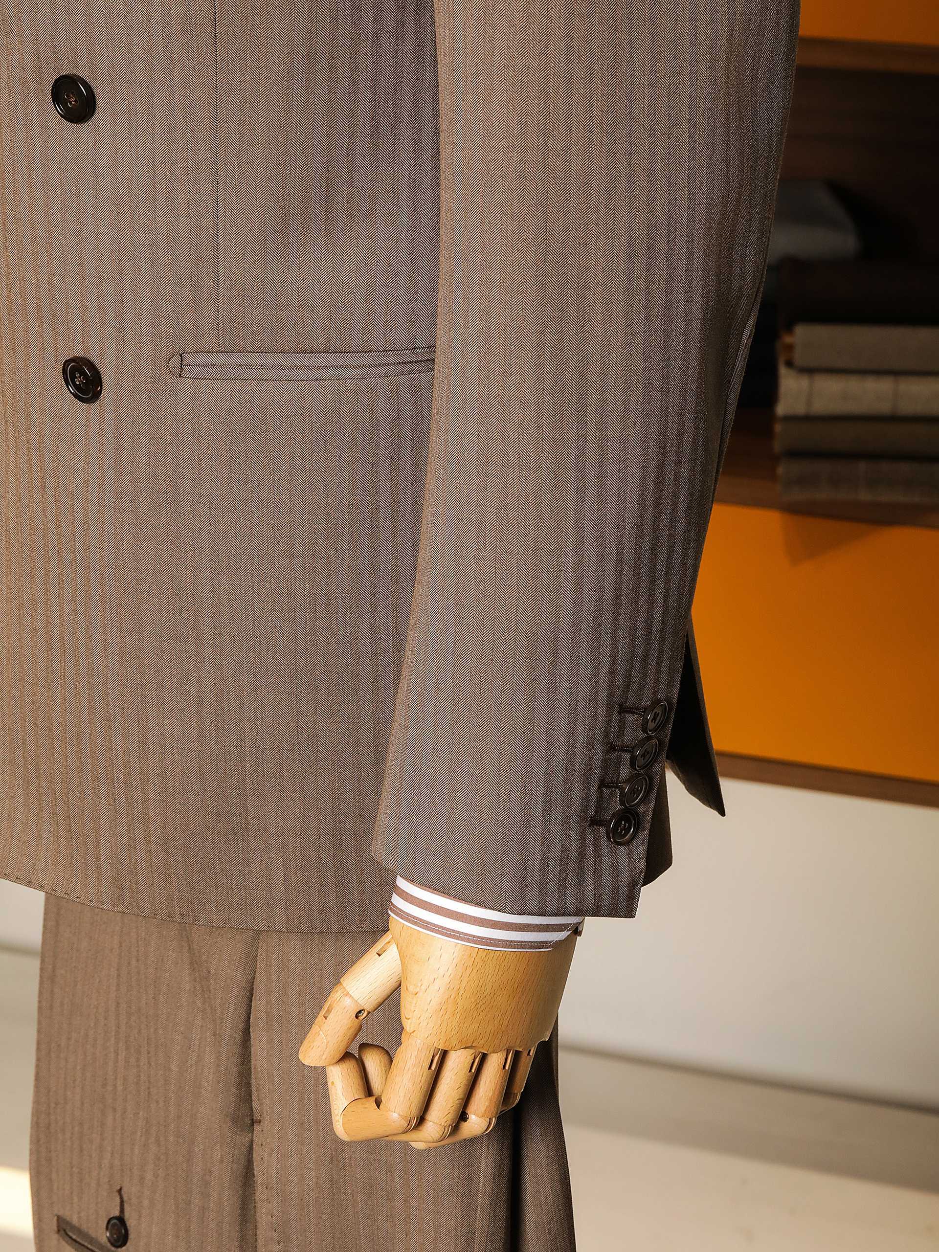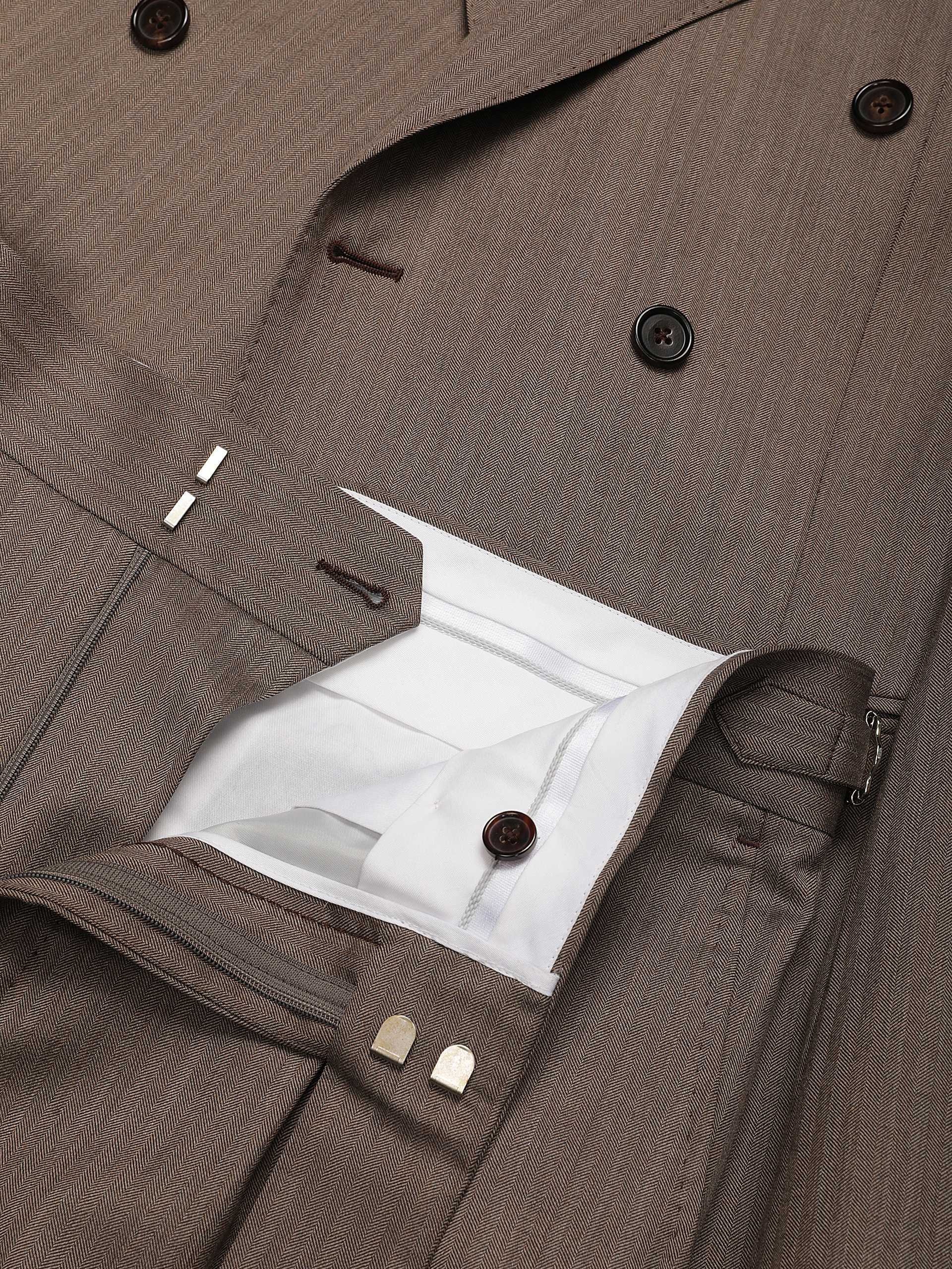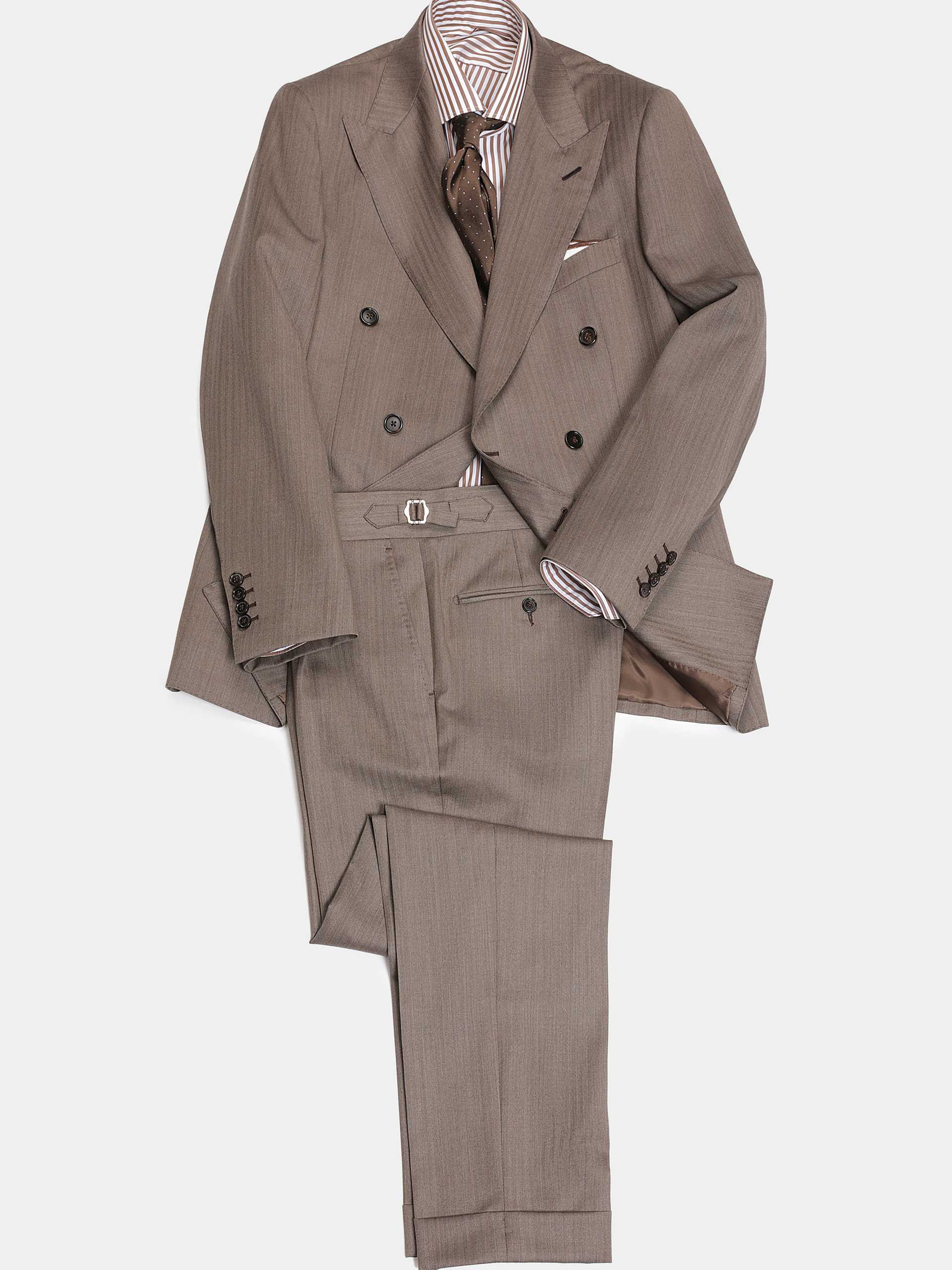 棕色人字纹双排扣复古套西