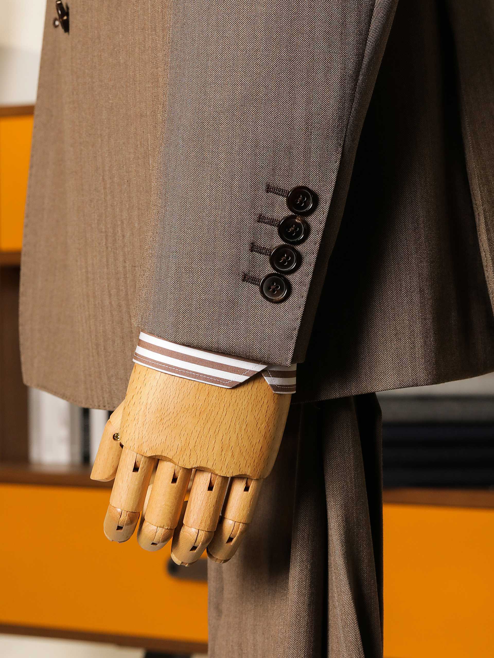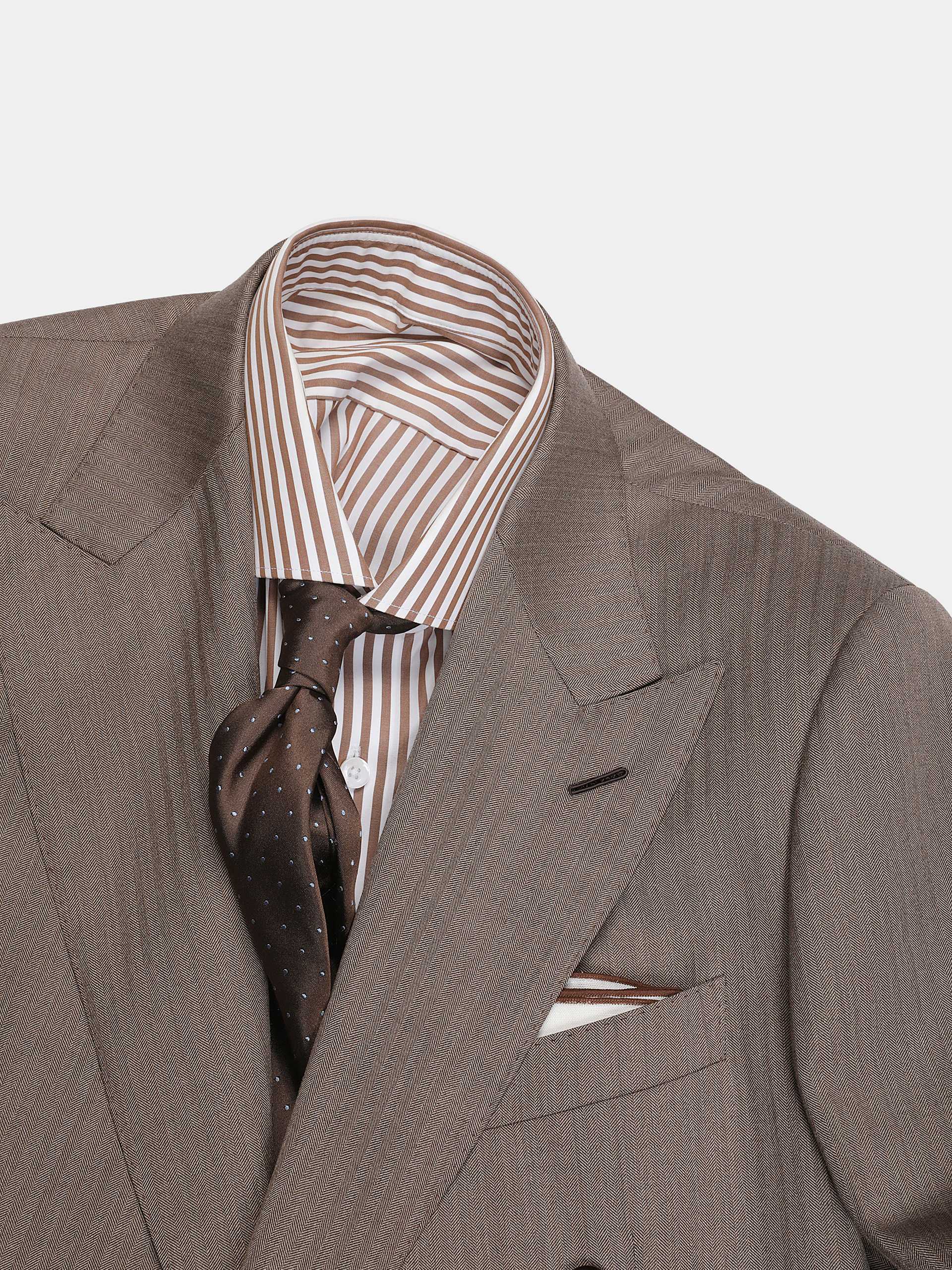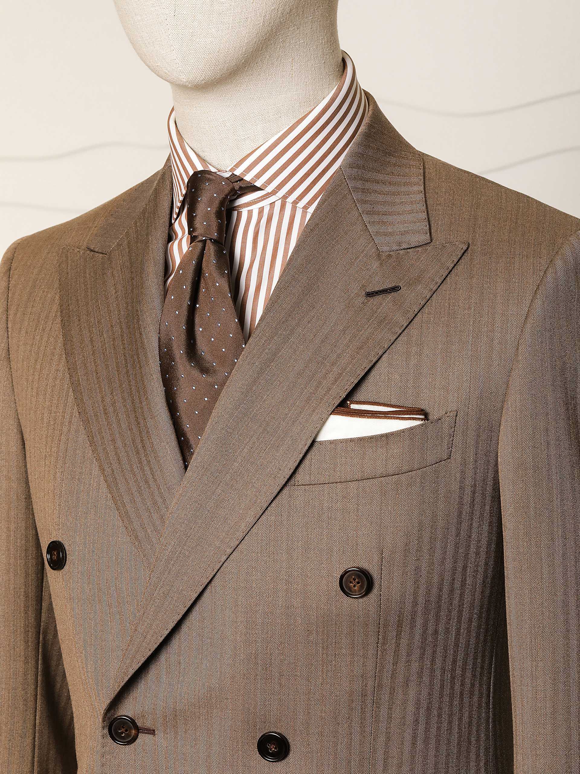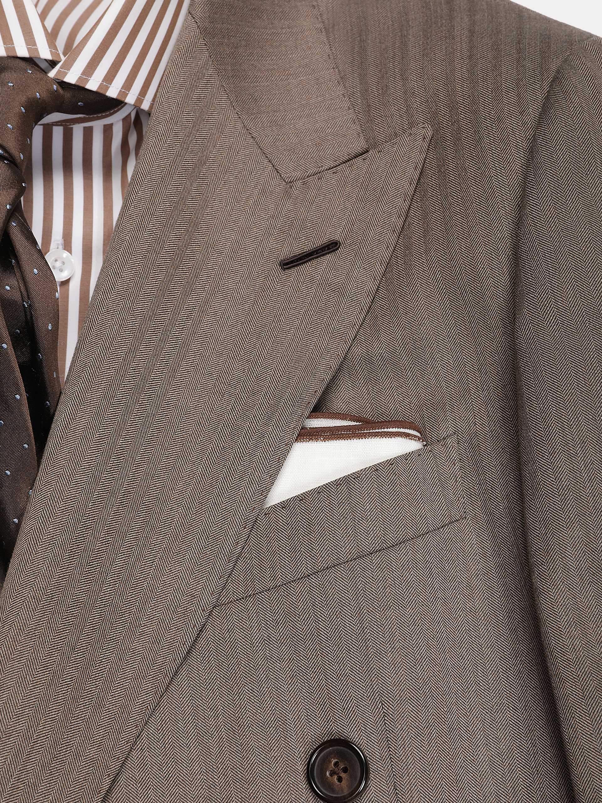 棕色人字纹双排扣复古套西