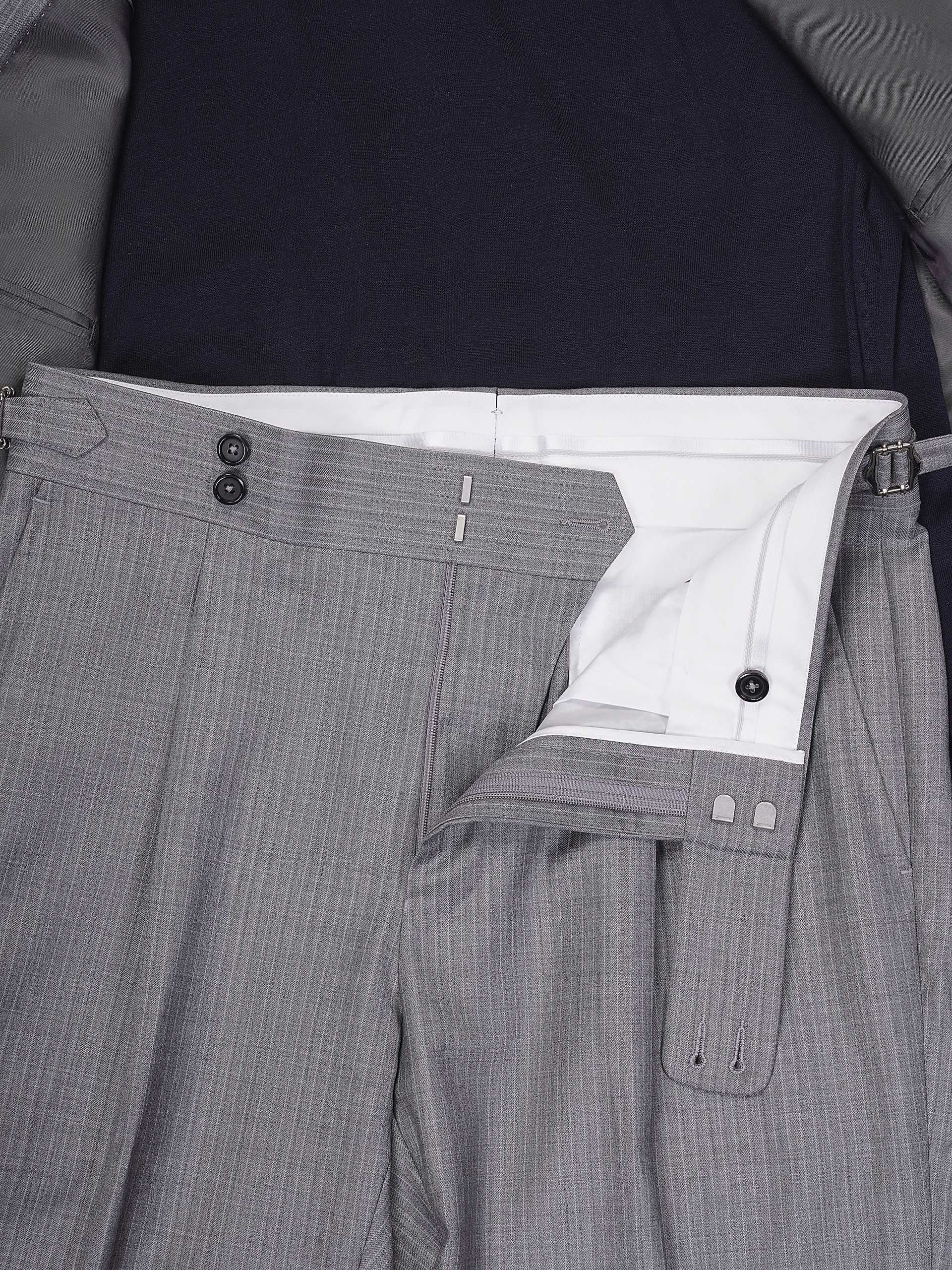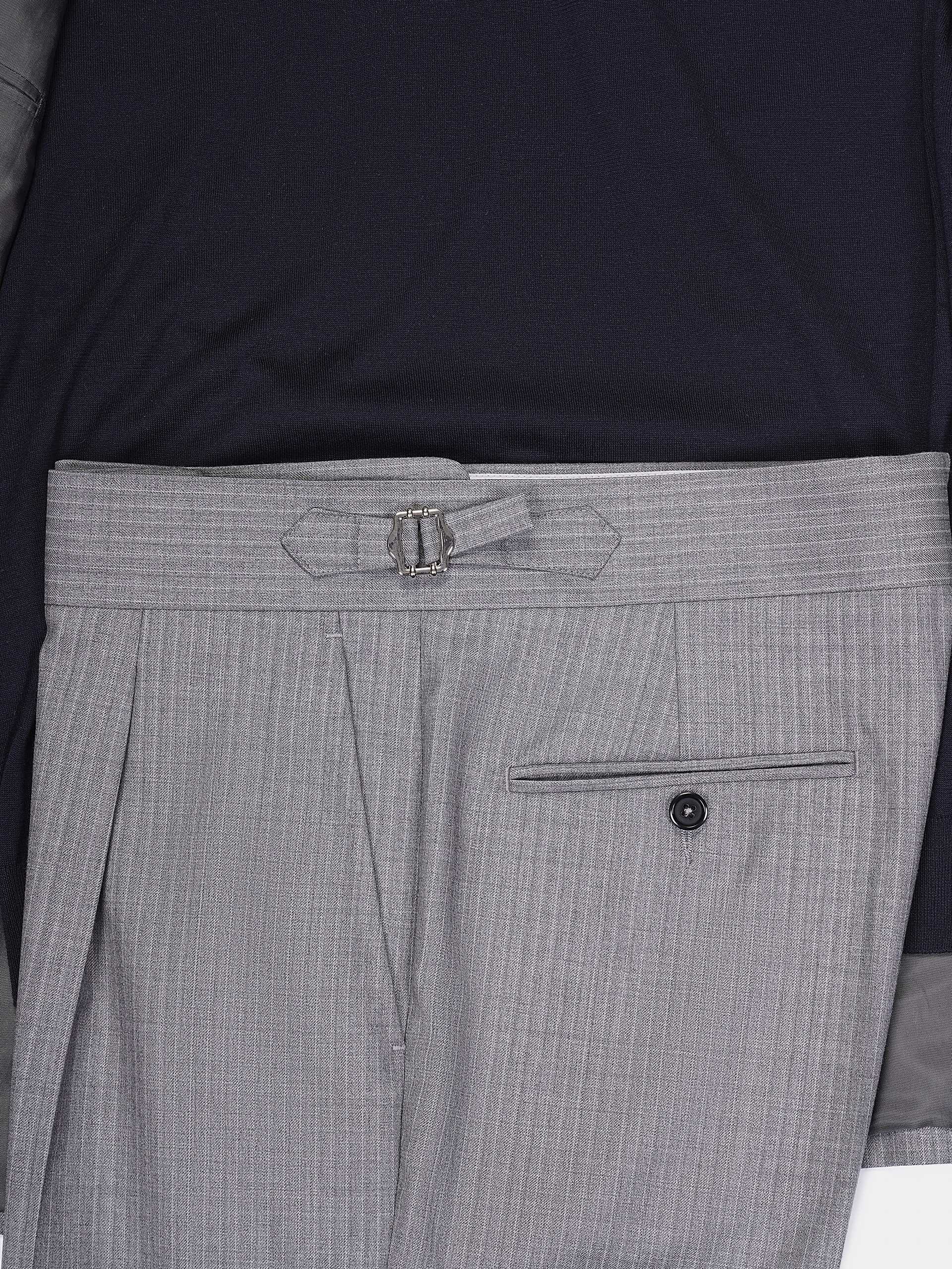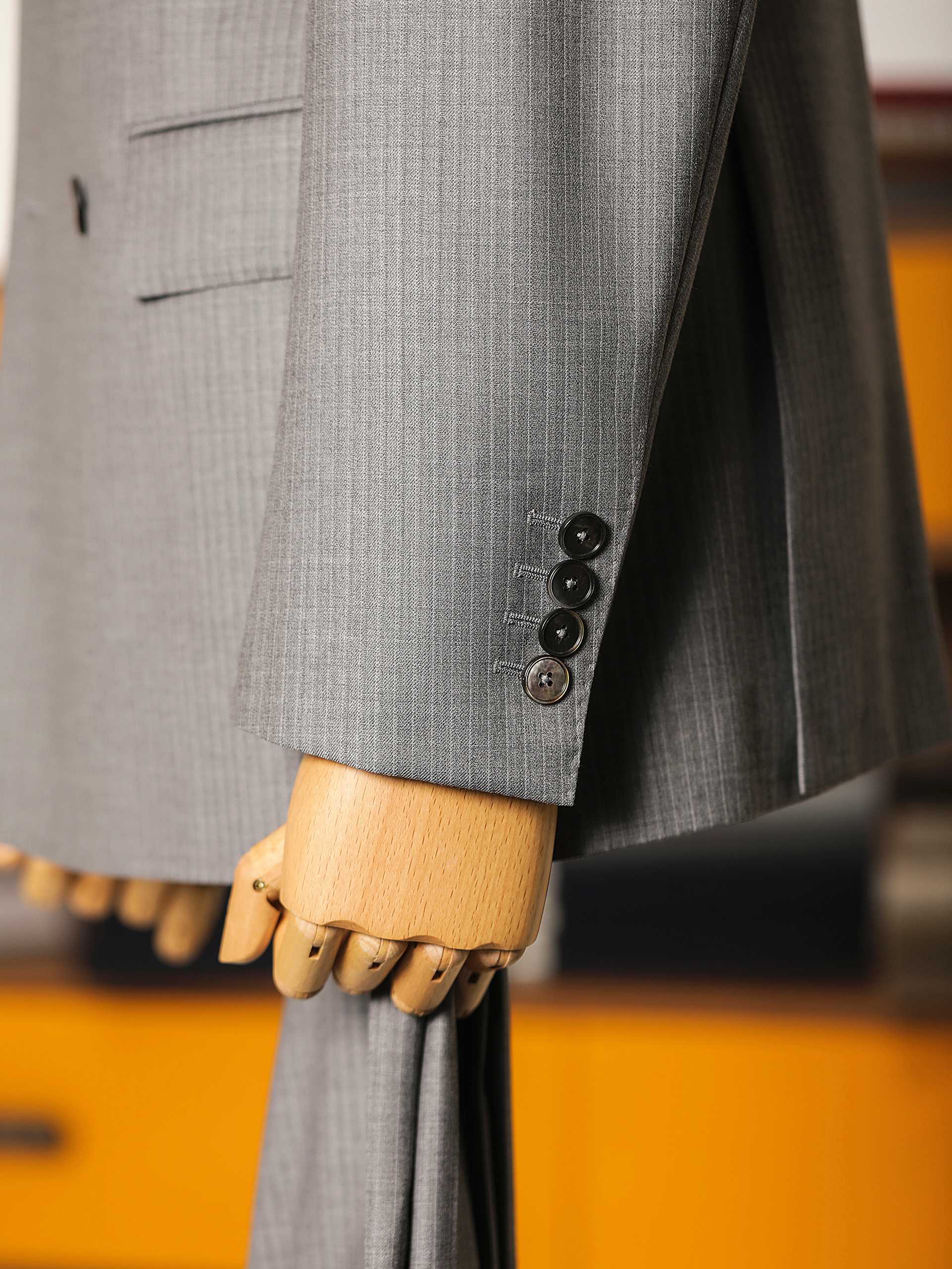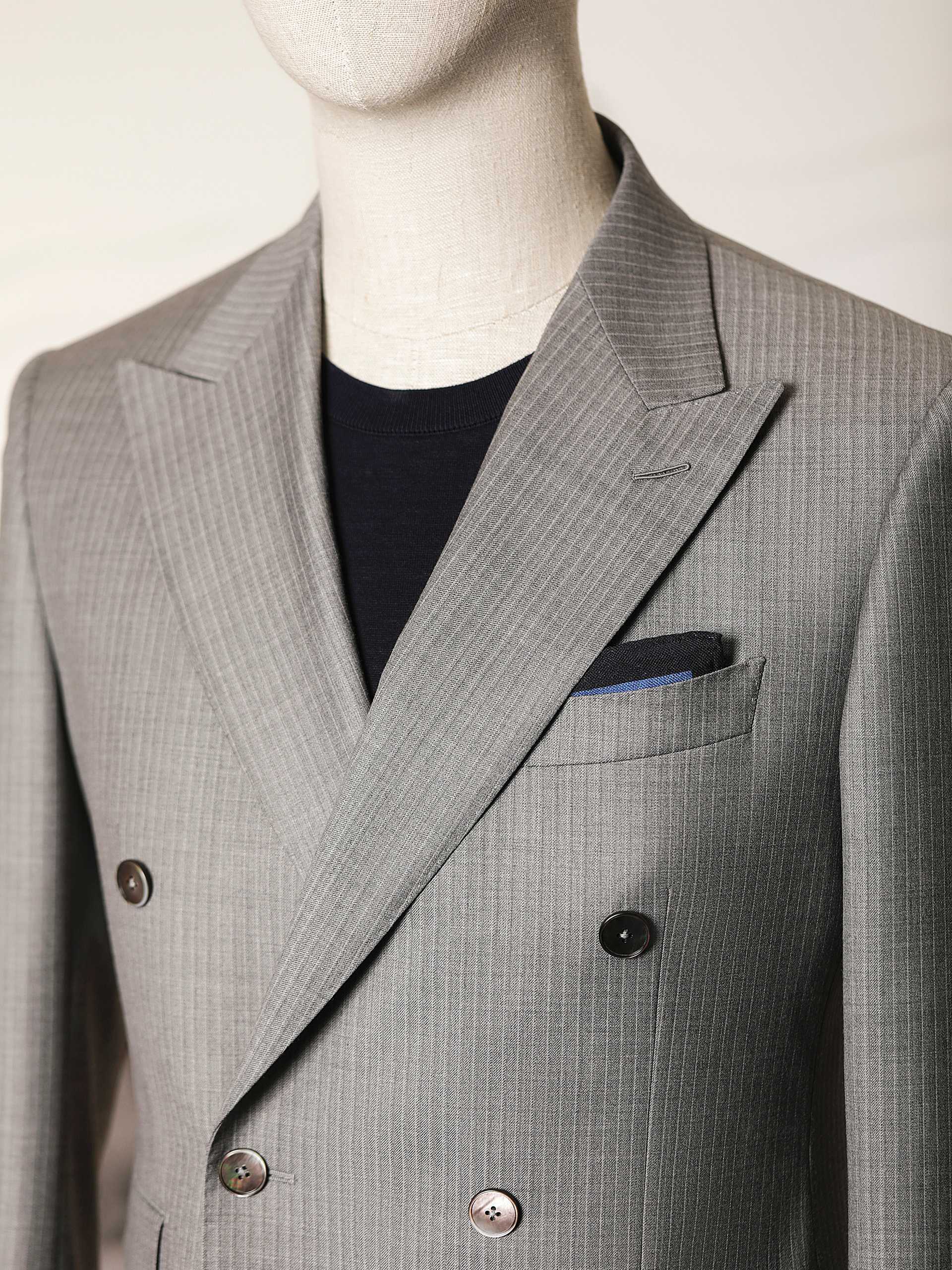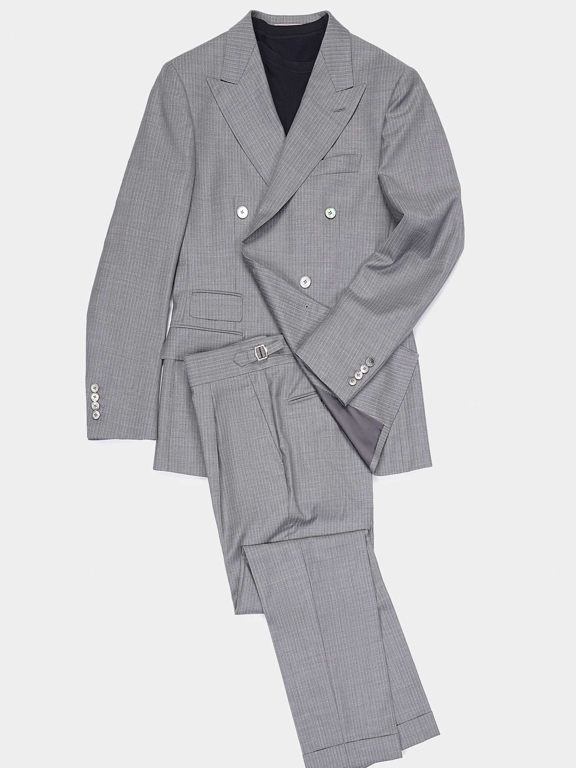 浅灰色细条纹双排扣套西