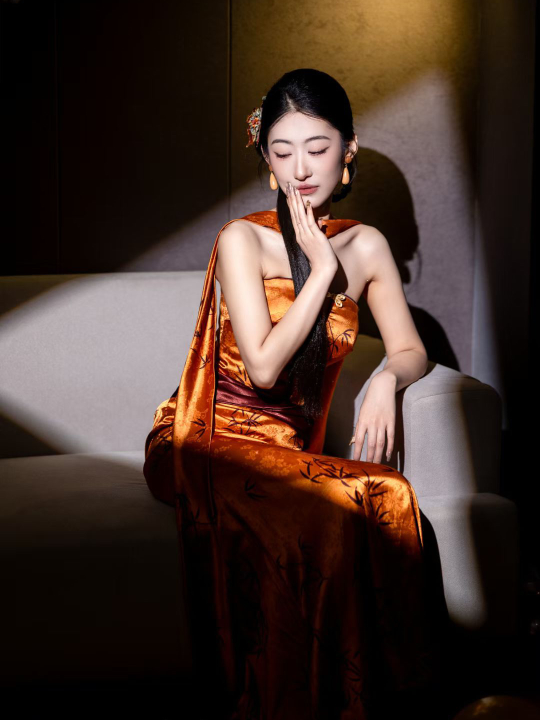 缎面婚纱配新中式低盘发,把东方温婉揉进西式浪漫✨