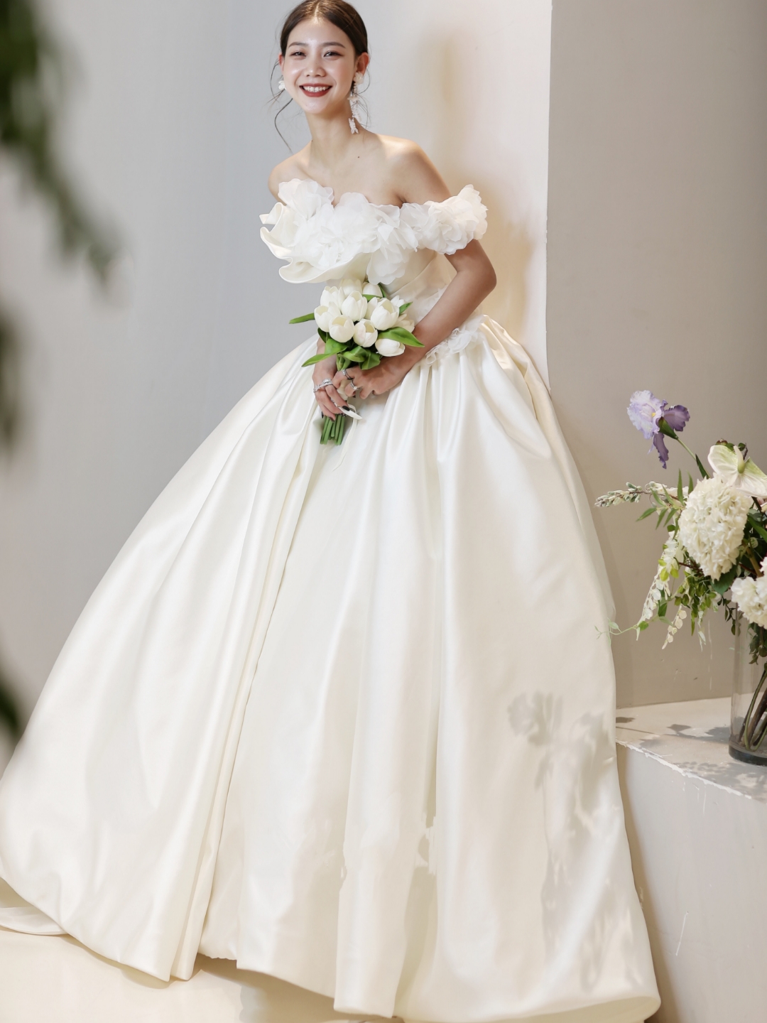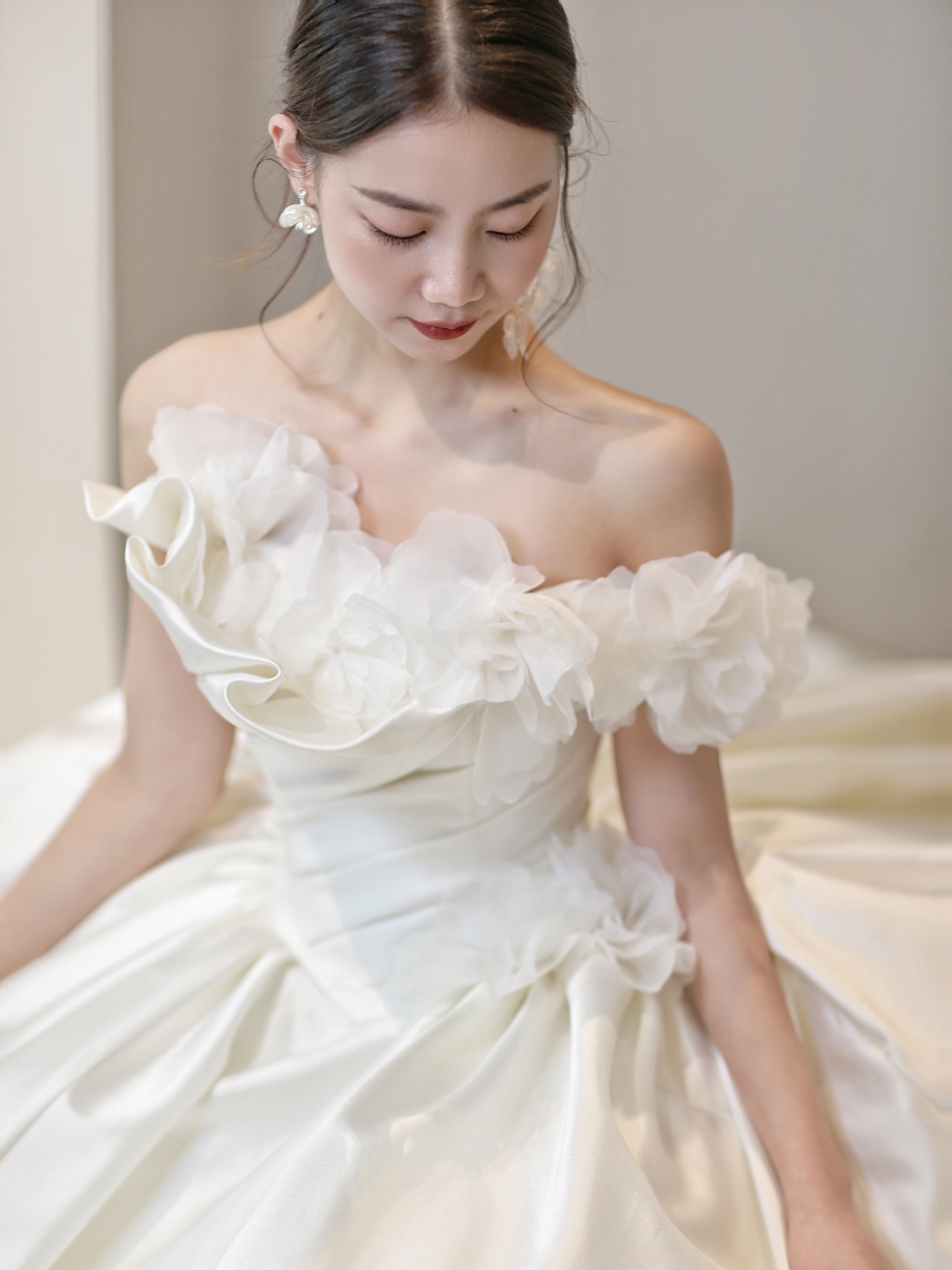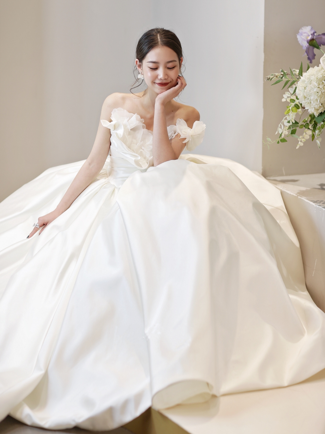 sissi 一字肩缎面齐地大主纱