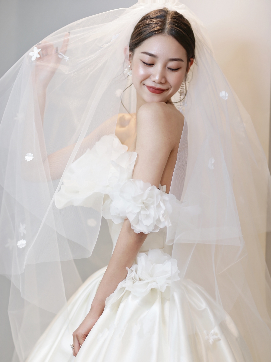 sissi 复古缎面花瓣主纱