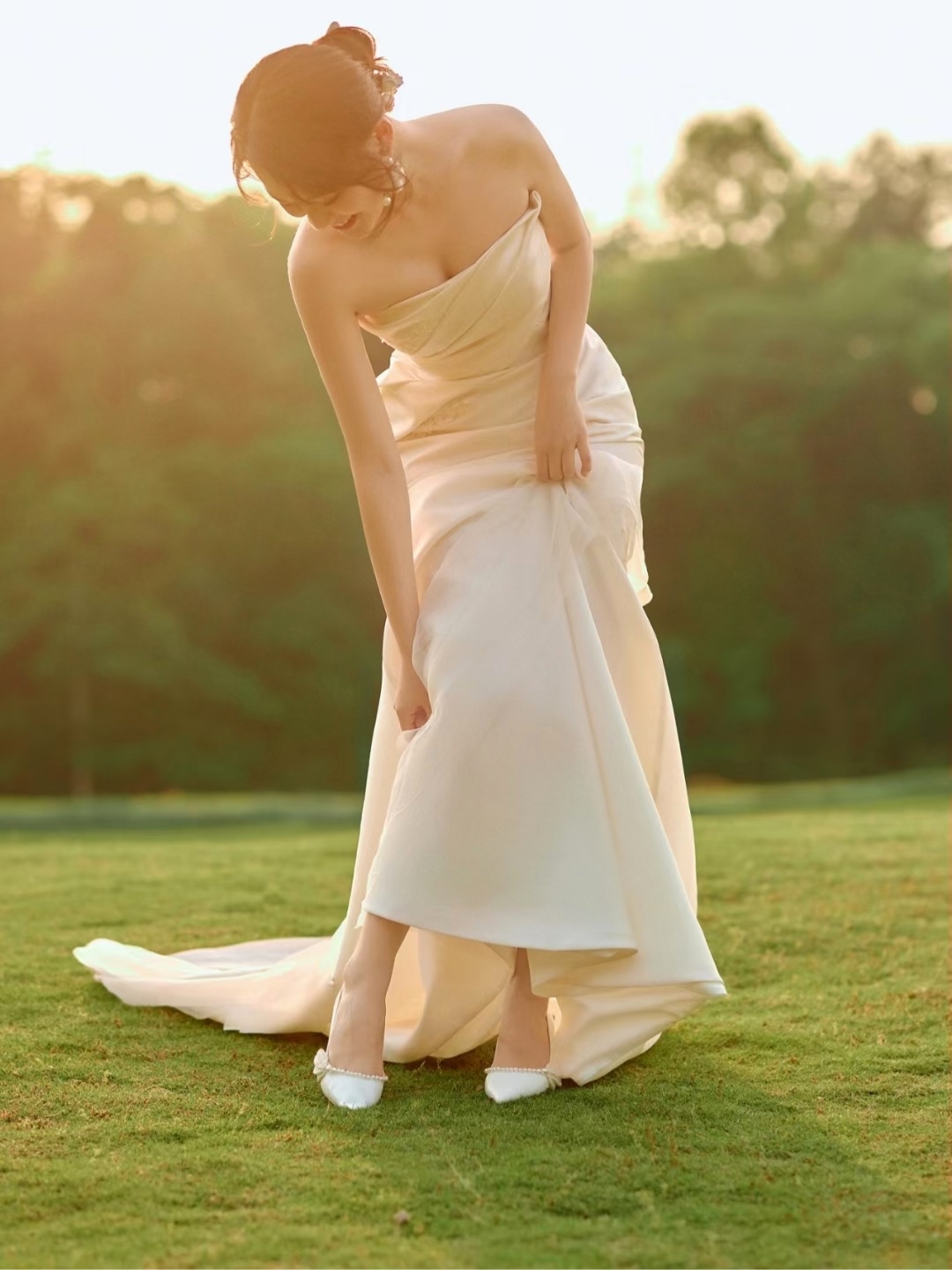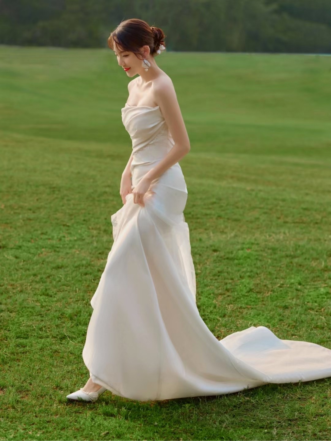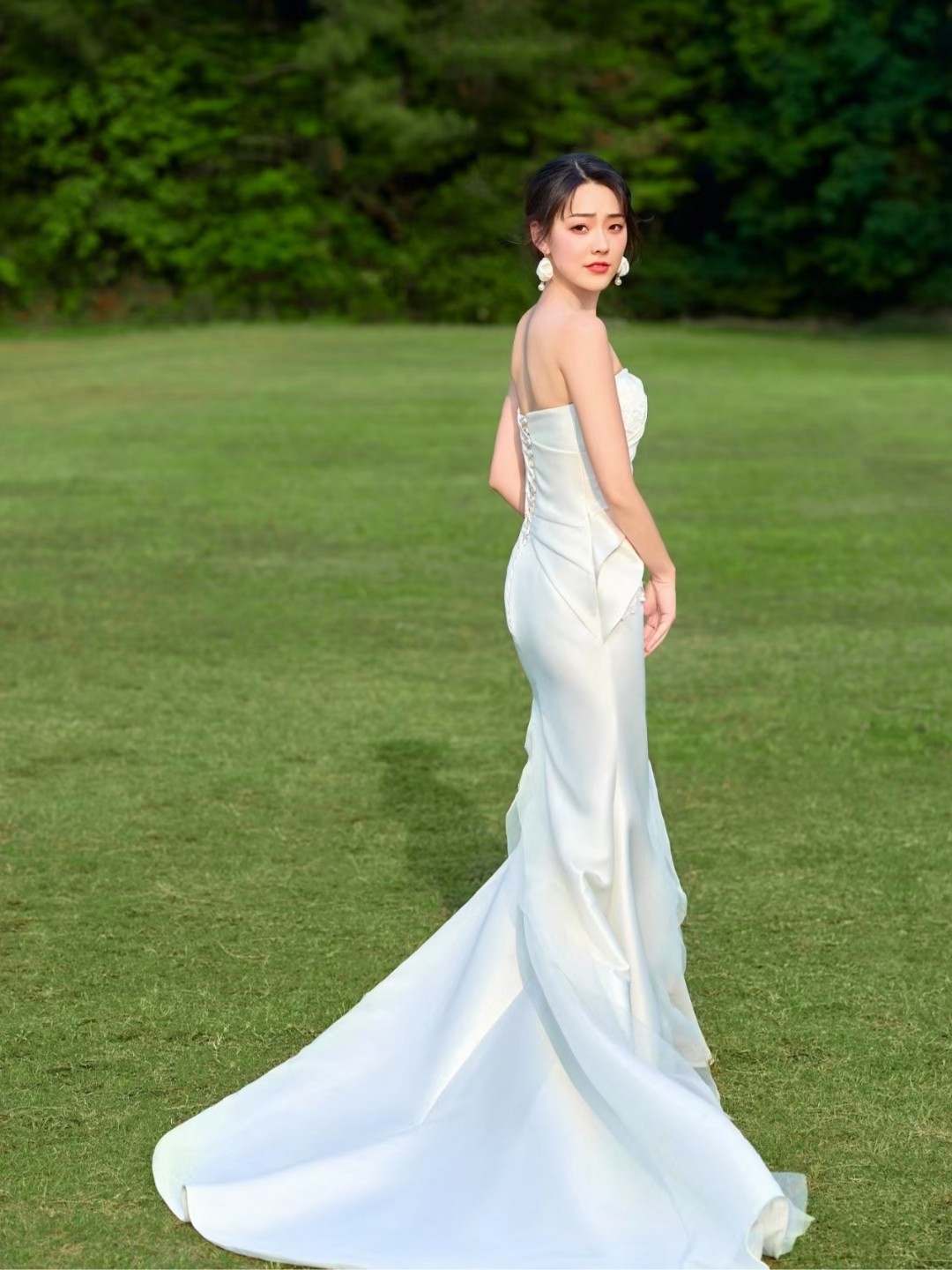 唯美草坪大拖尾主纱