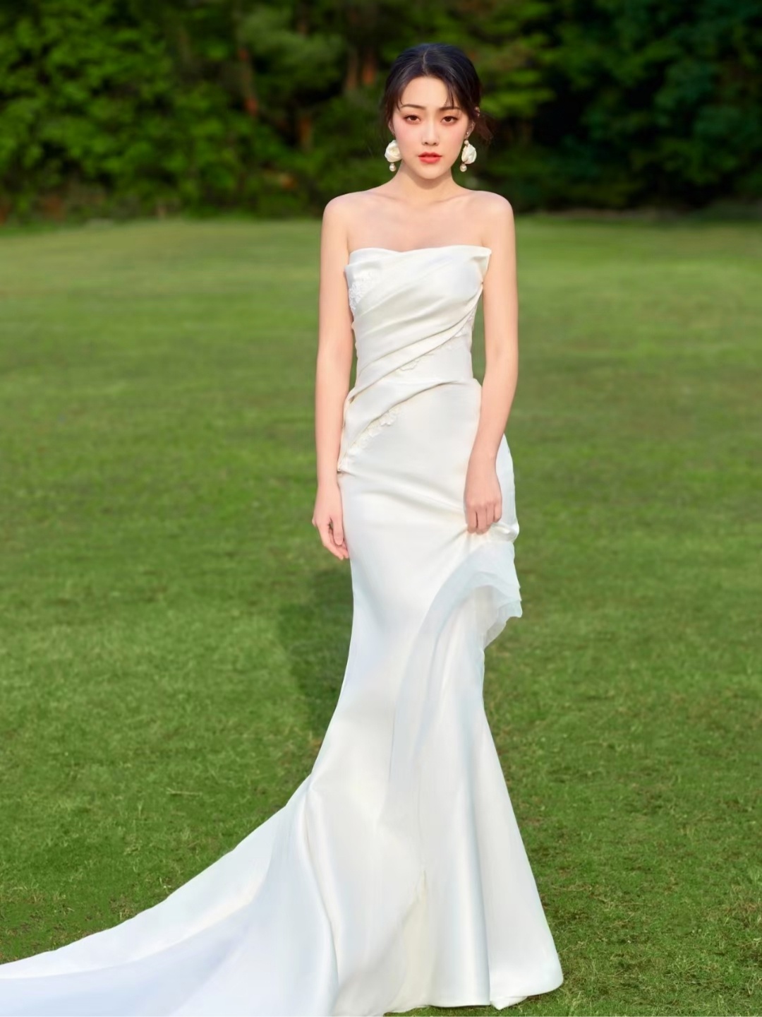 缎面鱼尾唯美轻纱草坪纱