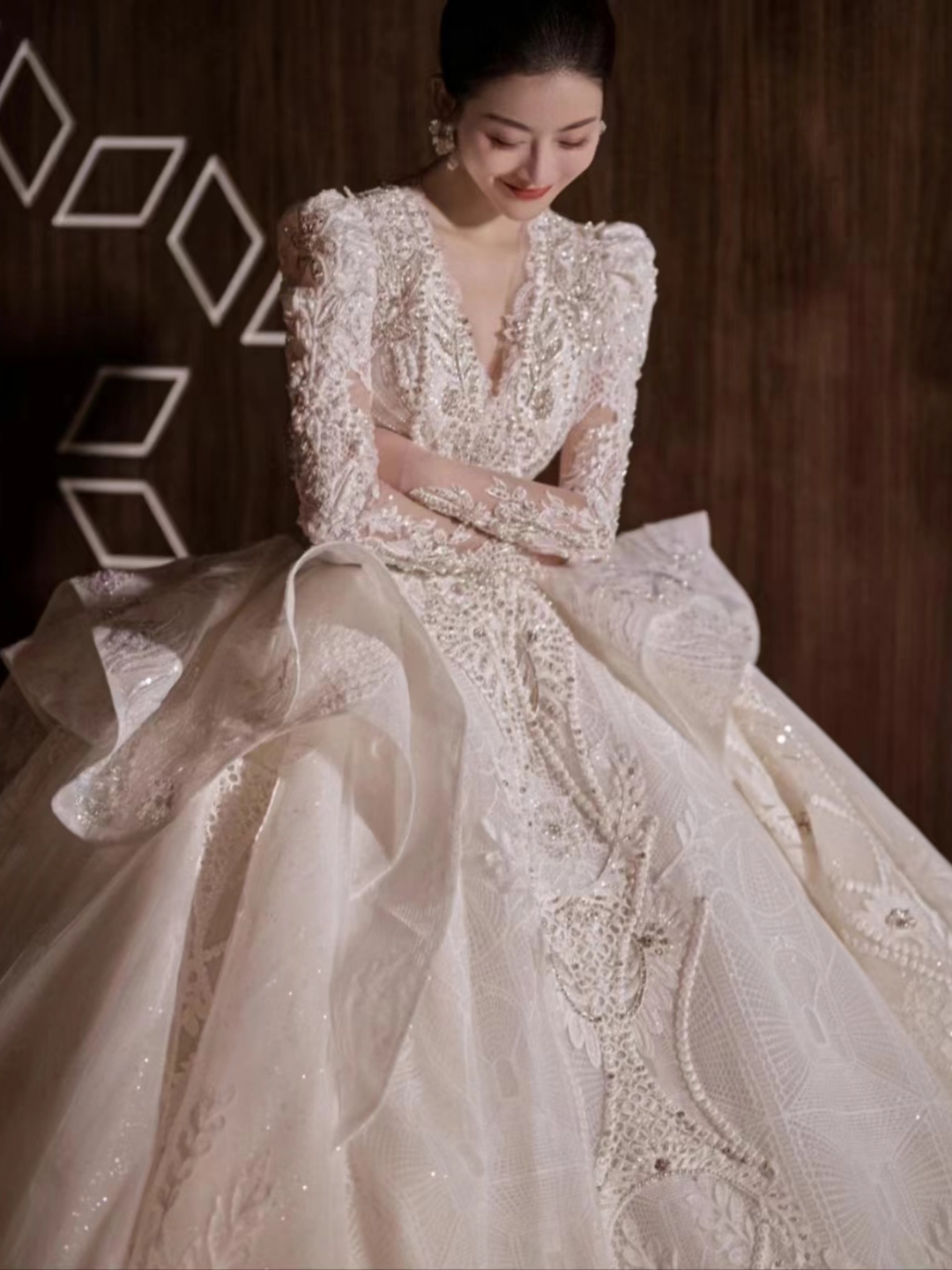 高定奢华梦幻大裙摆主纱