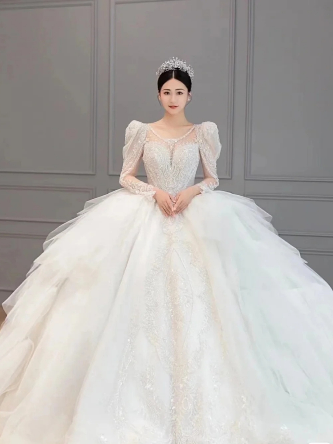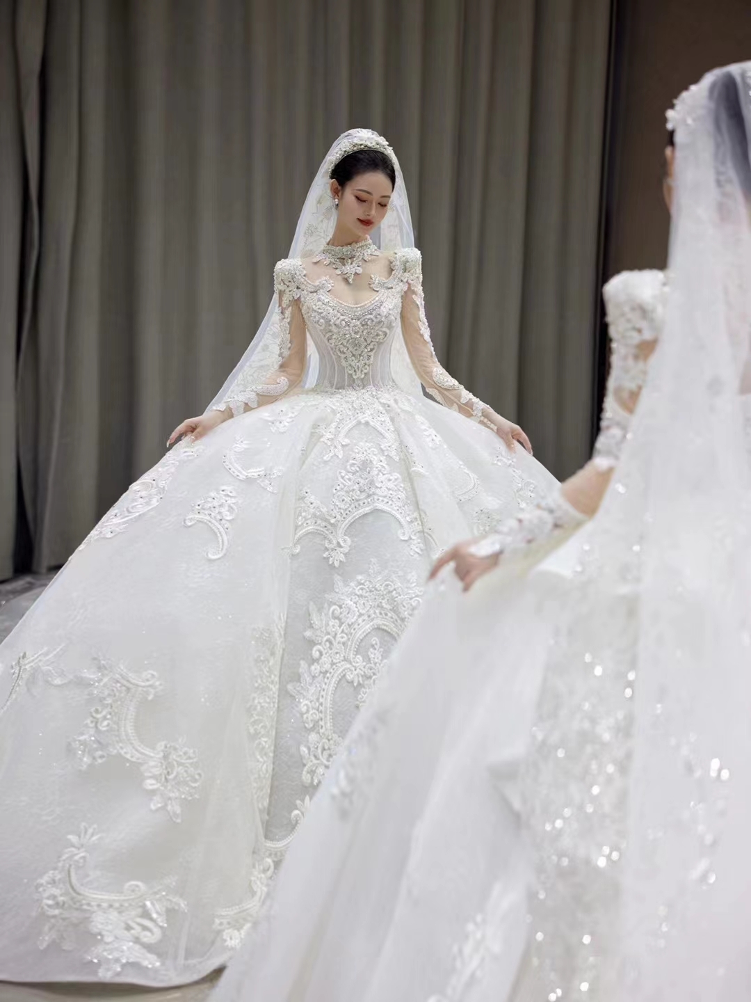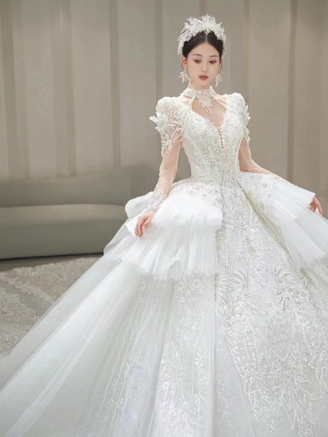 高定奢华梦幻大裙摆主纱