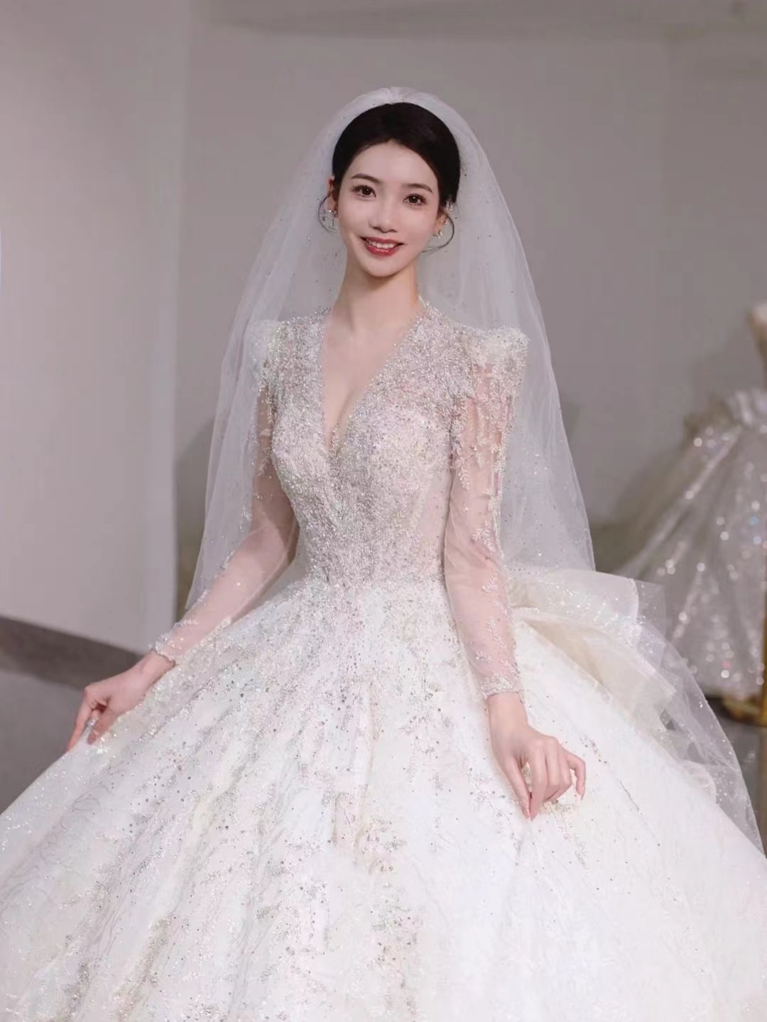 高定奢华梦幻大裙摆主纱