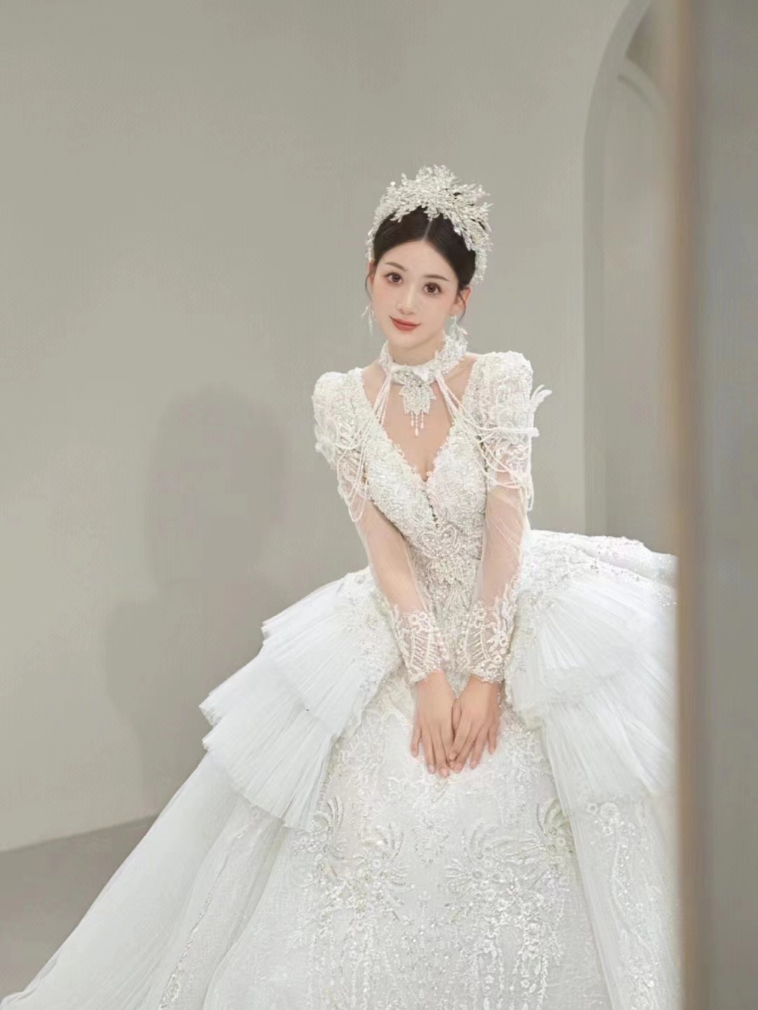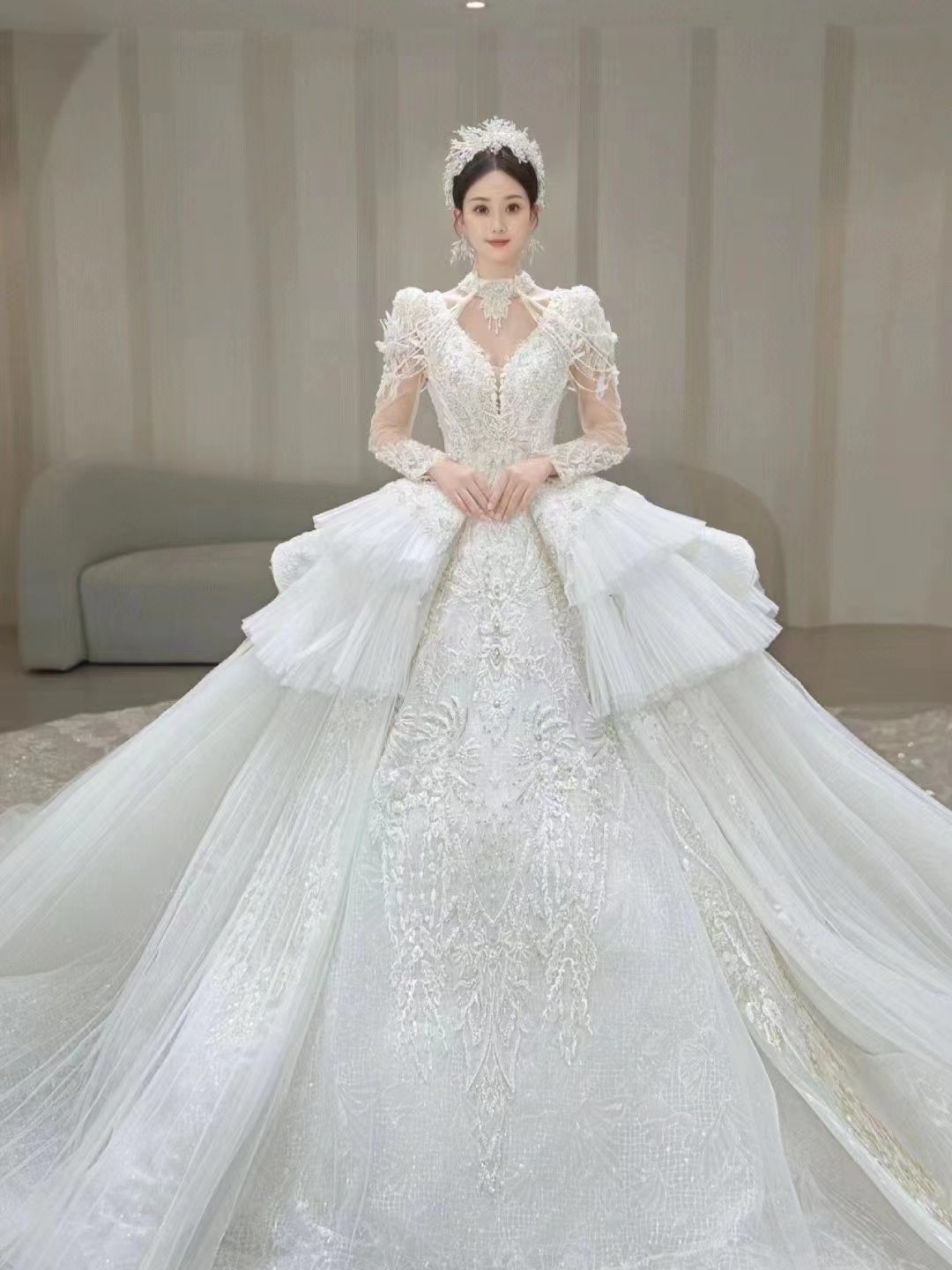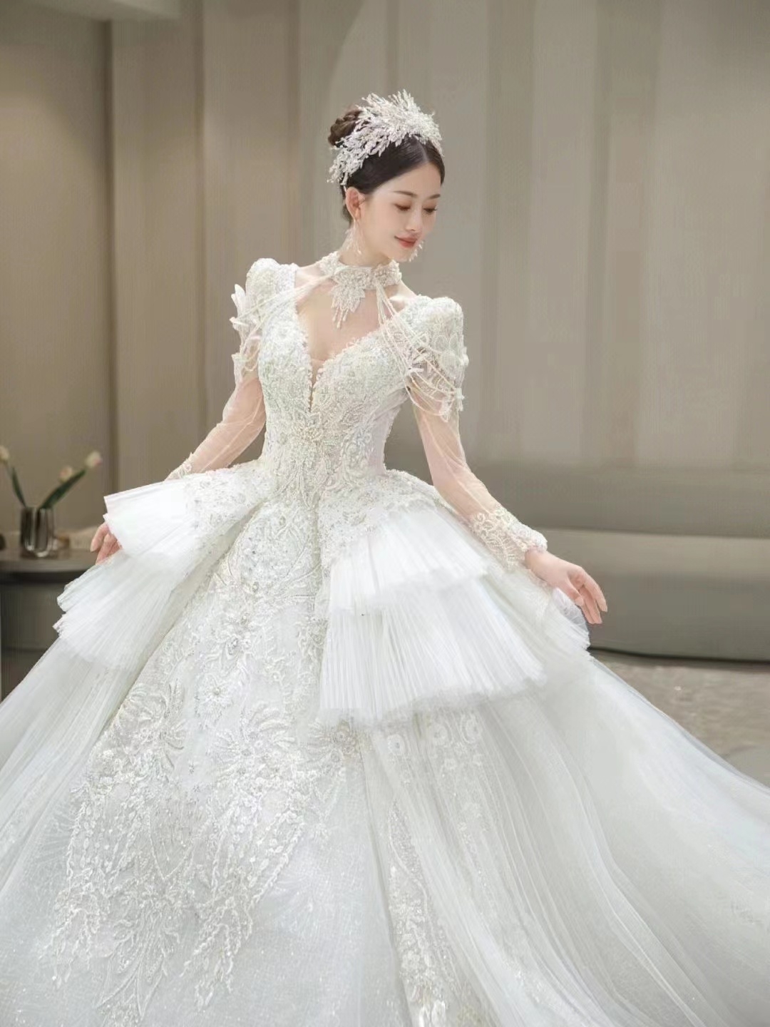 高定奢华梦幻大裙摆主纱