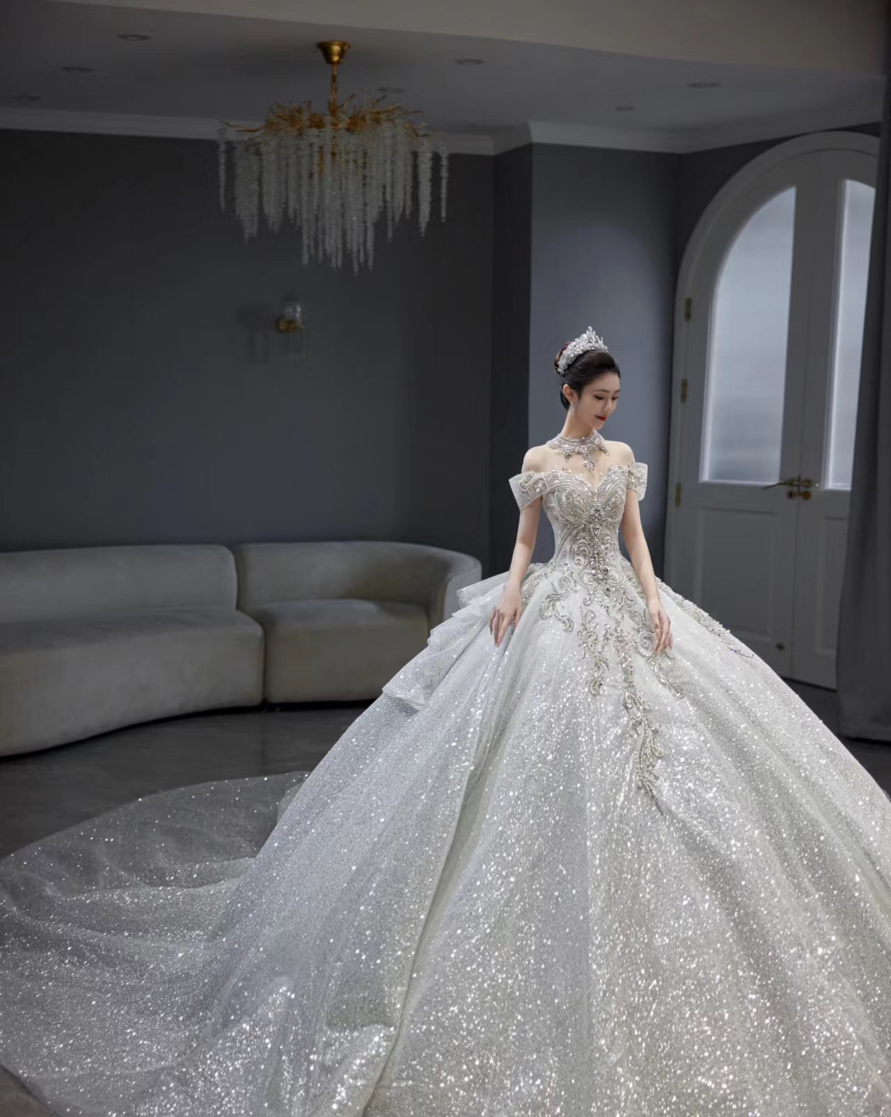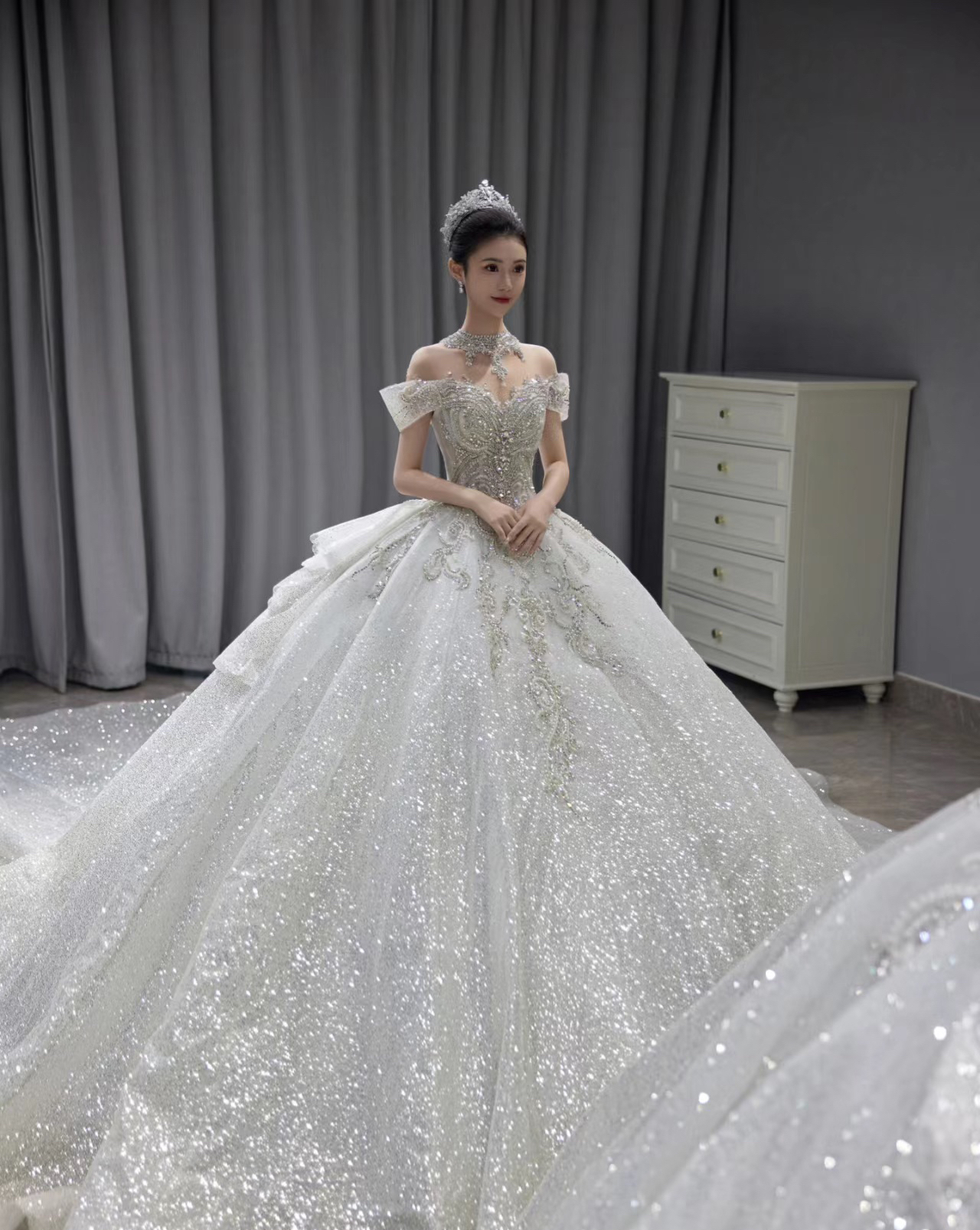 高级一字肩婚纱