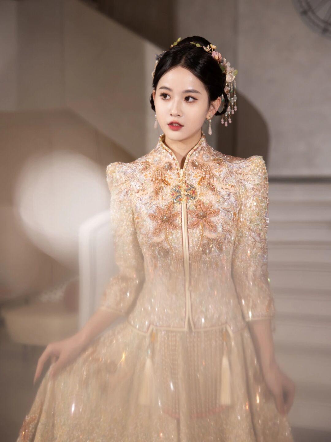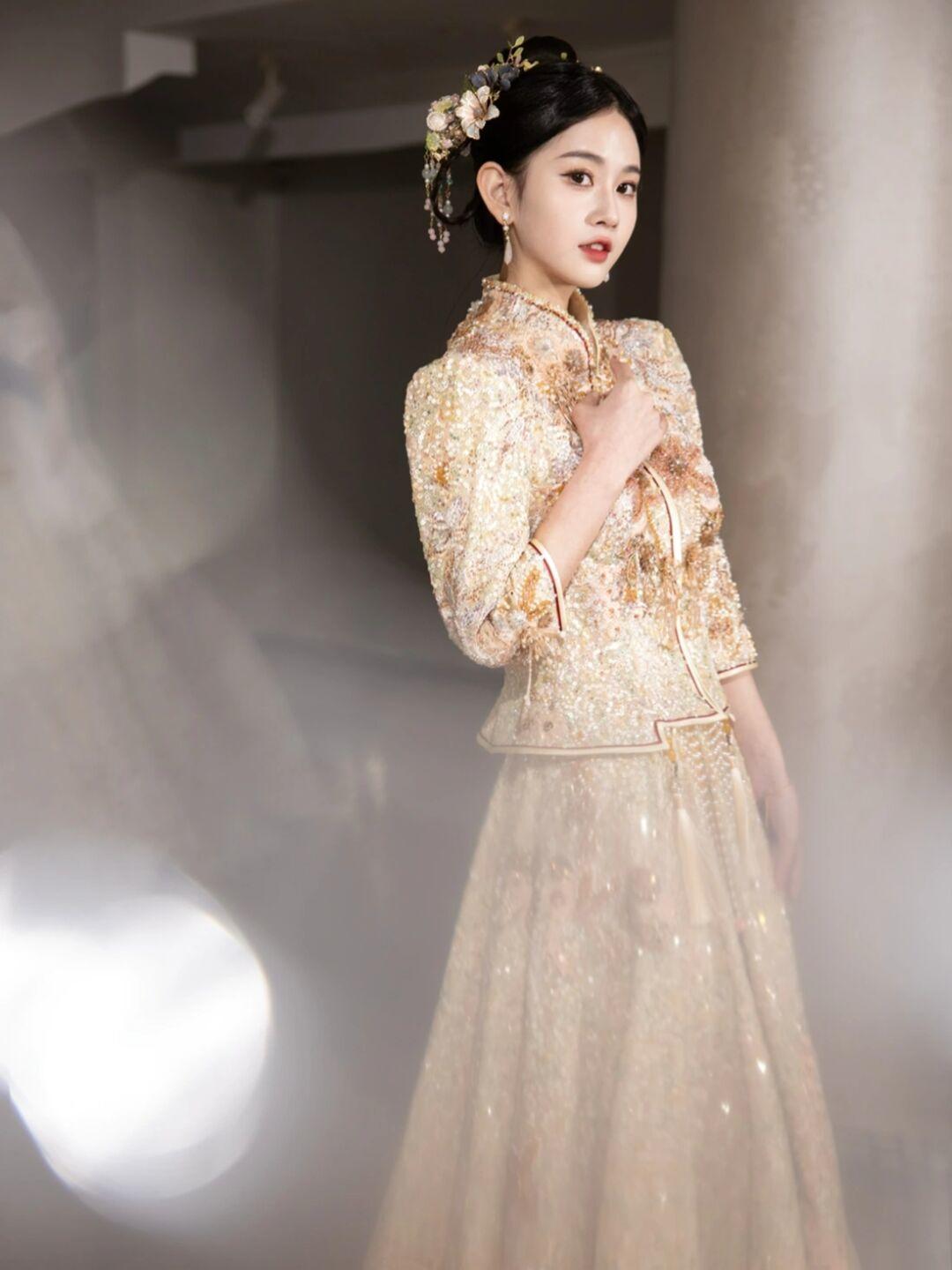 重工珠钉金色秀禾服