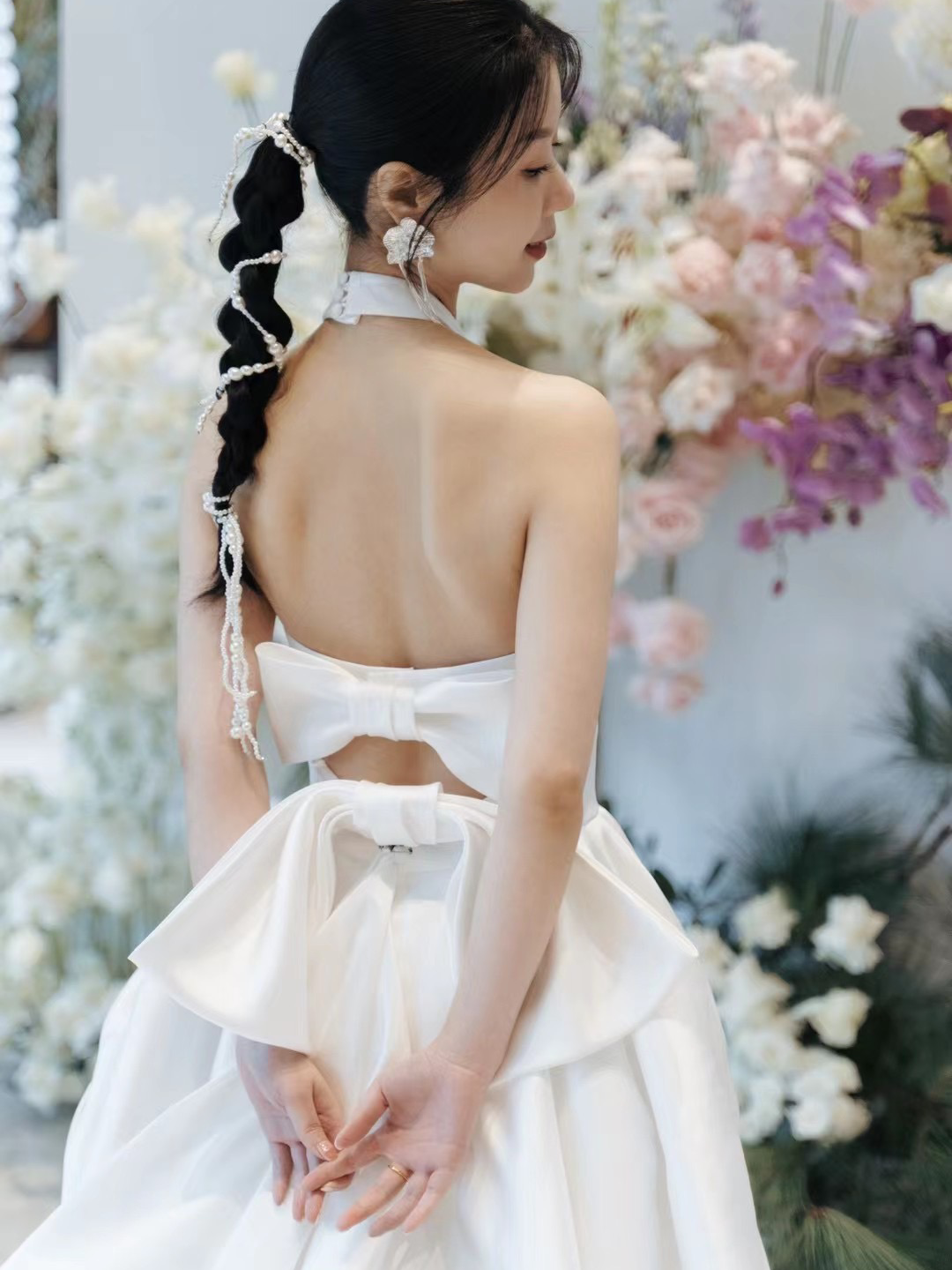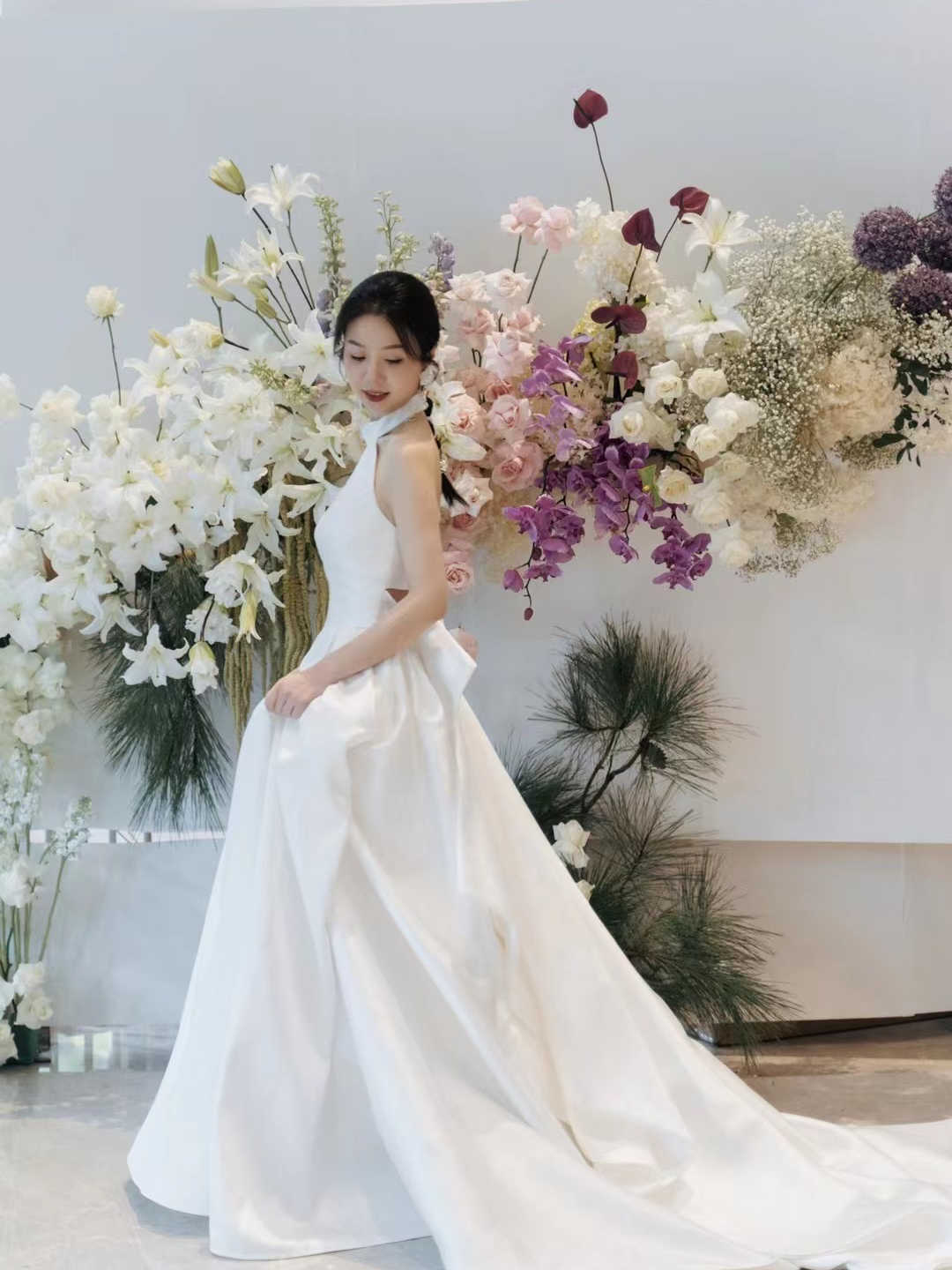 简约大气清透妆容+缎面婚纱/女王感满满