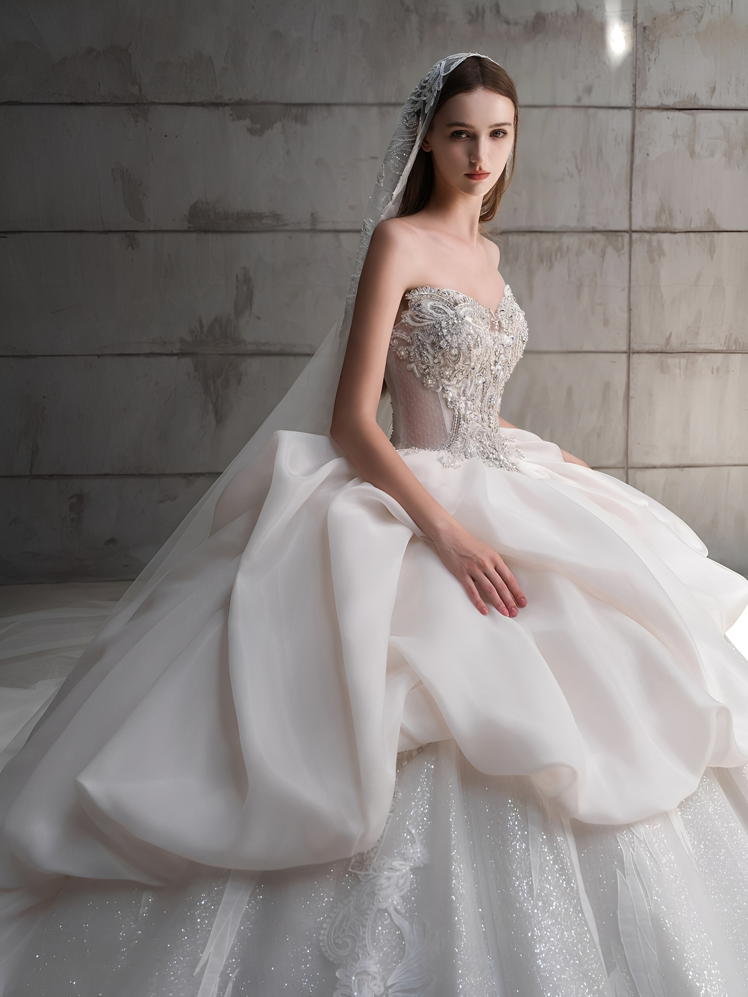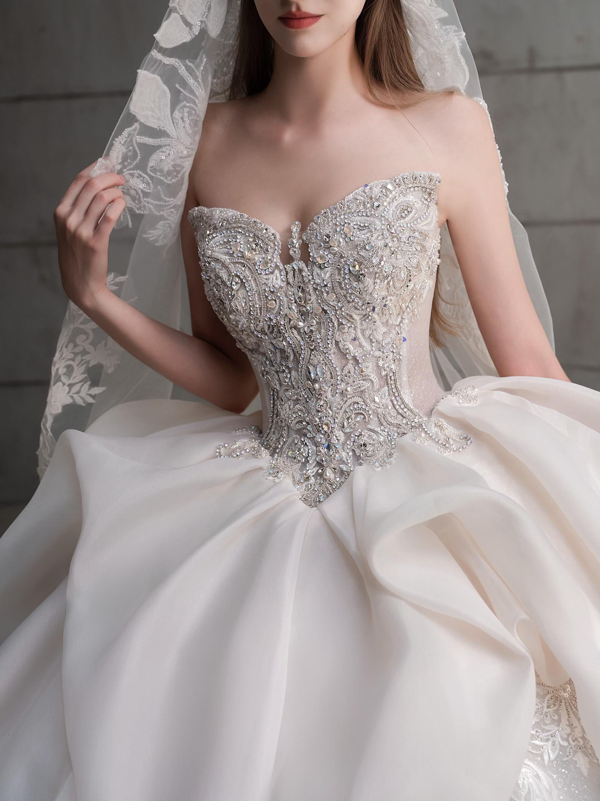 油画系缎面婚纱