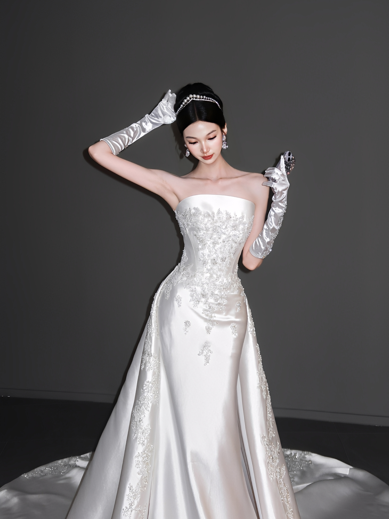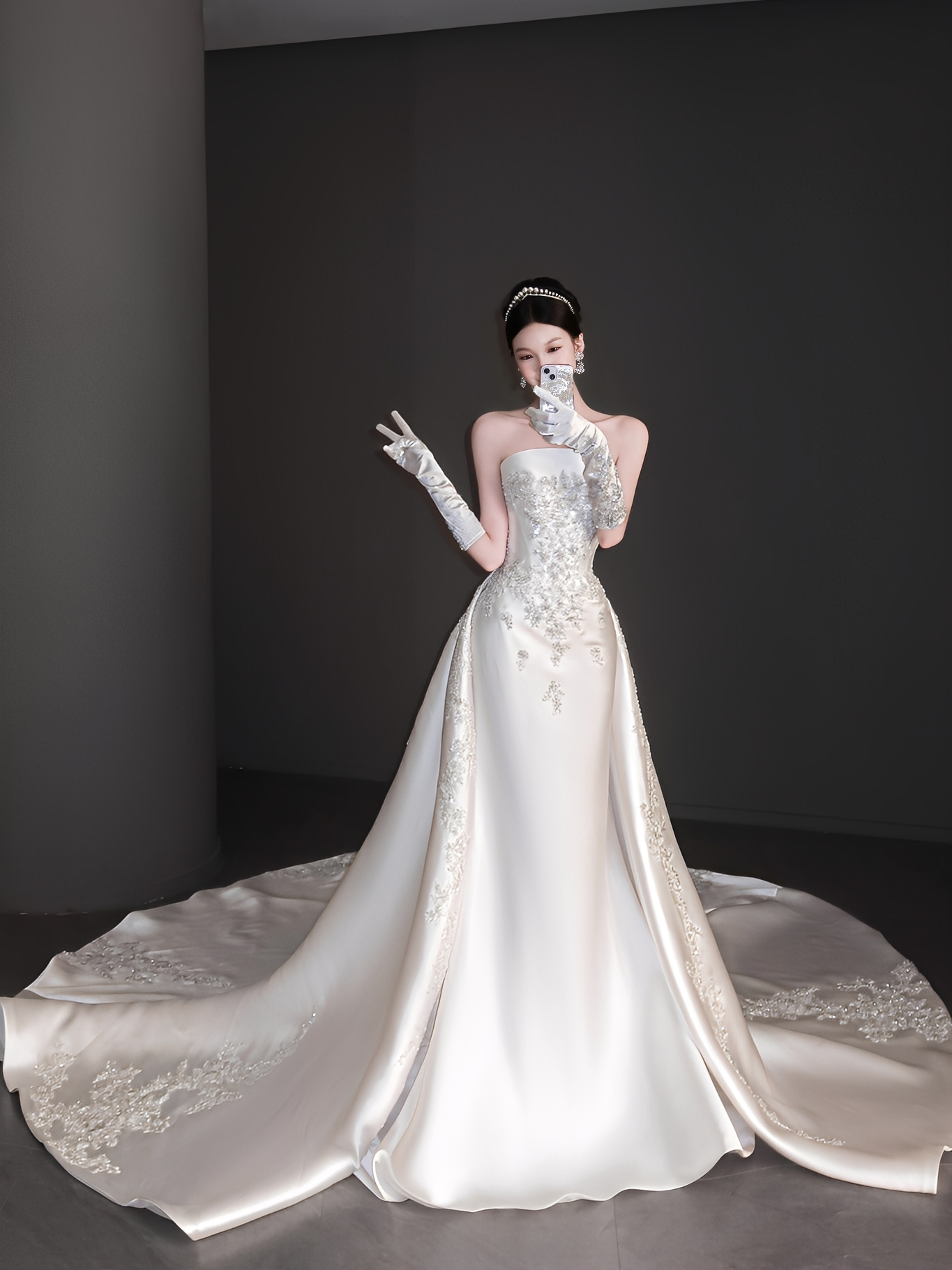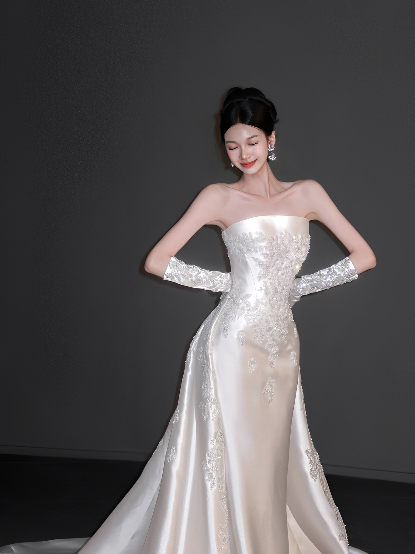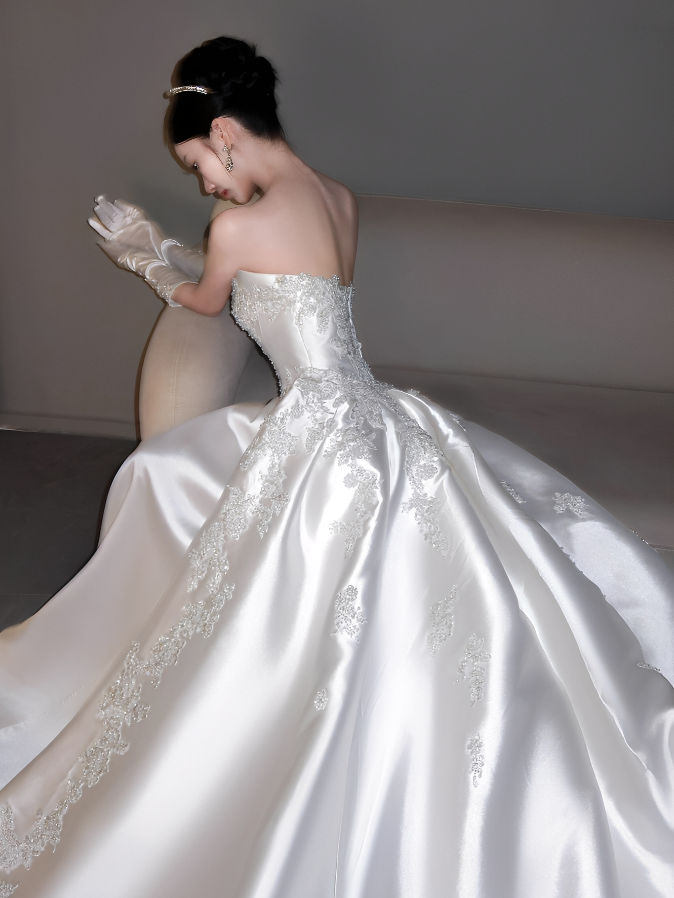 油画系缎面婚纱