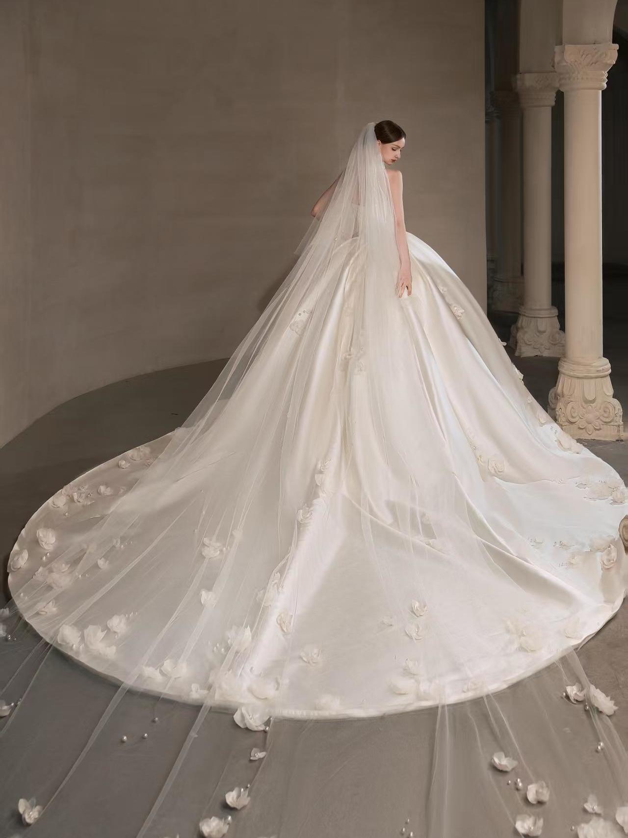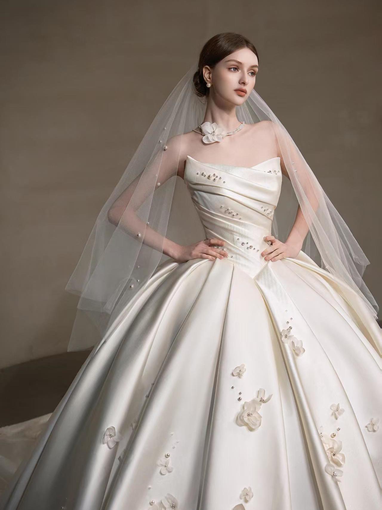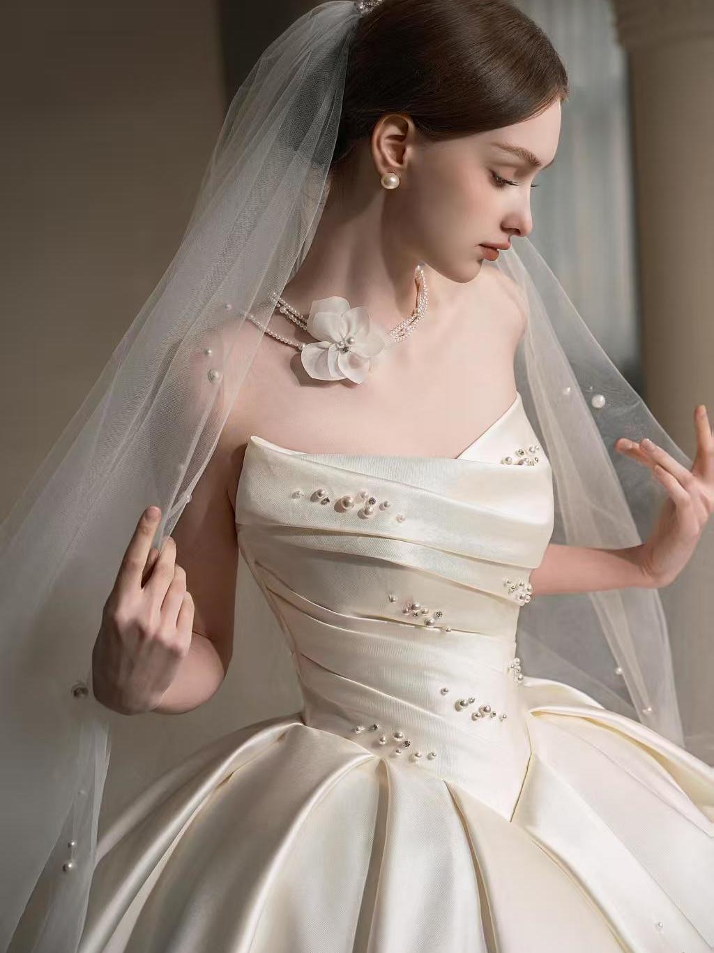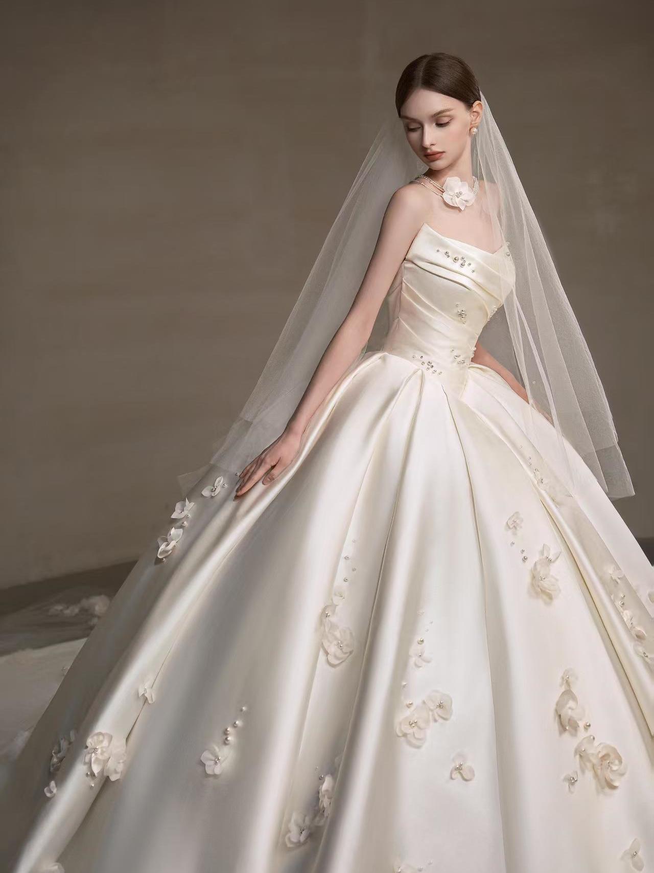 仪式感缎面婚纱