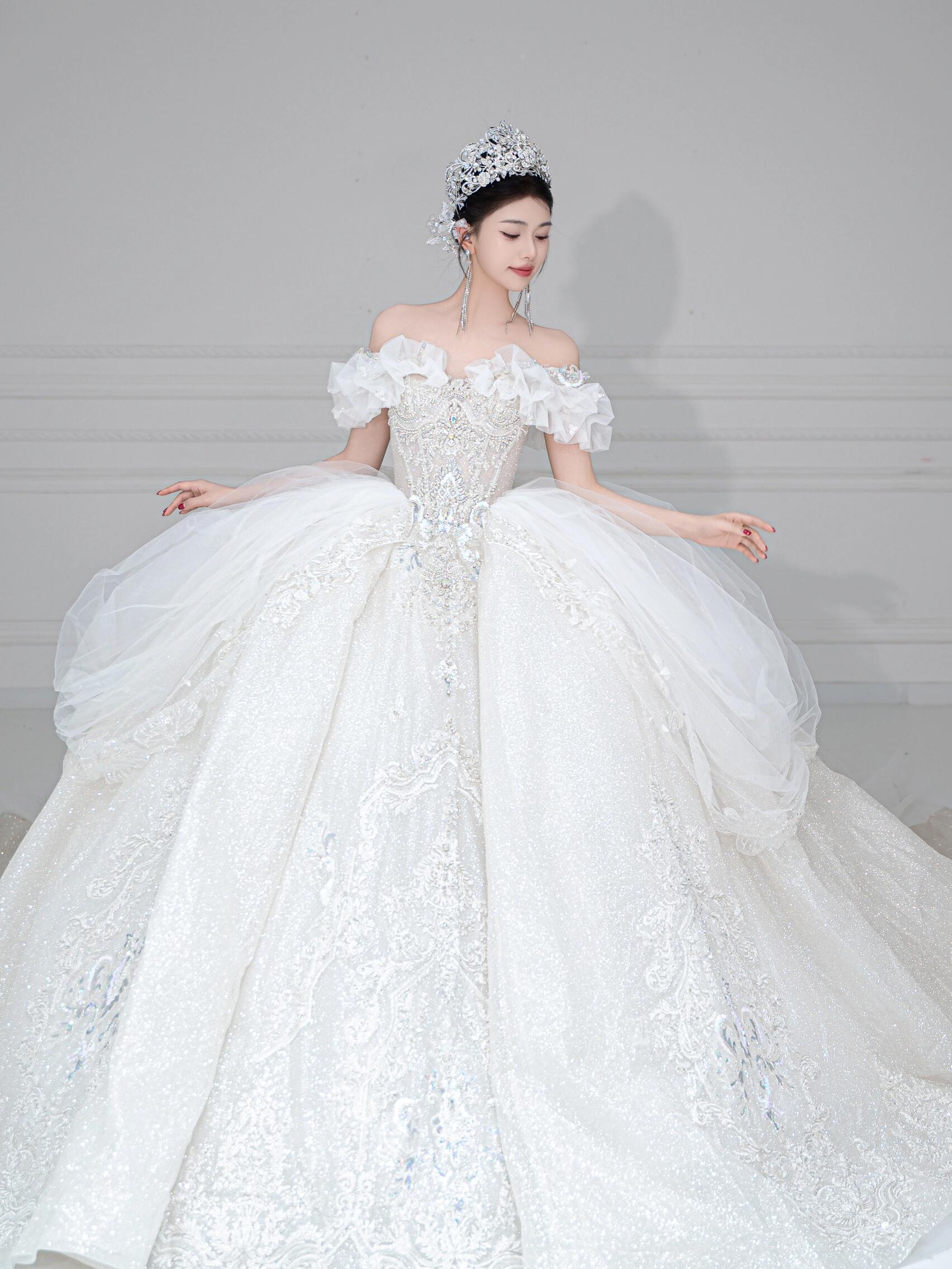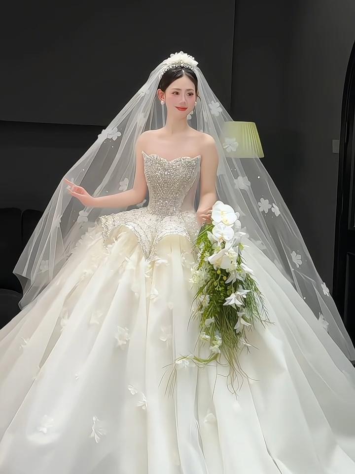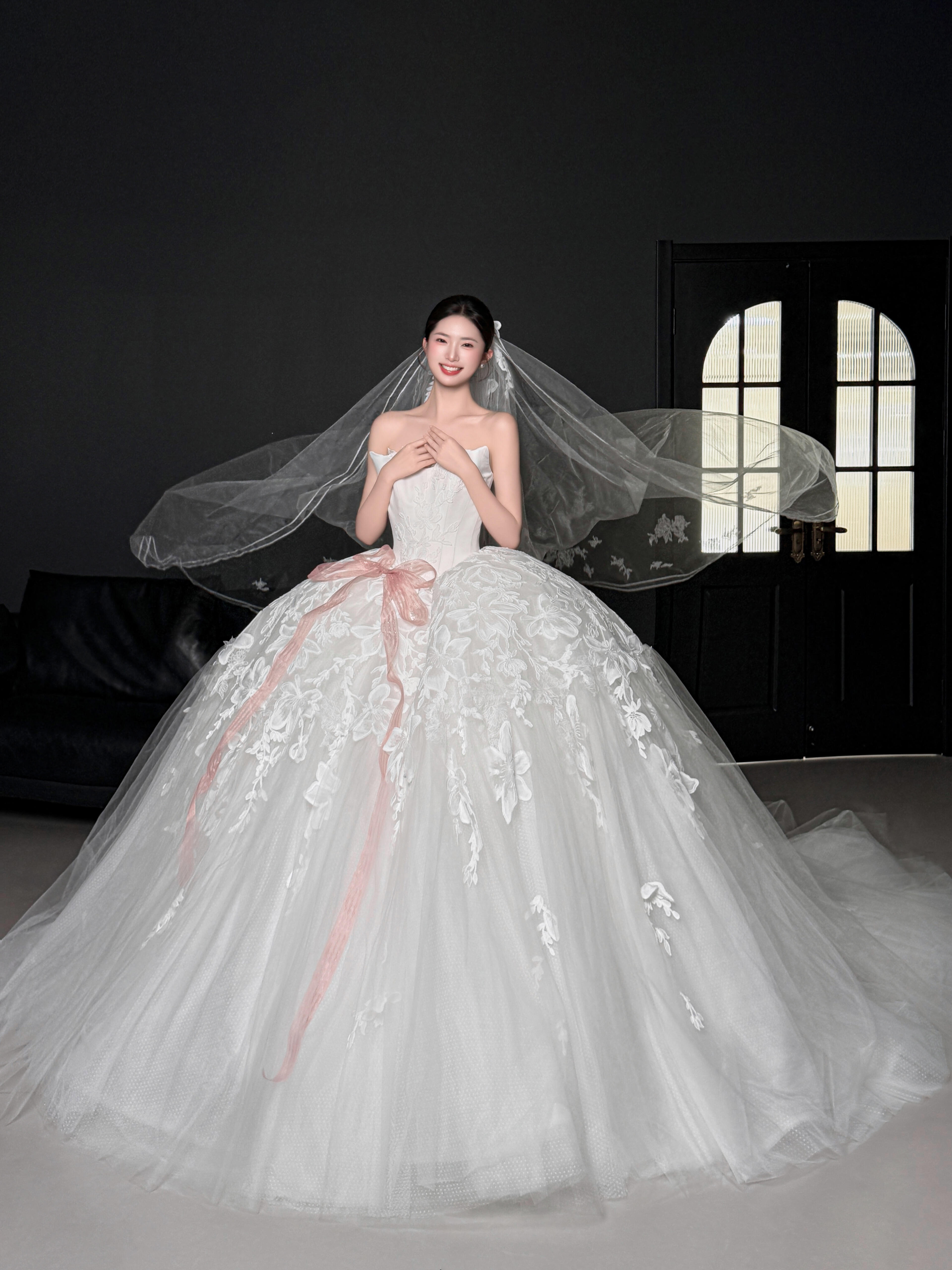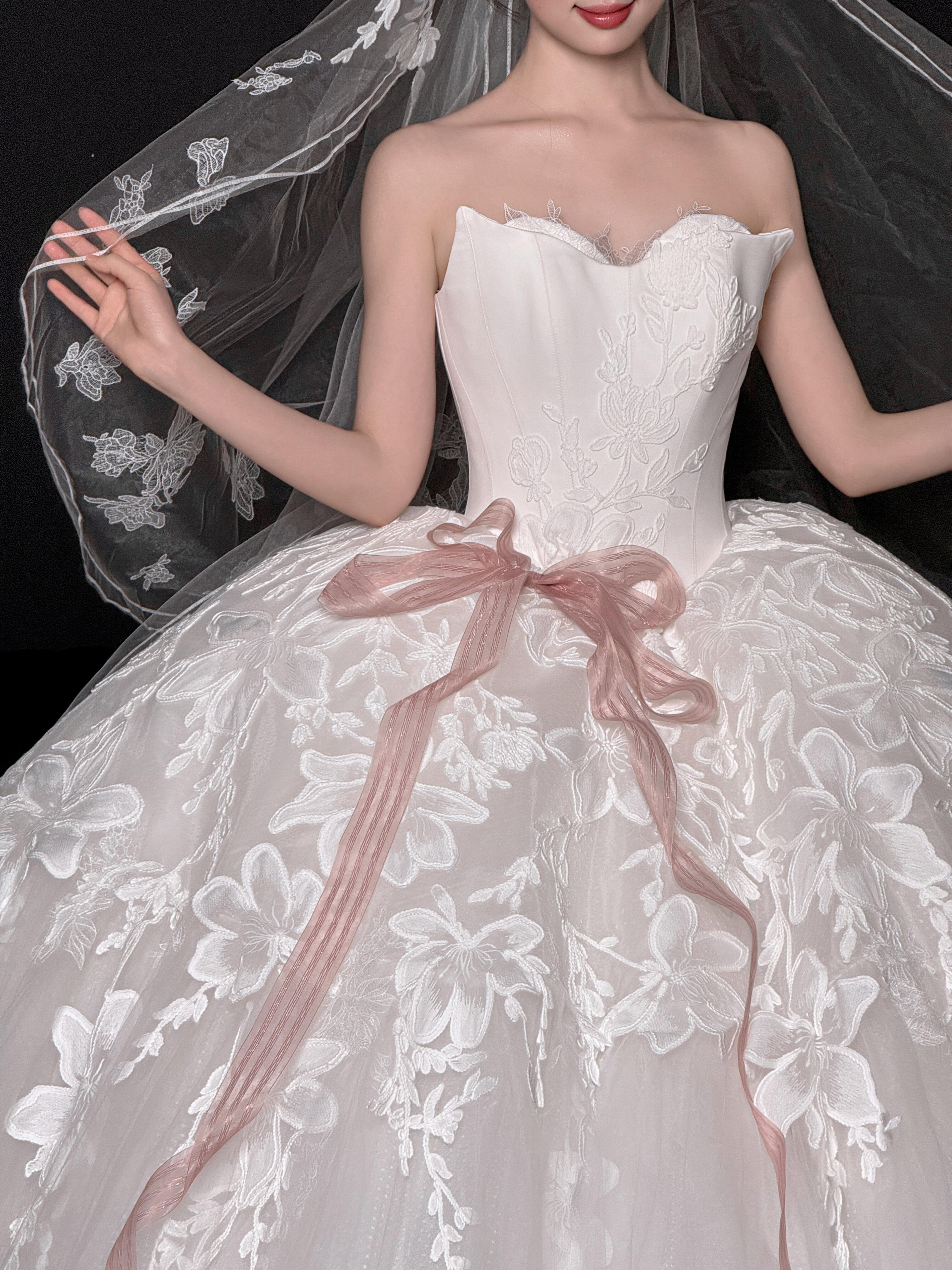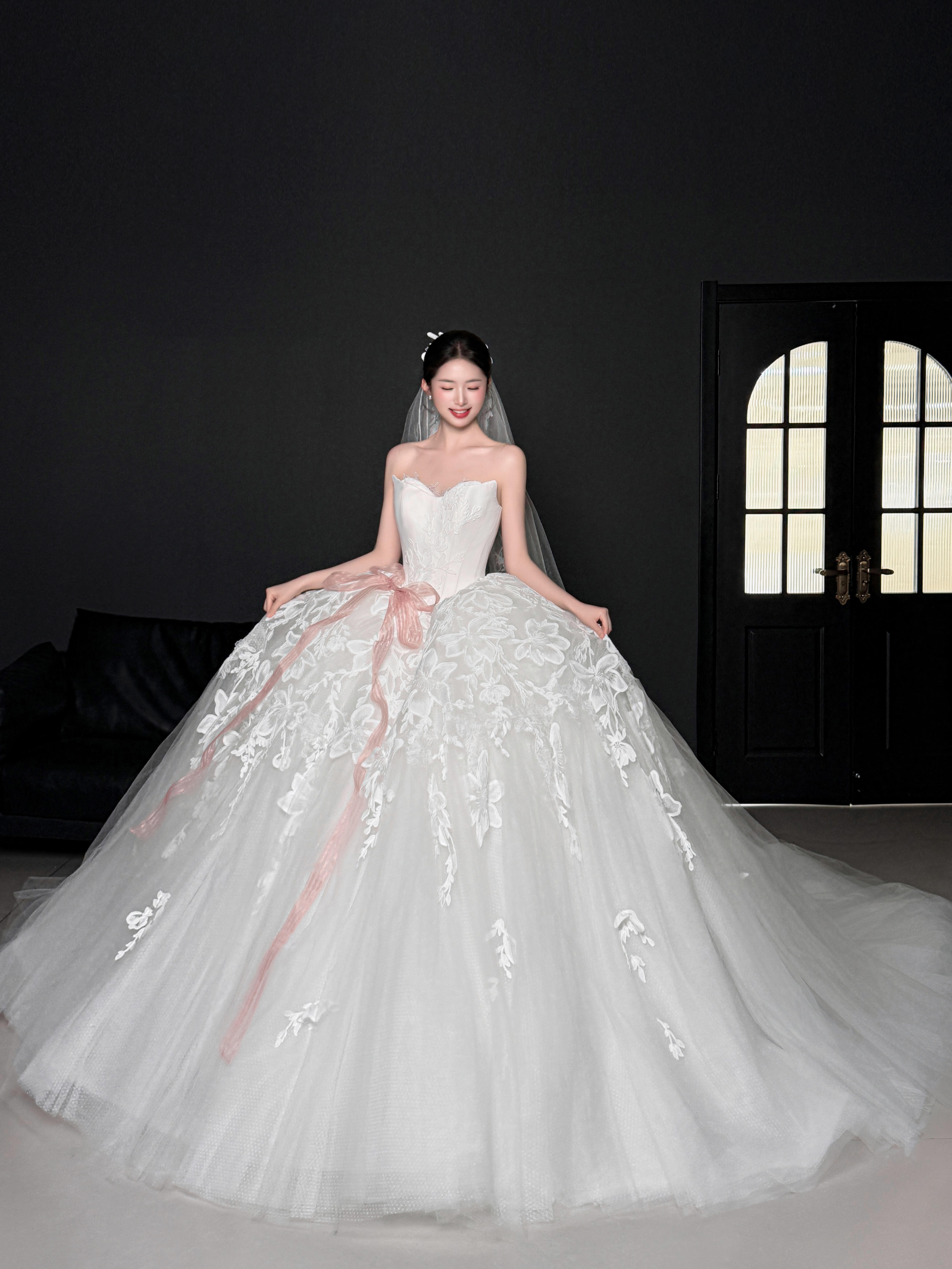 粉色蝴蝶结甜系婚纱