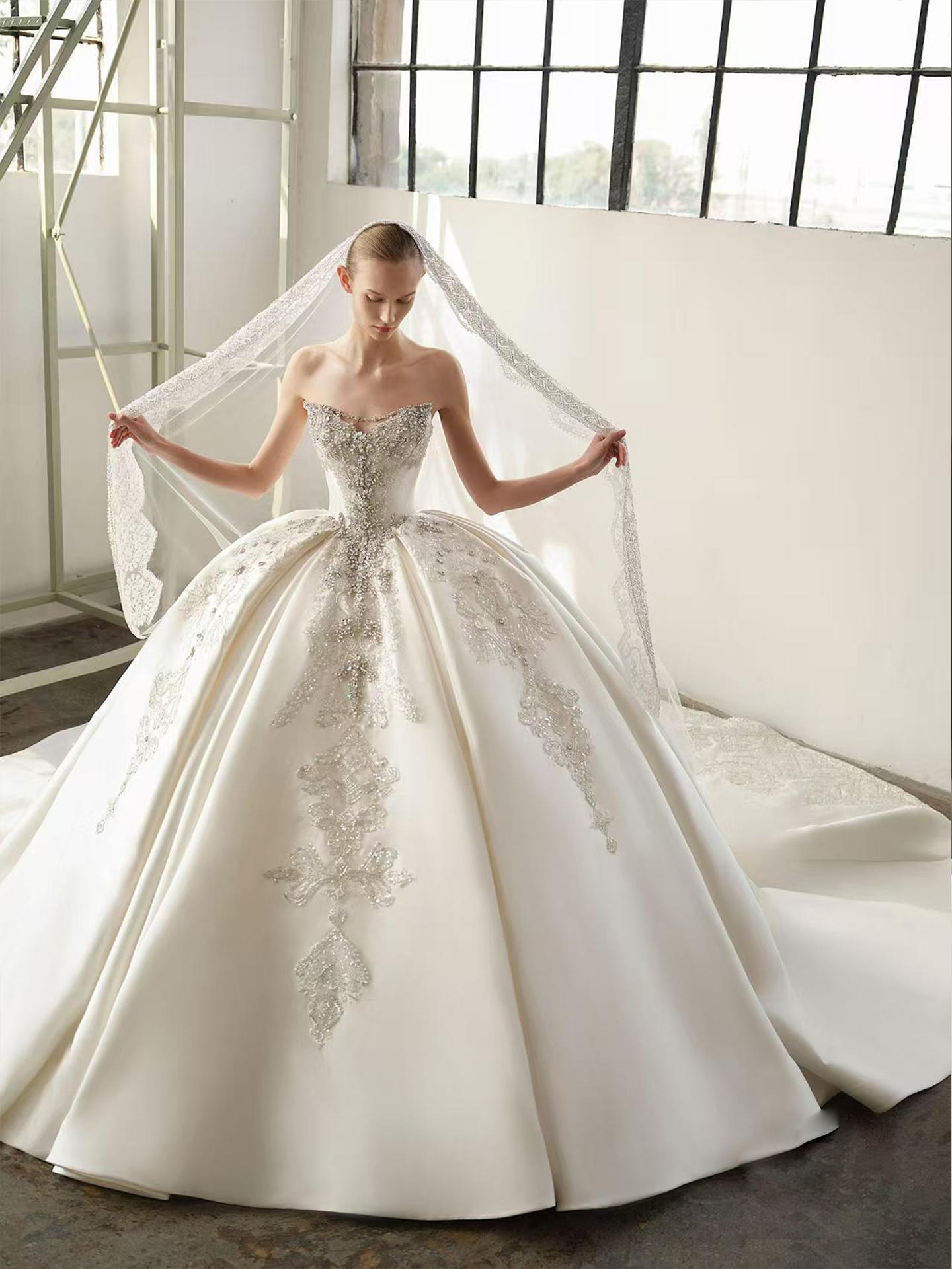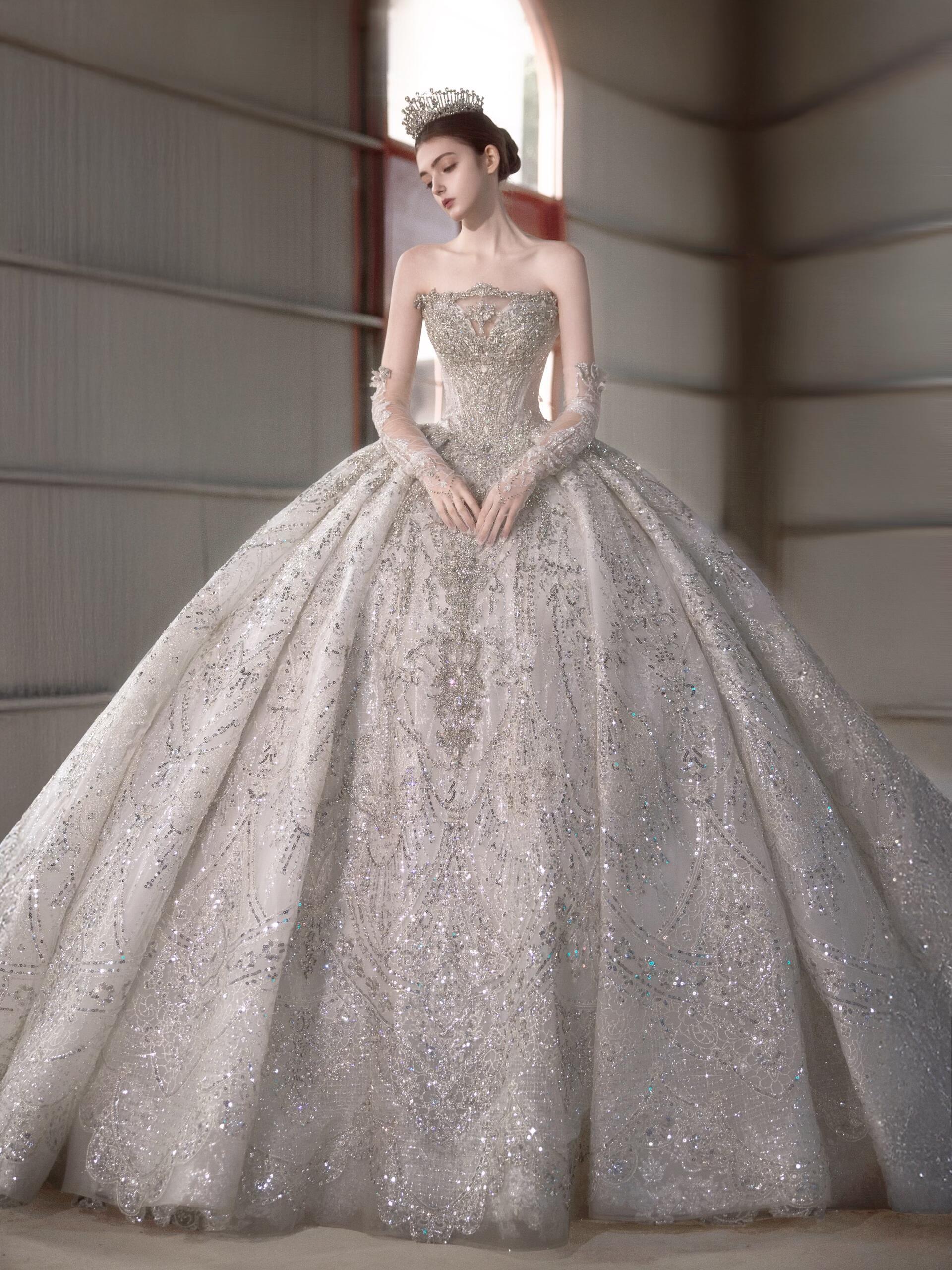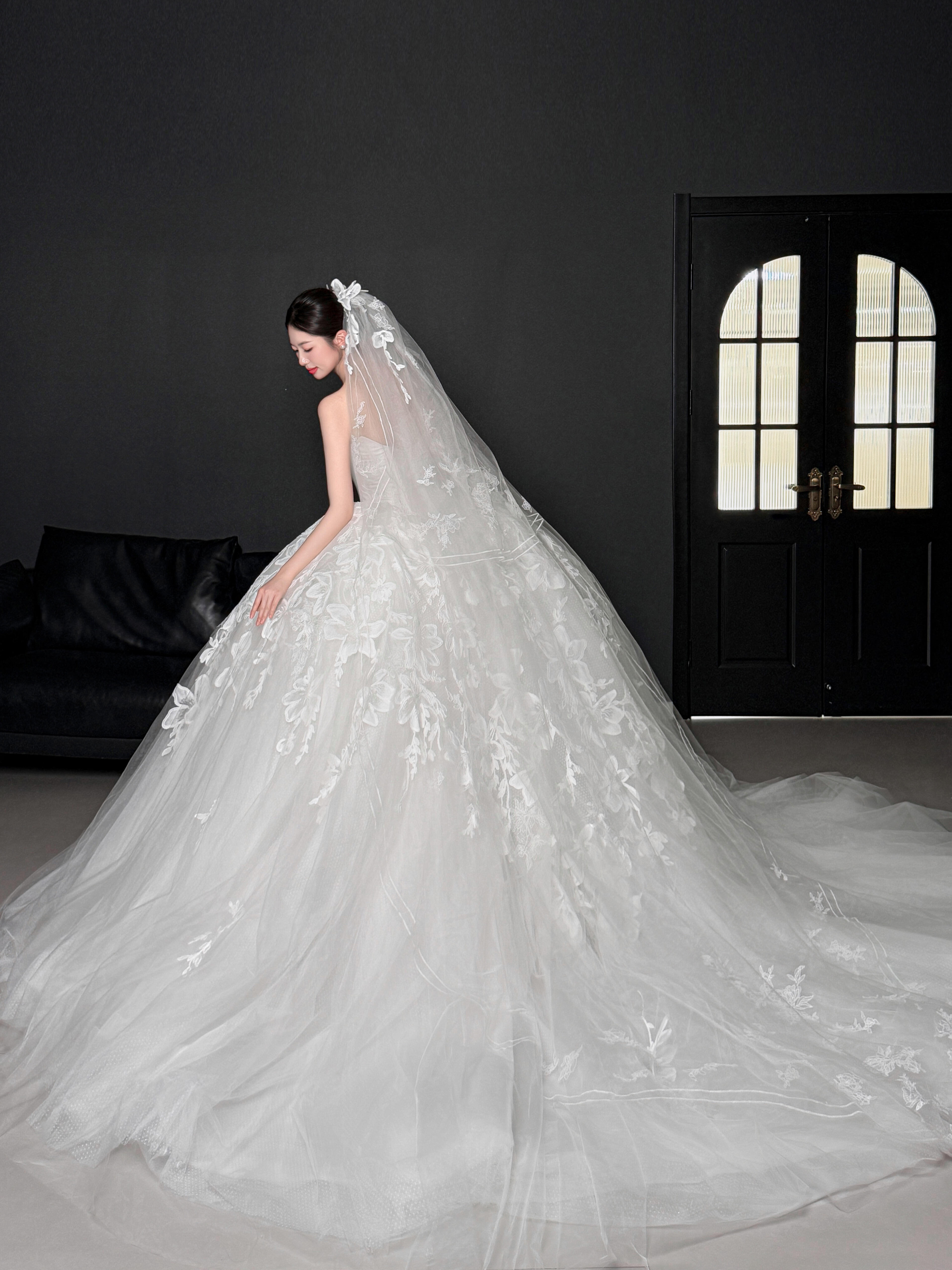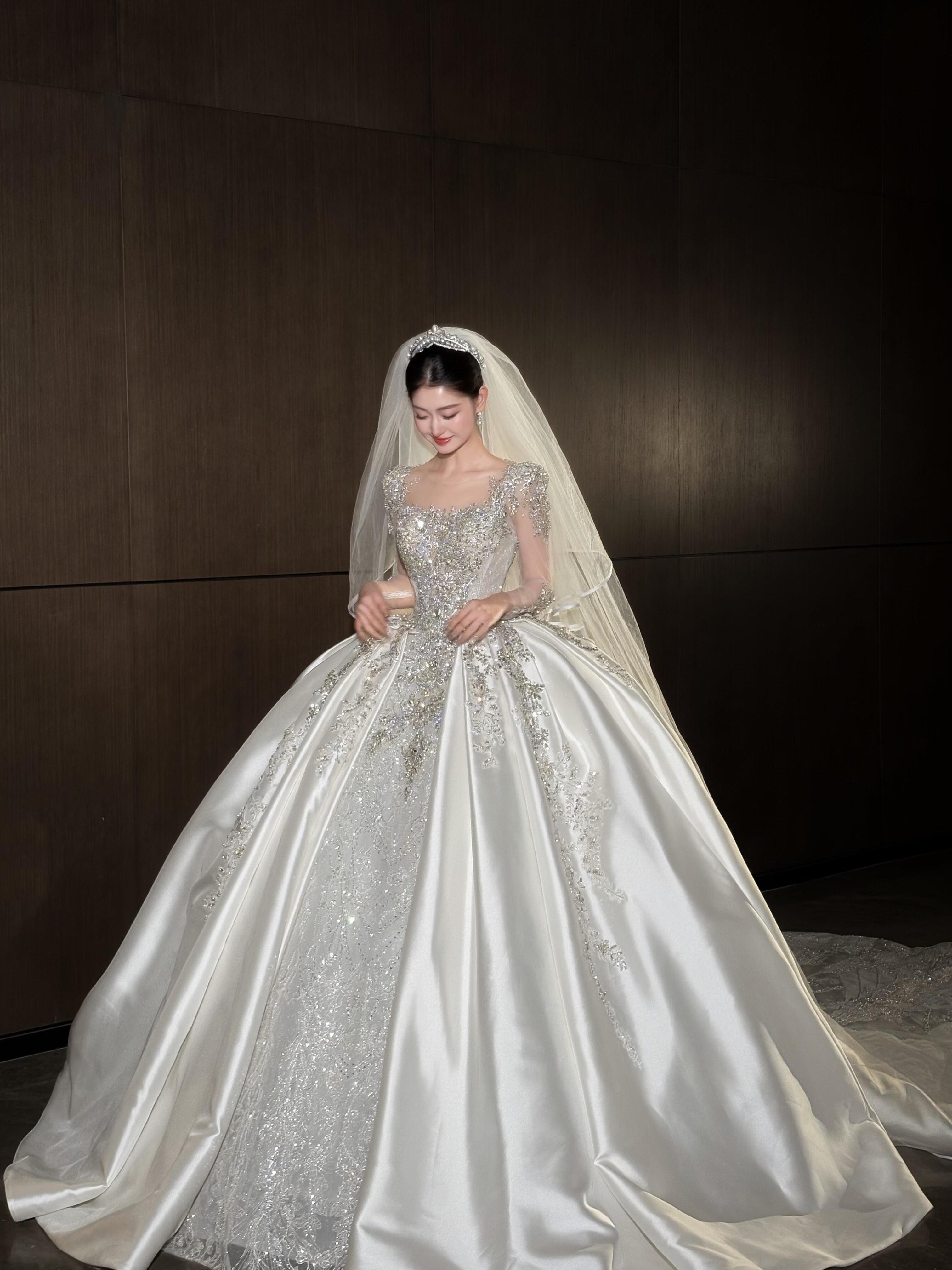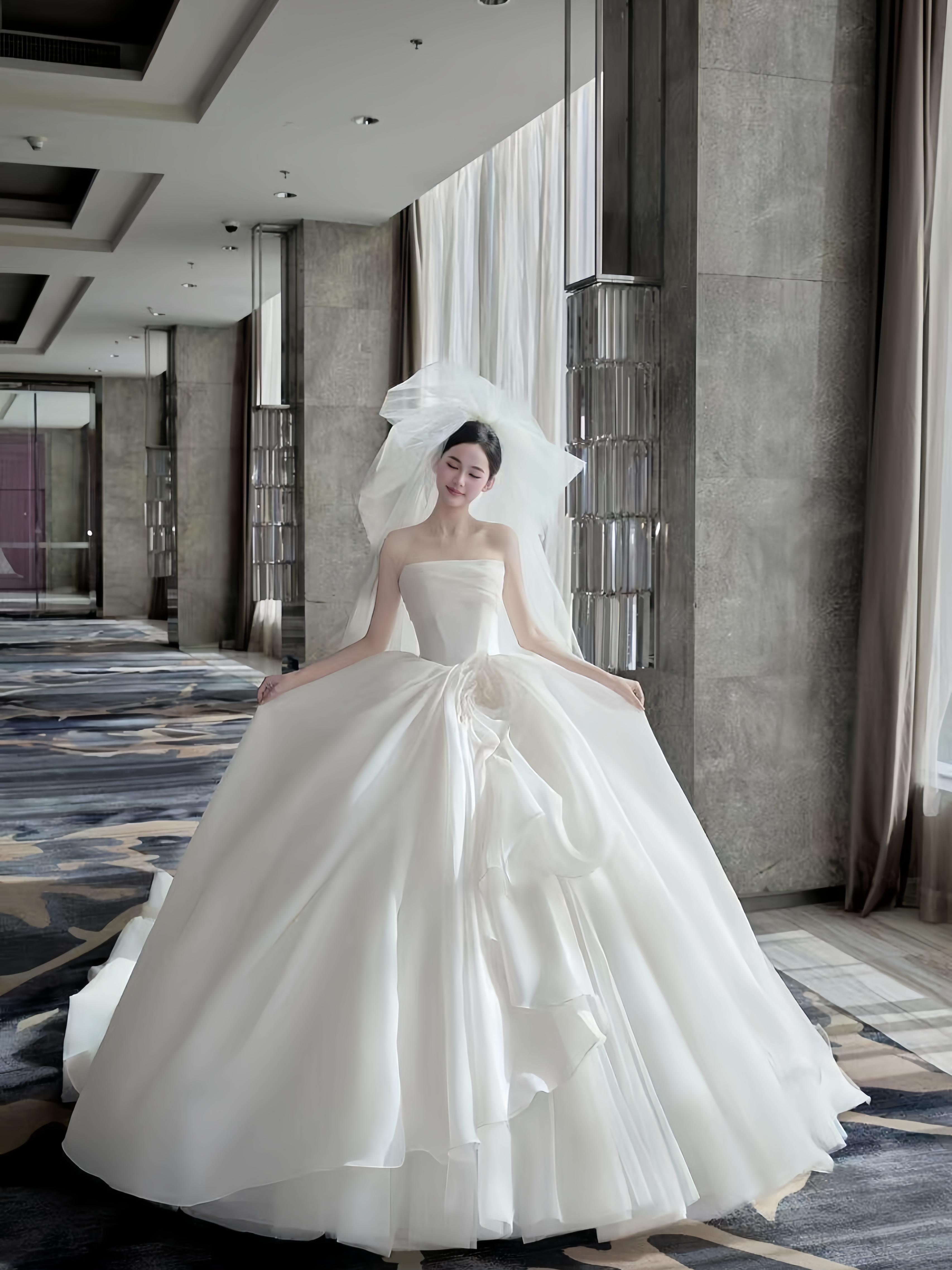 粉色蝴蝶结甜系婚纱