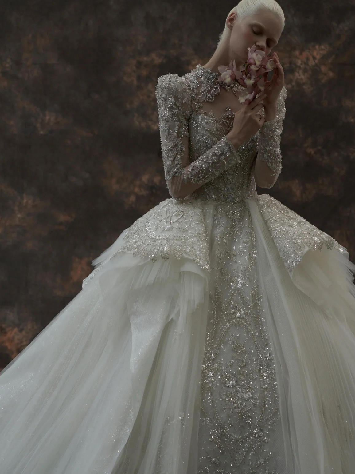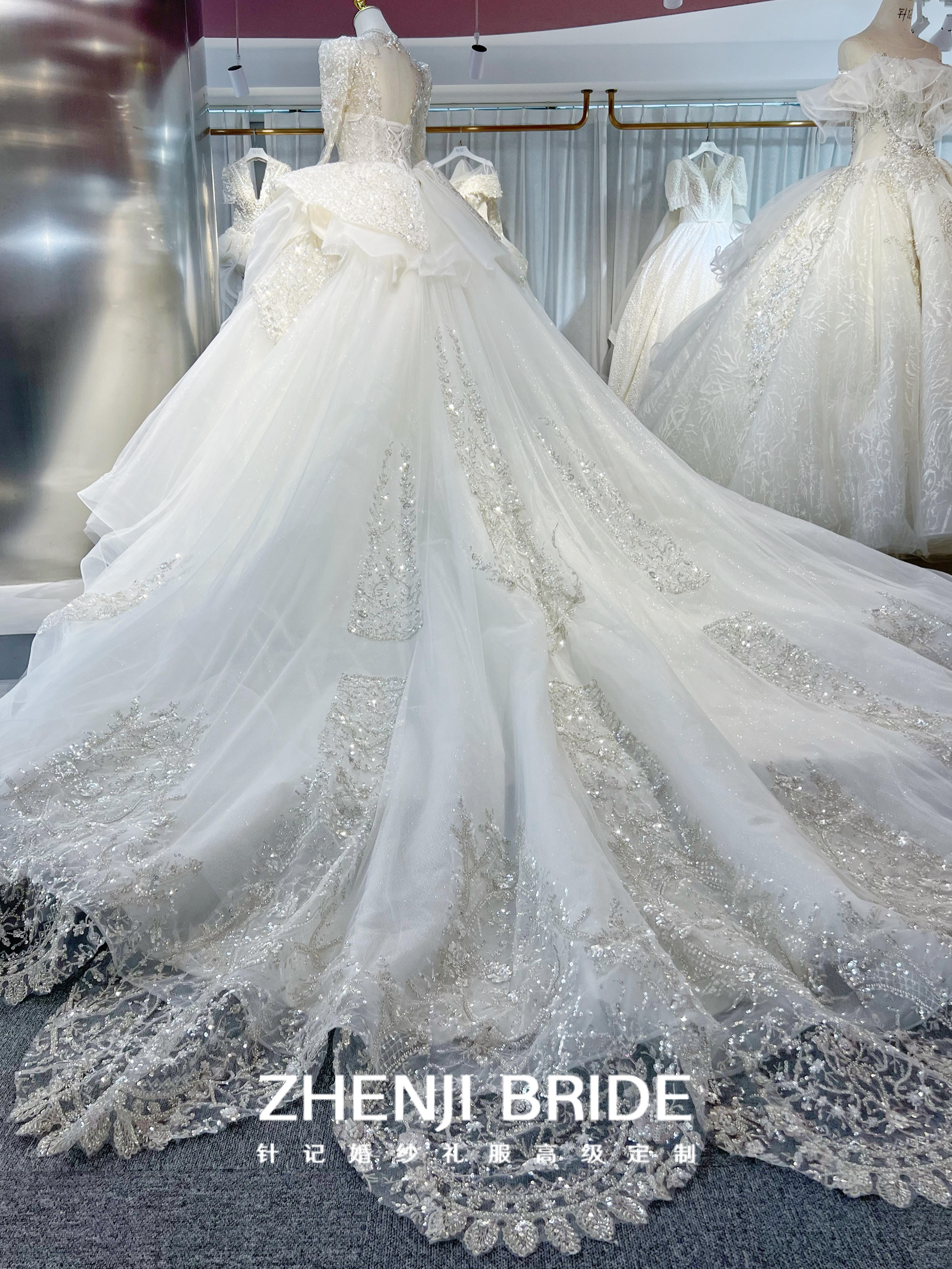 一字肩爆闪银河 大拖尾主纱