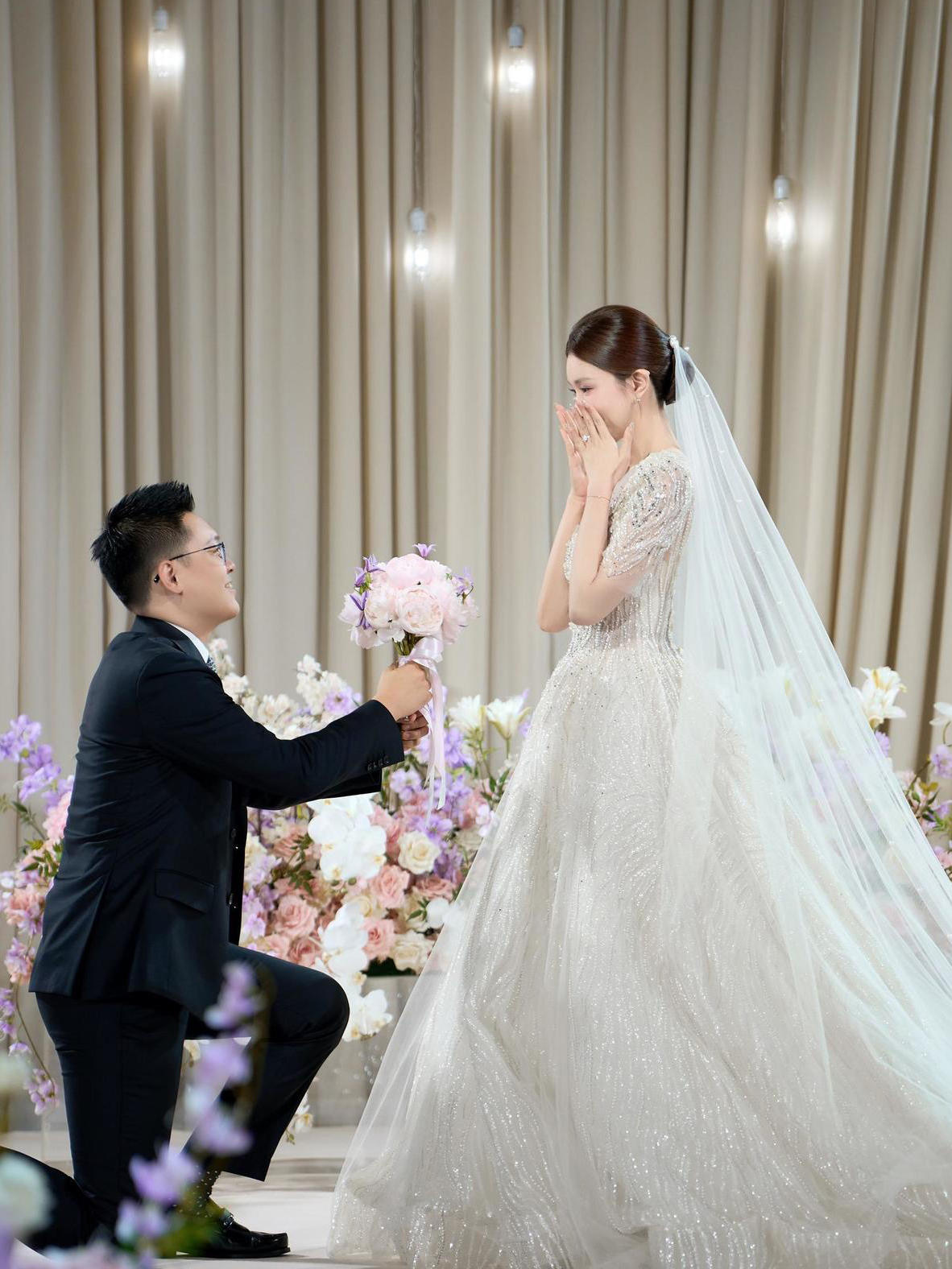 “感谢化妆师姐姐的精致妆容,让我一整天都美美的,好评⭐️⭐️⭐️⭐️⭐️;感谢主持人的细致讲解以及贴心引导,让我们的典礼圆满完成;感谢两位歌手的精彩演唱及魔术师🧙的奇幻表演,把晚宴的氛围调动起来;也要感谢摄影师,结婚之前为我们的细致安排以及精心拍摄,为我们留下以后的美好回忆,还有这次结婚典礼过程中我们还不知道的工作人员们,再一次表达感谢,各位辛苦啦!💐