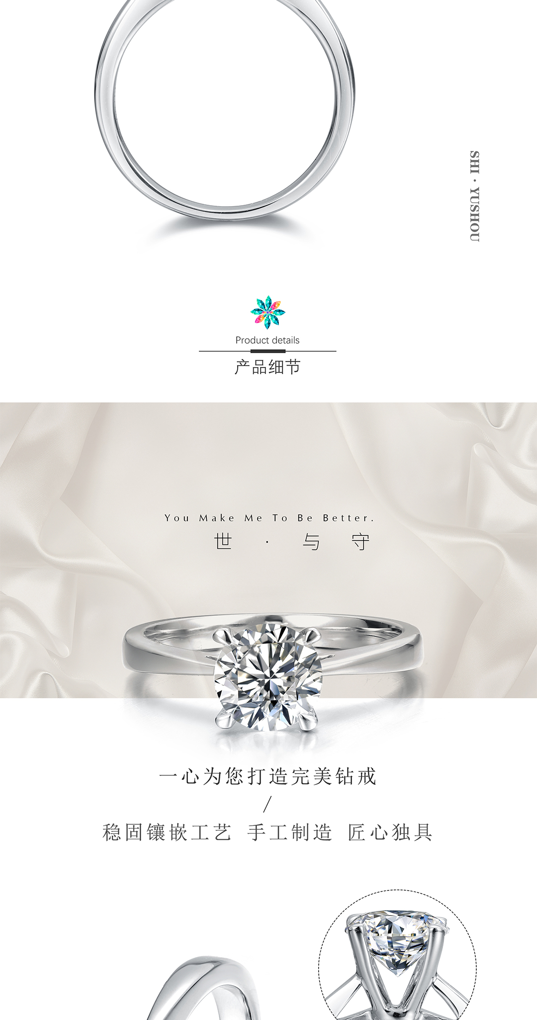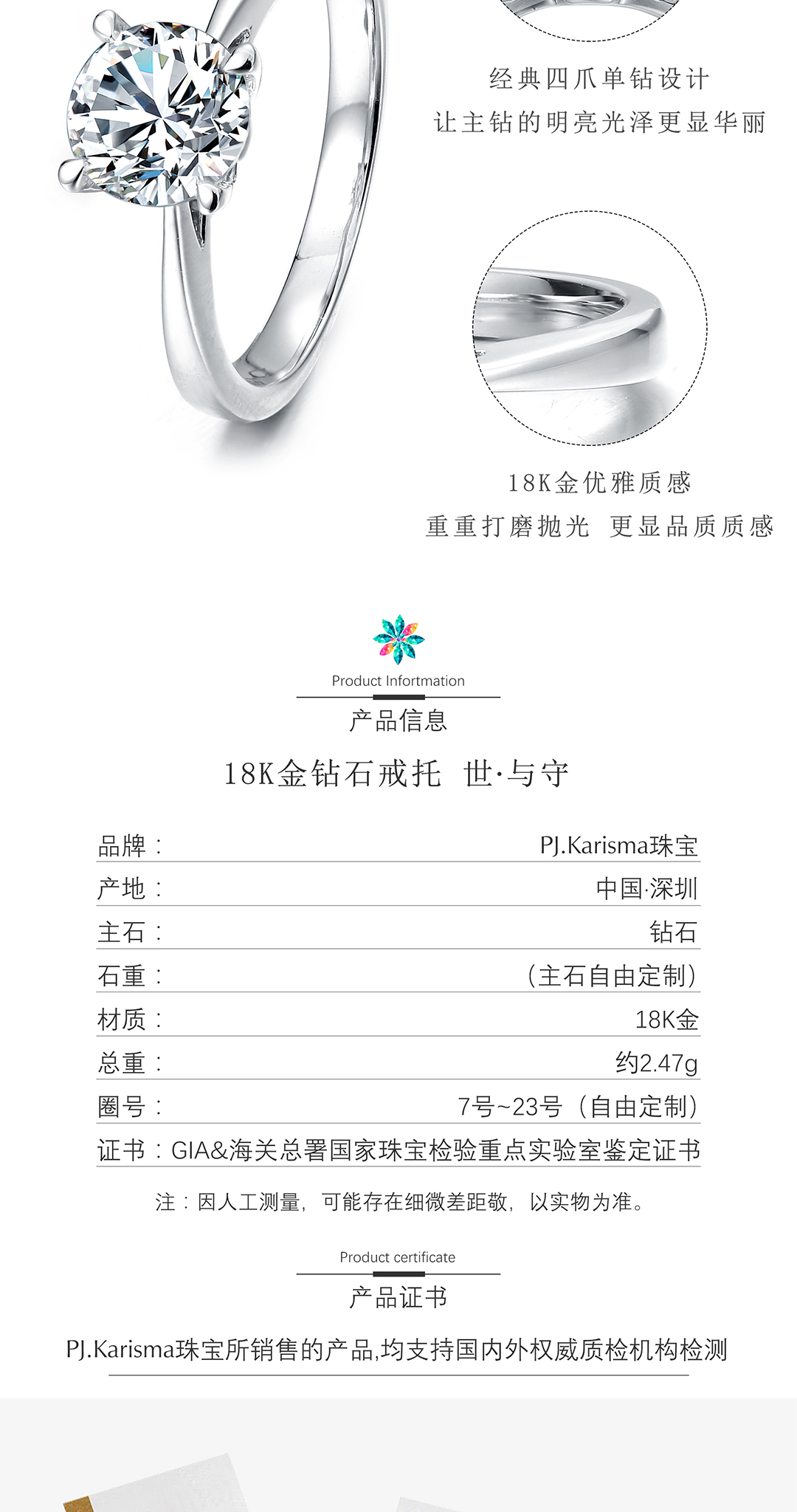 因为是异地的,没办法去实体店看款式,第一次在网上定制,体验还是不错的,钻石腰码也跟证书上的一致,做工特别细致,很喜欢这个款式。