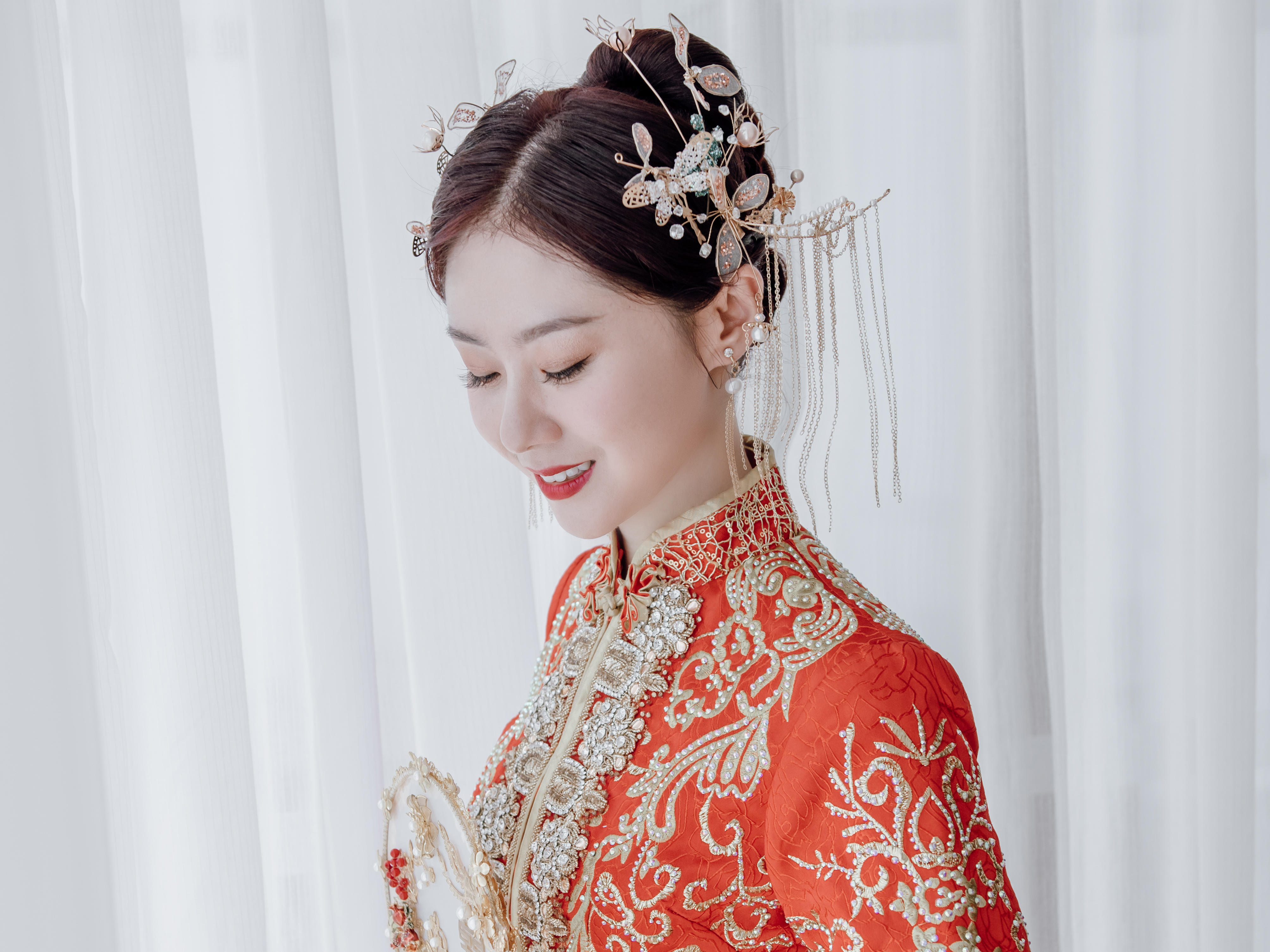 ★化妆师全天跟妆(8:00~19:00)<br />★当场订单免费试妆<br />★三组造型(秀禾/裙褂接亲、迎宾婚纱、晚礼敬酒服)<br />★全程免费提供纯手工定制头饰、头纱、耳环)<br />★均使用一线品牌化妆品<br />
