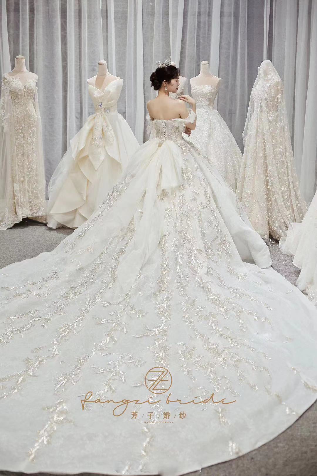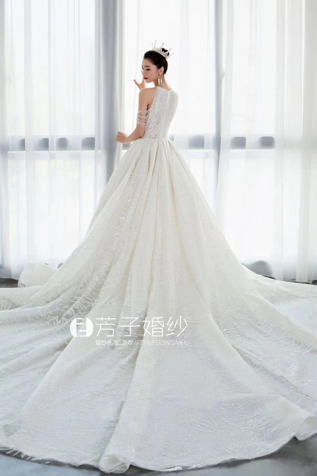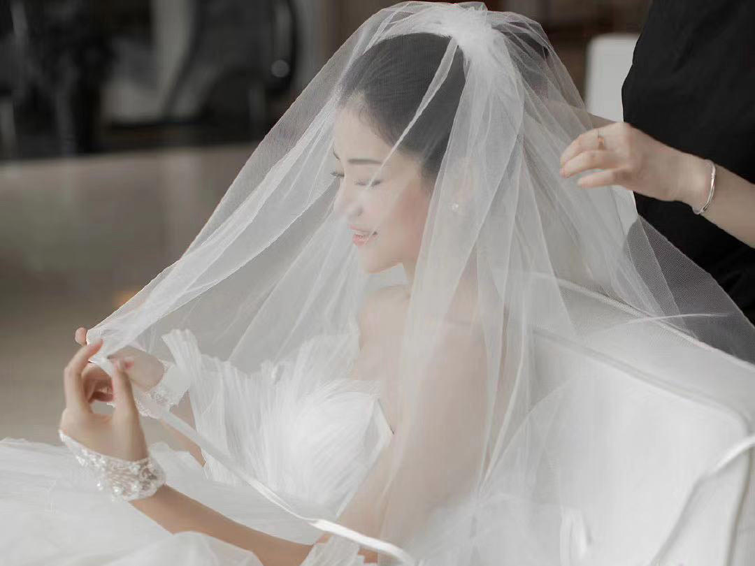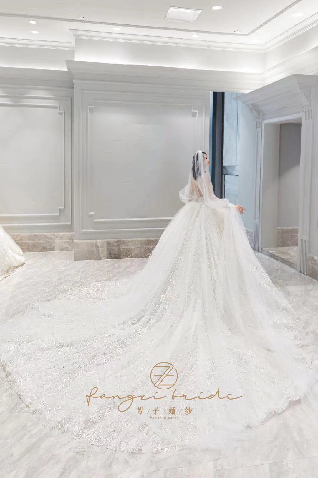 我的秀禾服和敬酒服自己买好了,但是主纱想要租。一直都没有找到我心仪的,因为我的要求比较高。我想要很仙的,性价比要高,穿着要舒服,还想要很大的拖尾尾。试了四五家店,都没有合适的,都快要灰心了。朋友给我介绍了这家,说是这家店刚开不久,衣服很特别,也比较新,让我去试试。店里的设计师给我推荐了这件,我一眼就相中了,十分满意。店里服务很到位,我觉得很后悔没有三件套都来这边选。结婚真的是一件非常繁琐的事情,但是婚纱跟妆定的在婚礼上感觉非常美好,嘿嘿~