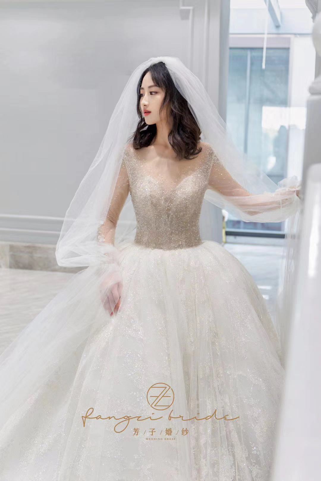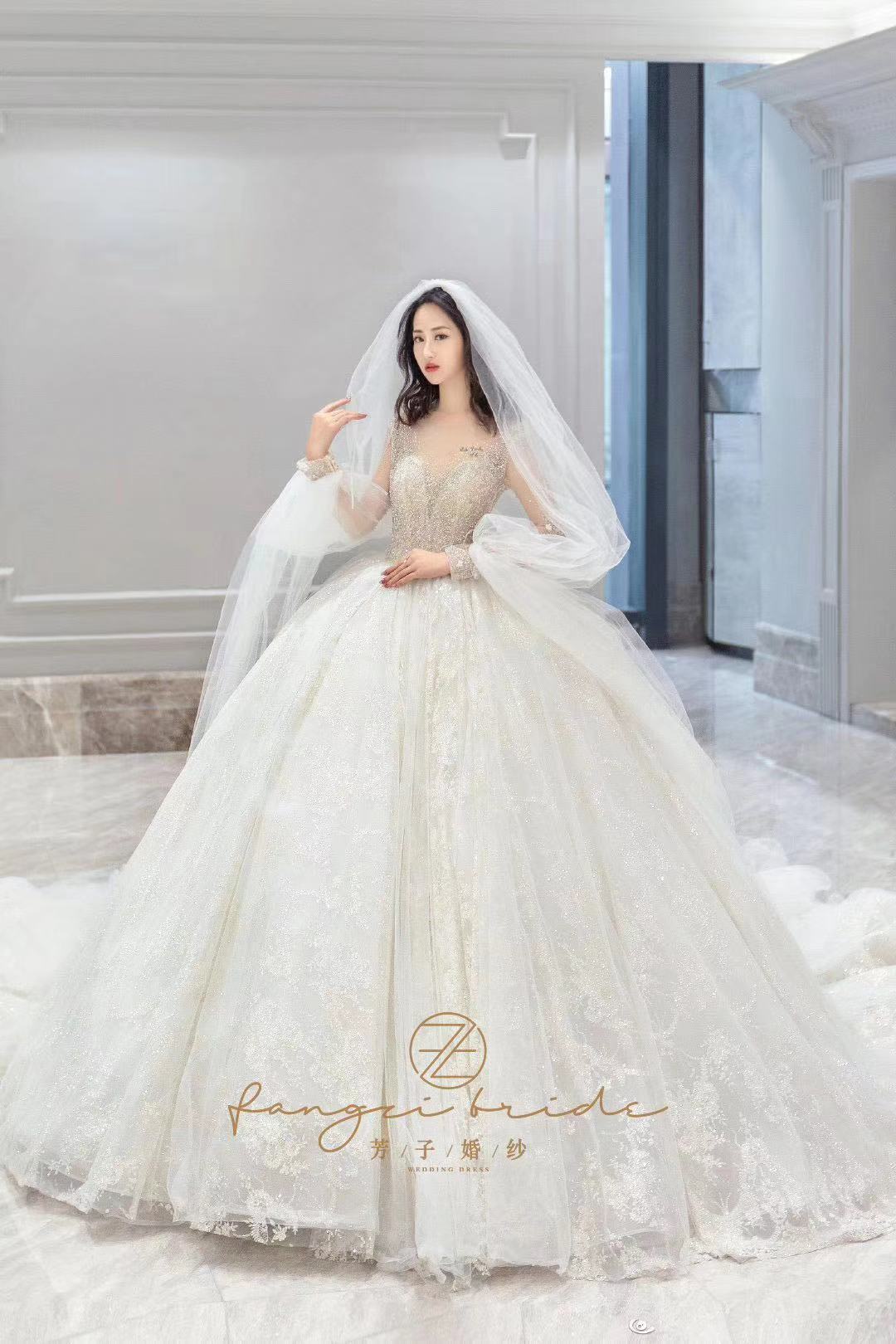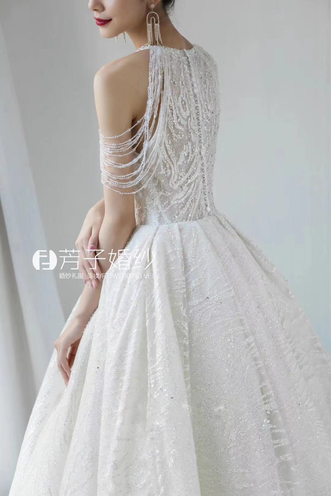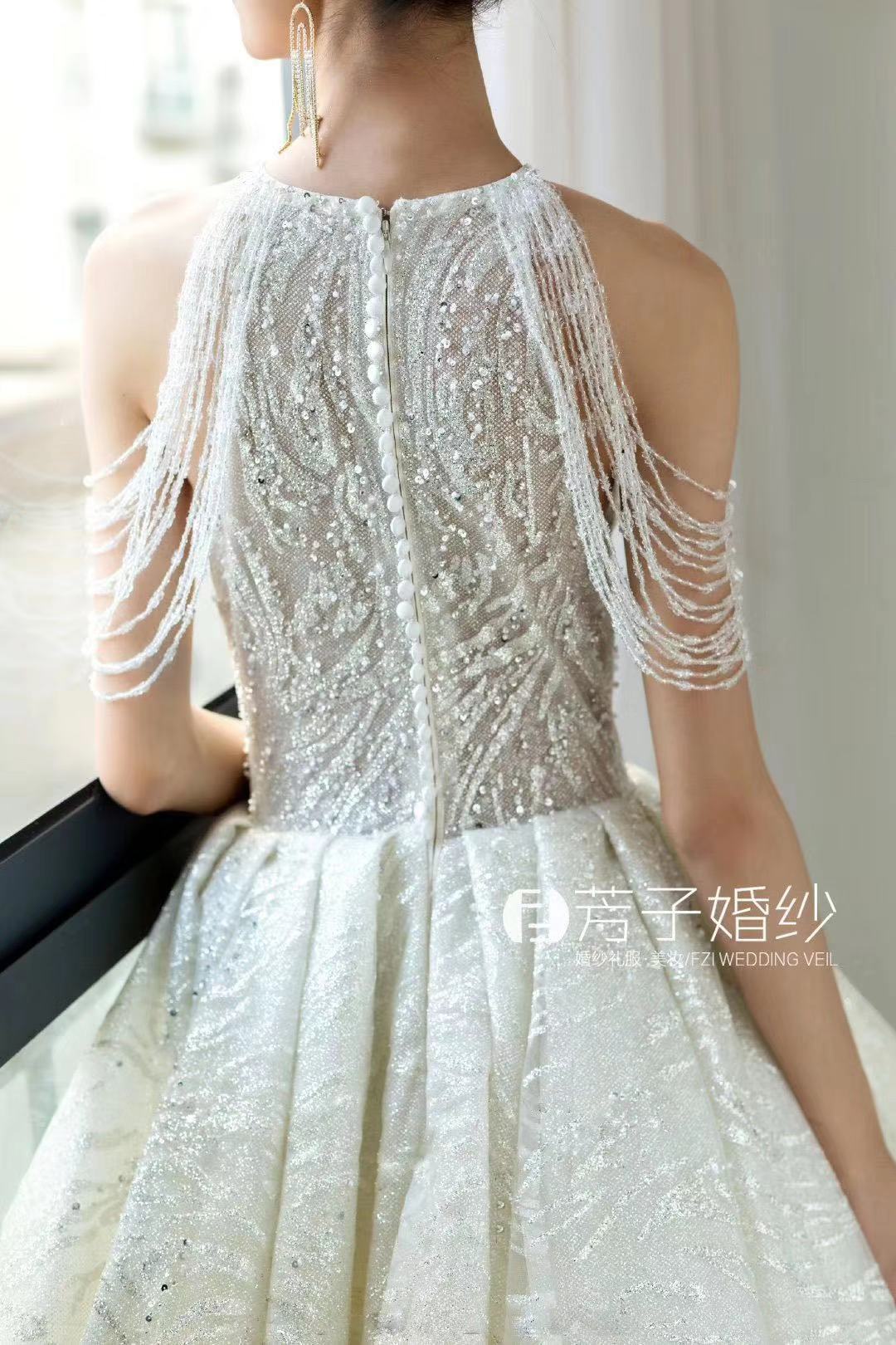 我的秀禾服和敬酒服自己买好了,但是主纱想要租。一直都没有找到我心仪的,因为我的要求比较高。我想要很仙的,性价比要高,穿着要舒服,还想要很大的拖尾尾。试了四五家店,都没有合适的,都快要灰心了。朋友给我介绍了这家,说是这家店刚开不久,衣服很特别,也比较新,让我去试试。店里的设计师给我推荐了这件,我一眼就相中了,十分满意。店里服务很到位,我觉得很后悔没有三件套都来这边选。结婚真的是一件非常繁琐的事情,但是婚纱跟妆定的在婚礼上感觉非常美好,嘿嘿~