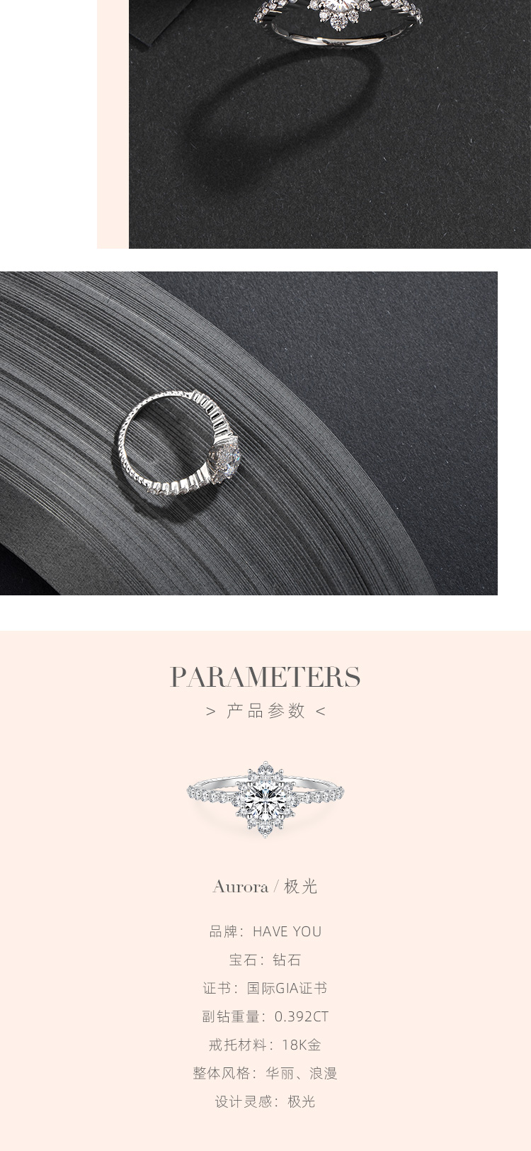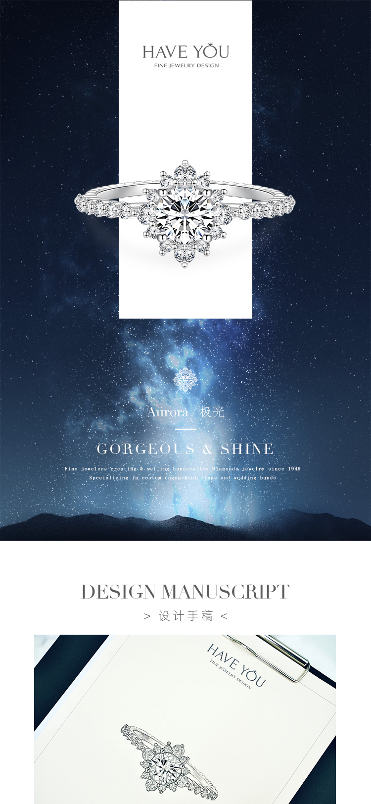 什么是爱,大概是所有美好的事物都想与你分享??,所有美好的事情都想有你参与吧。那大家的男朋友有没有帮大家挑选钻戒,贡献自己那一份微薄的力量呢? - 看我挑钻戒挑花了眼,迟迟不肯做决定后,我男朋友大胆的帮我定制了一枚钻戒!其实现在说出来我都还是觉得这是一场梦,醒了很久还是很感动……他自己在网上对比了多家品牌和店铺,最后选择了【HAVEYOU】,这一点我还是很满意哒。他和设计师沟通时就说了,要好看要特别几个字,好在设计师很用心,不管是设计图还是成品,都让我大声赞叹。主钻是圆哒,周围是大小交替排列的小钻,戒托真的很闪,排满了小钻,看得我直呼内行,我男朋友这种直男果然厉害,名字是我取得啦,极光。感谢他和【HAVEYOU】带给我的这一场视觉盛宴,承蒙厚爱。