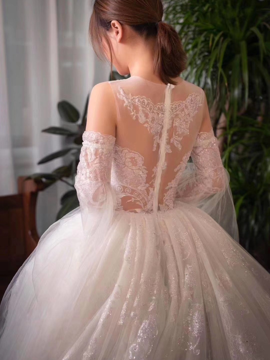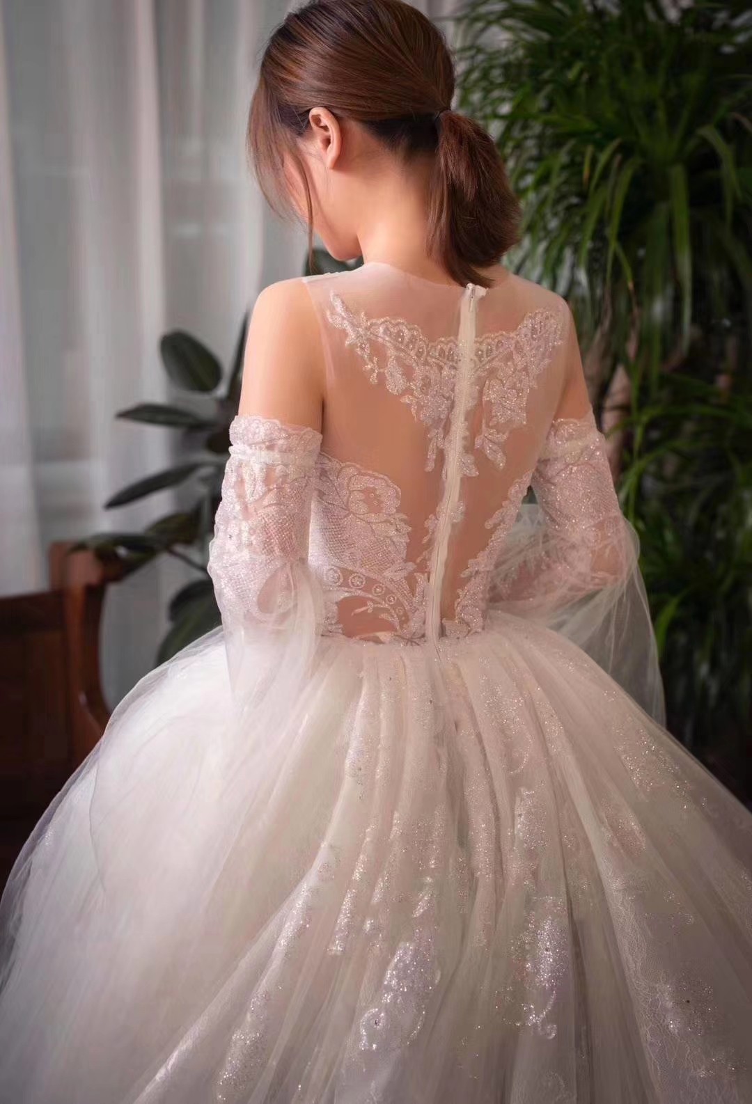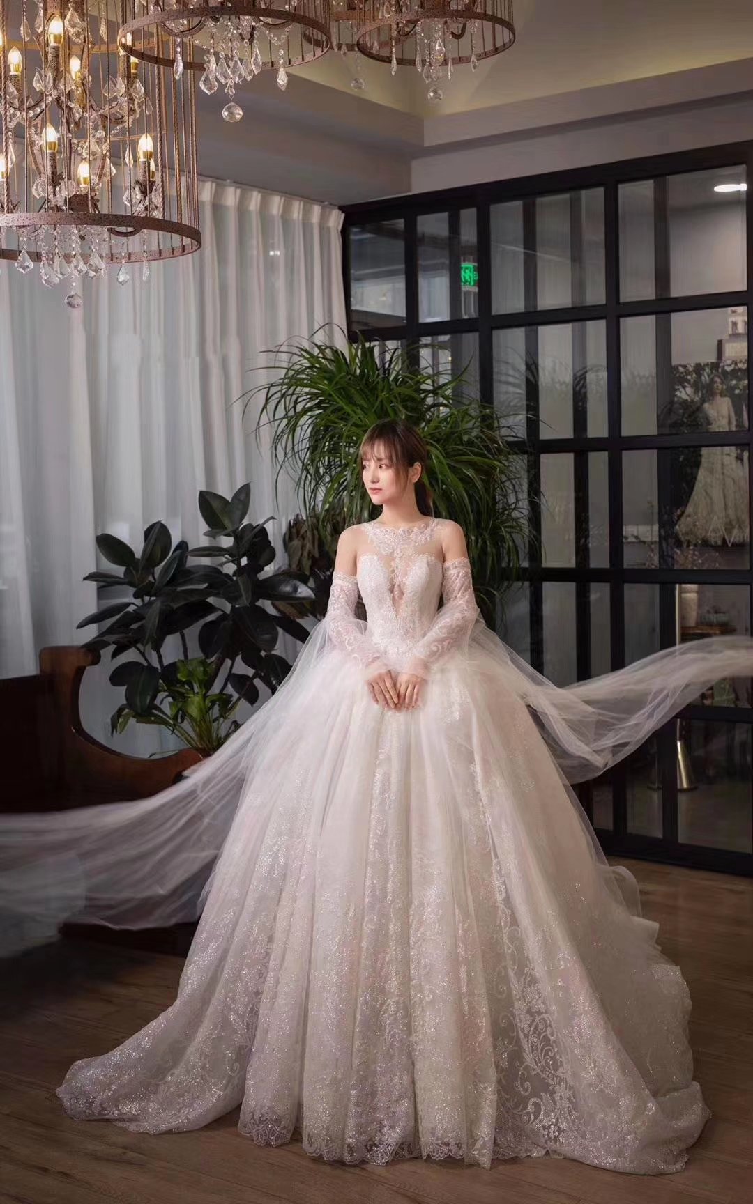 韩式主题缎面婚纱礼服,轻纱拖尾婚纱,中式秀禾服定制款