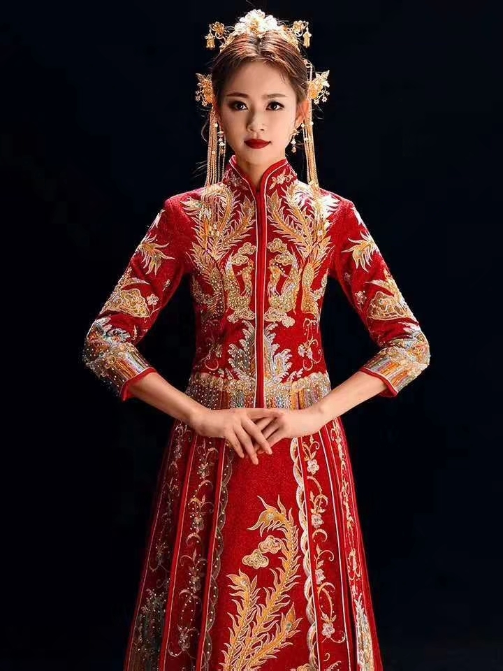 主推韩式主题缎面婚纱礼服加中式秀禾服造型设计