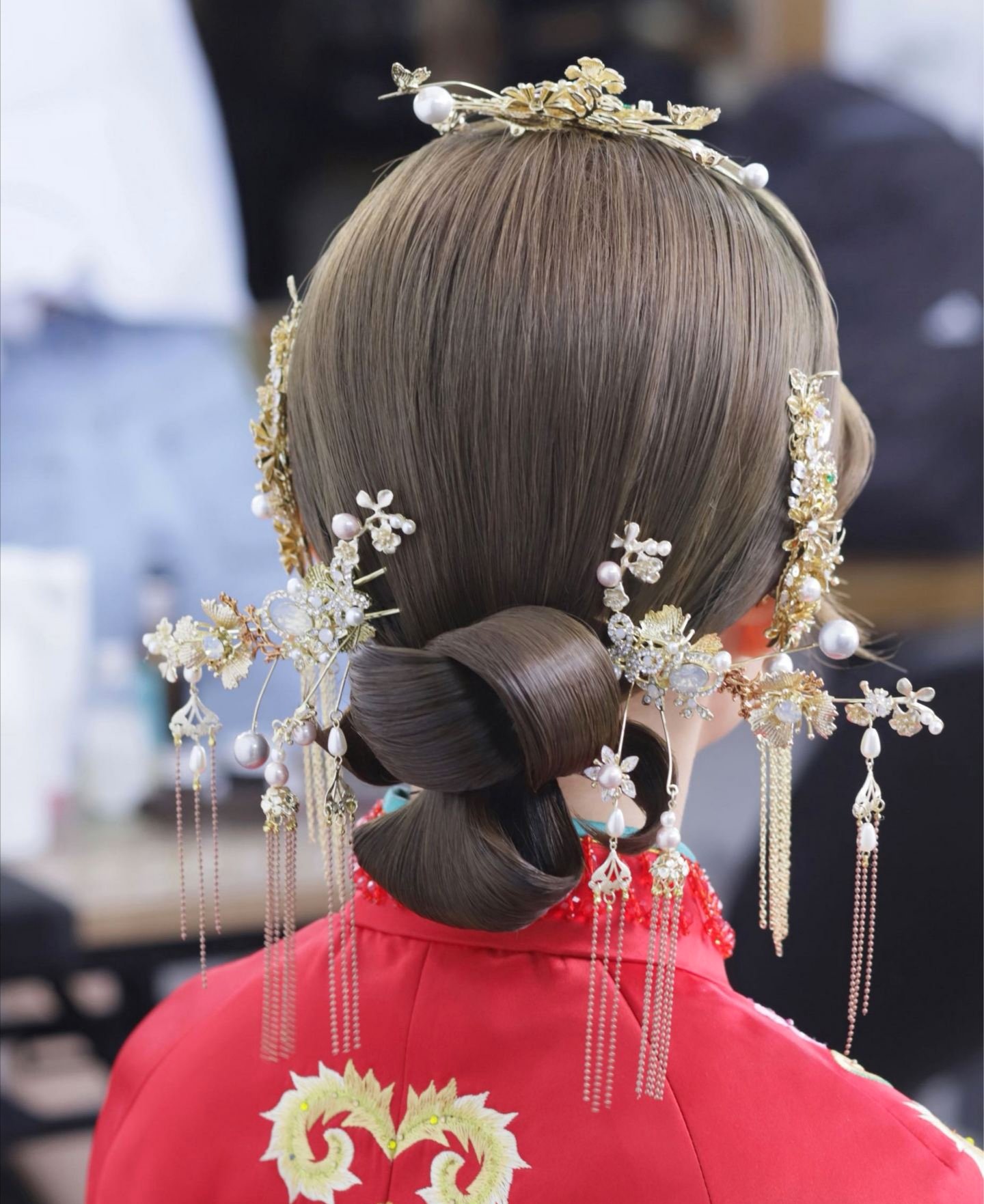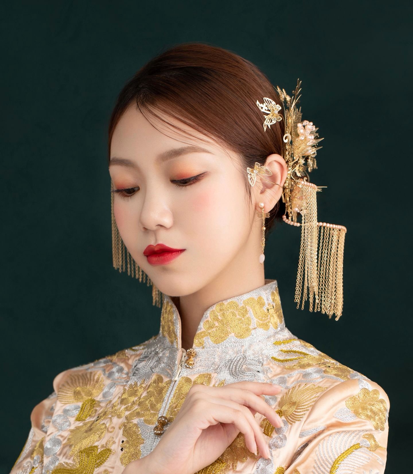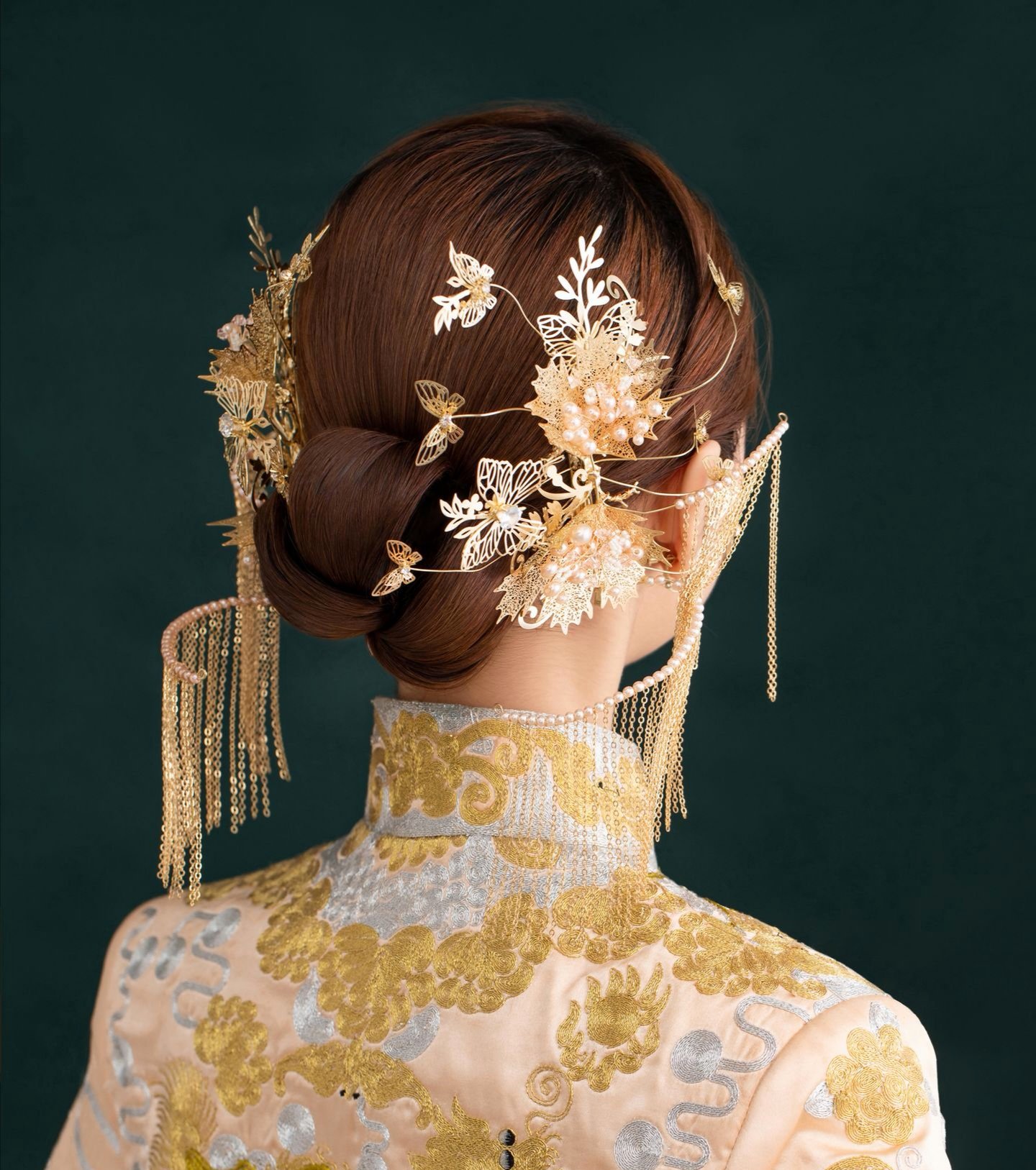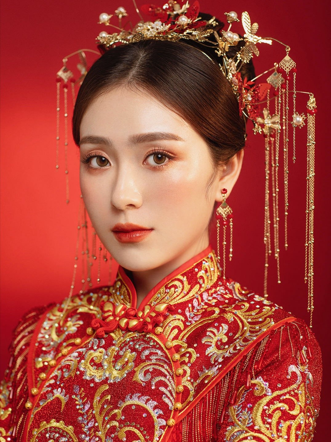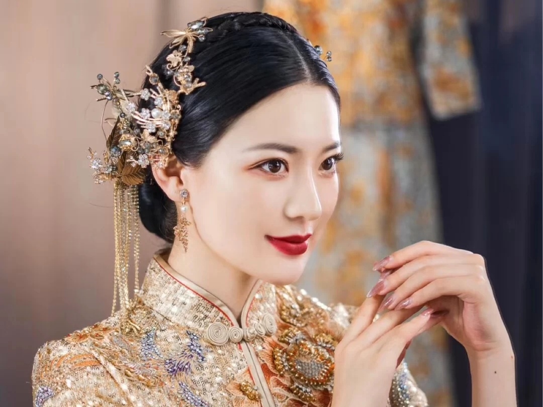 本套餐包含全天跟妆,新娘3妆+4造,全款礼送新娘妈妈妆造一个,伴娘妆造2个。 礼服:高定晶钻款大拖尾婚纱1件 +秀禾服1件 +敬酒服1件+伴娘服2件 +伴郎服2件 ,本套餐无隐形消费!