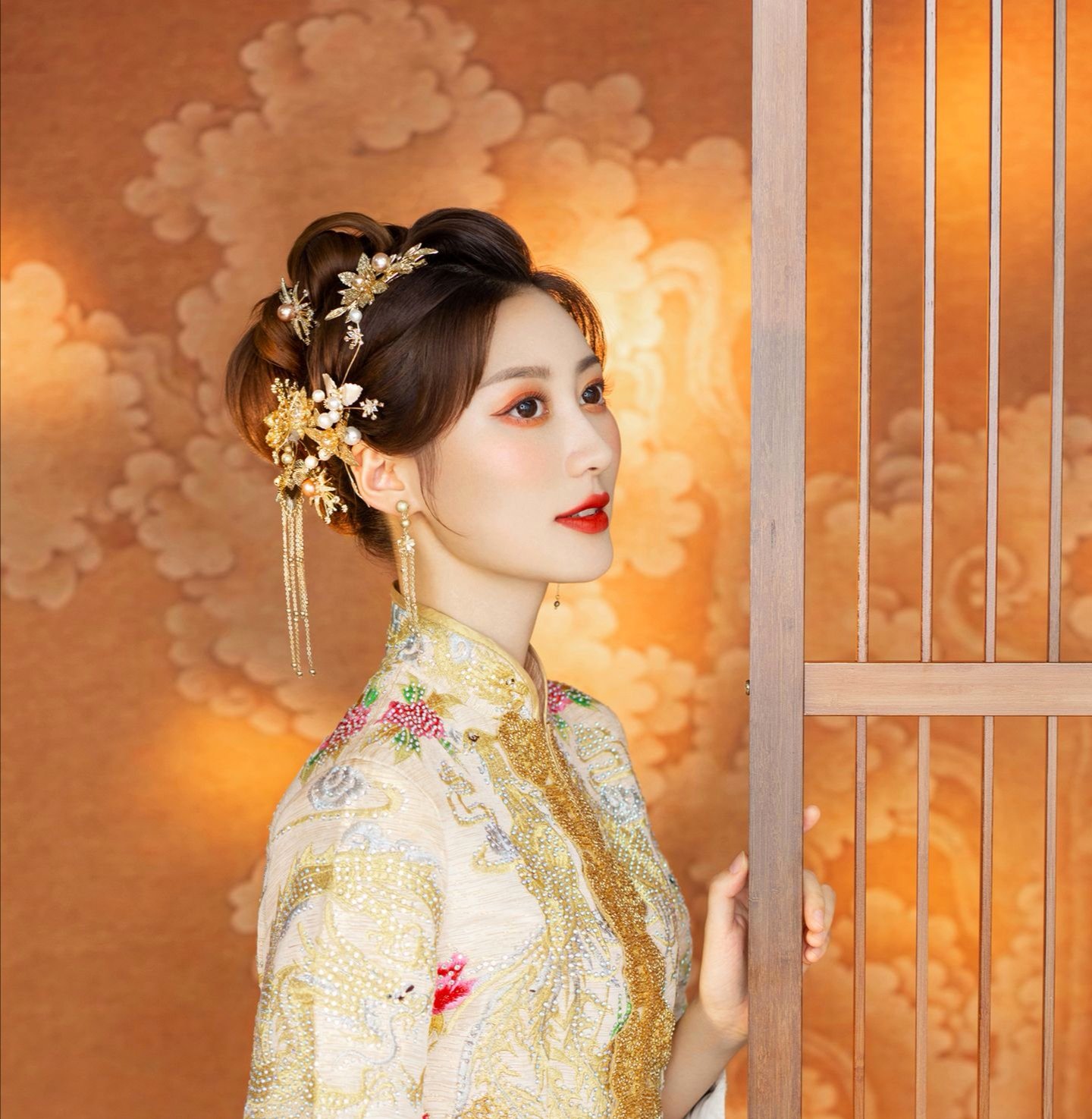 全天跟妆服务:总监化妆全程跟妆一对一服务,根据新娘自身气质~服装款式~婚礼场景,设计变换婚礼当天整体妆造<br />