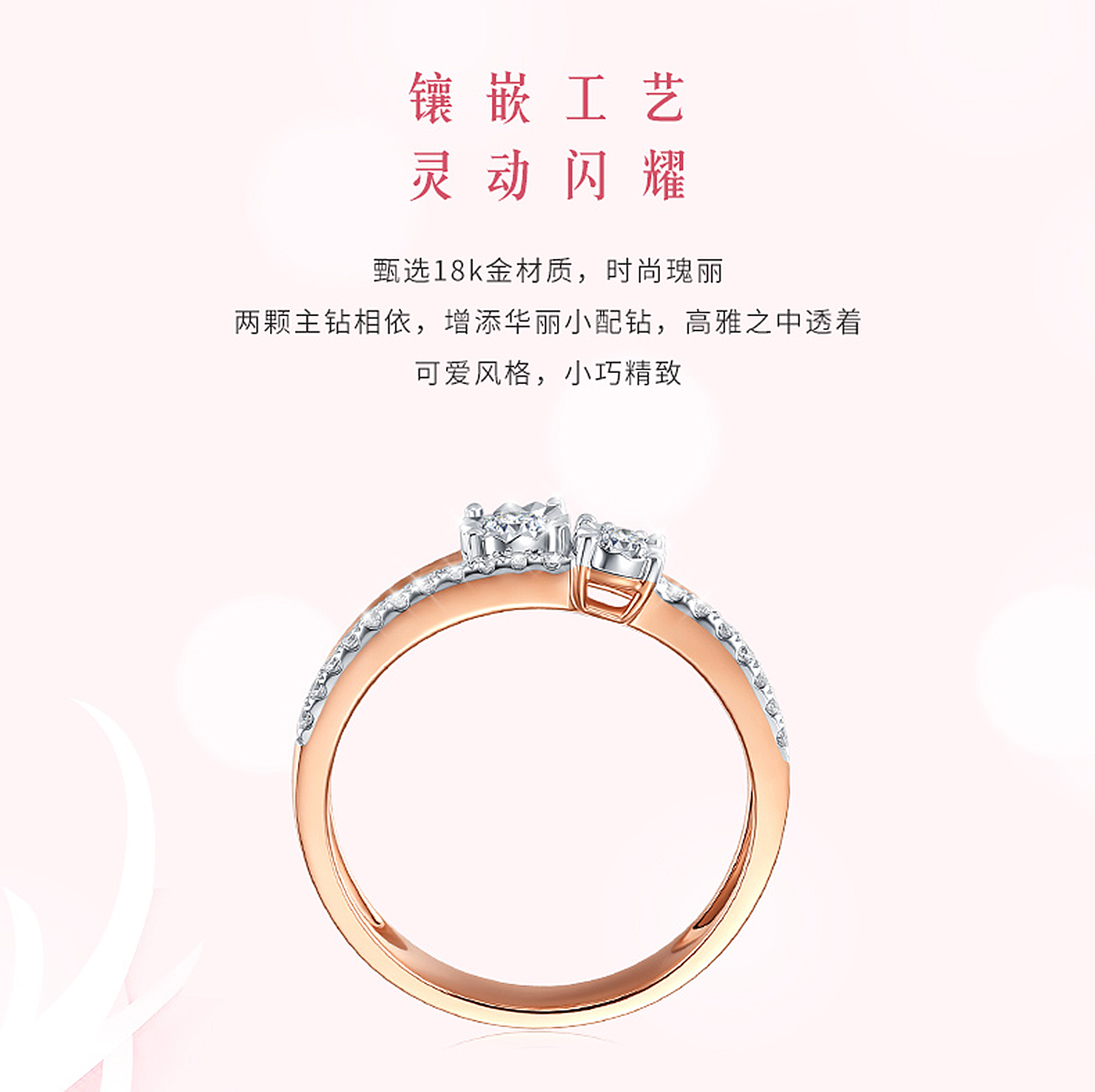 时尚钻石精致戒指18K金20颗钻石 婚戒首饰
