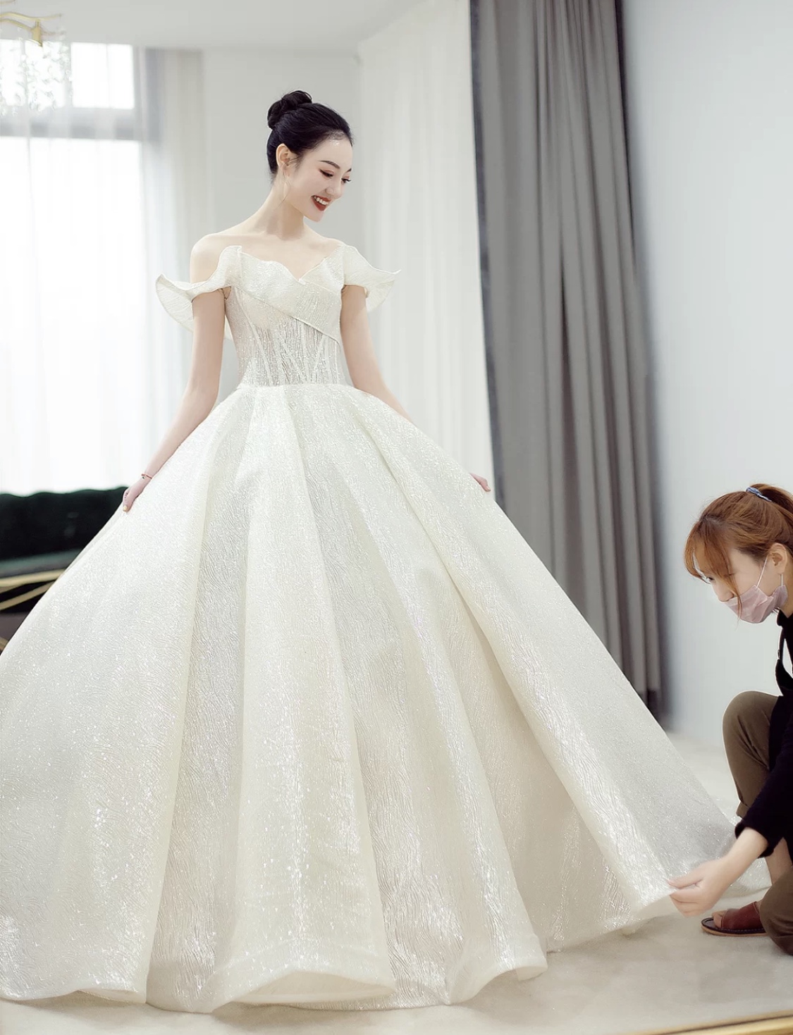 店铺很好找,礼服师眼光非常好,根据我的婚礼现场情况结合我的身材,给我推荐的主纱款上身效果非常棒,还会告诉我一些贴心小建议,比心爱心!