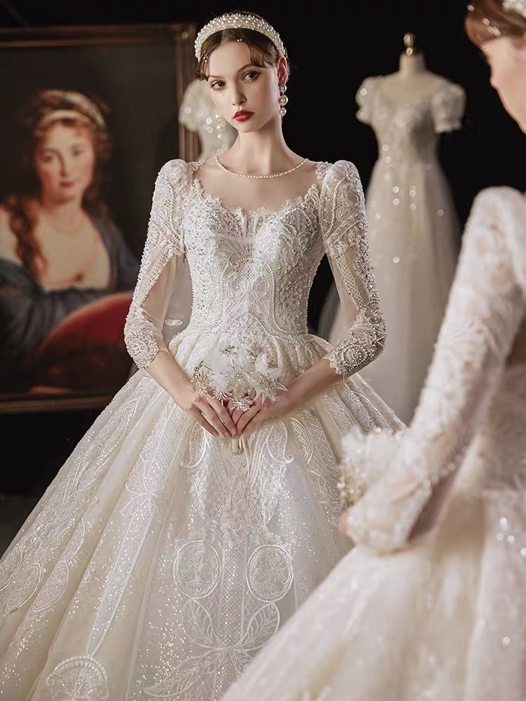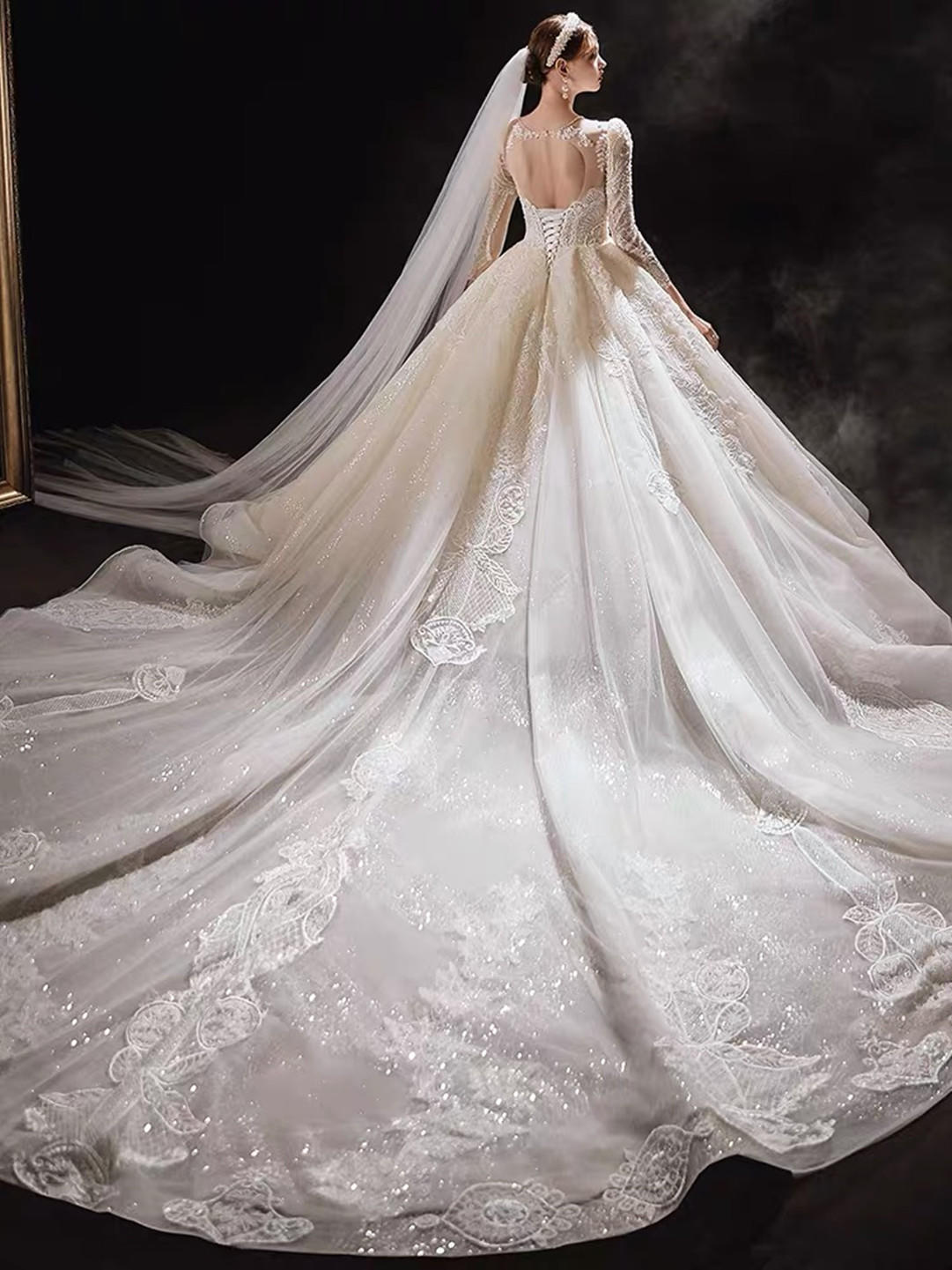 2020新品高档拖尾主纱一件,免费赠租头纱<br />