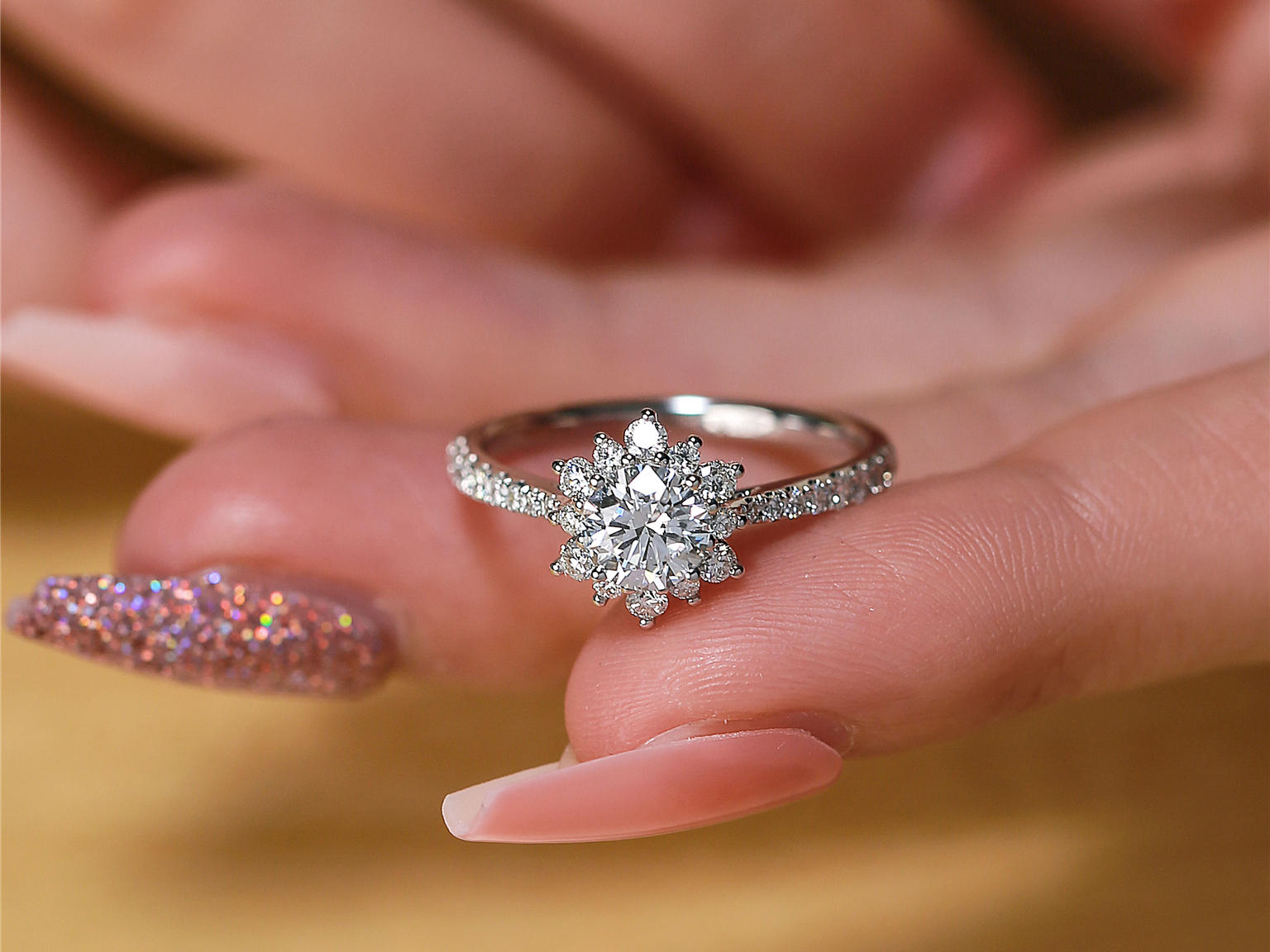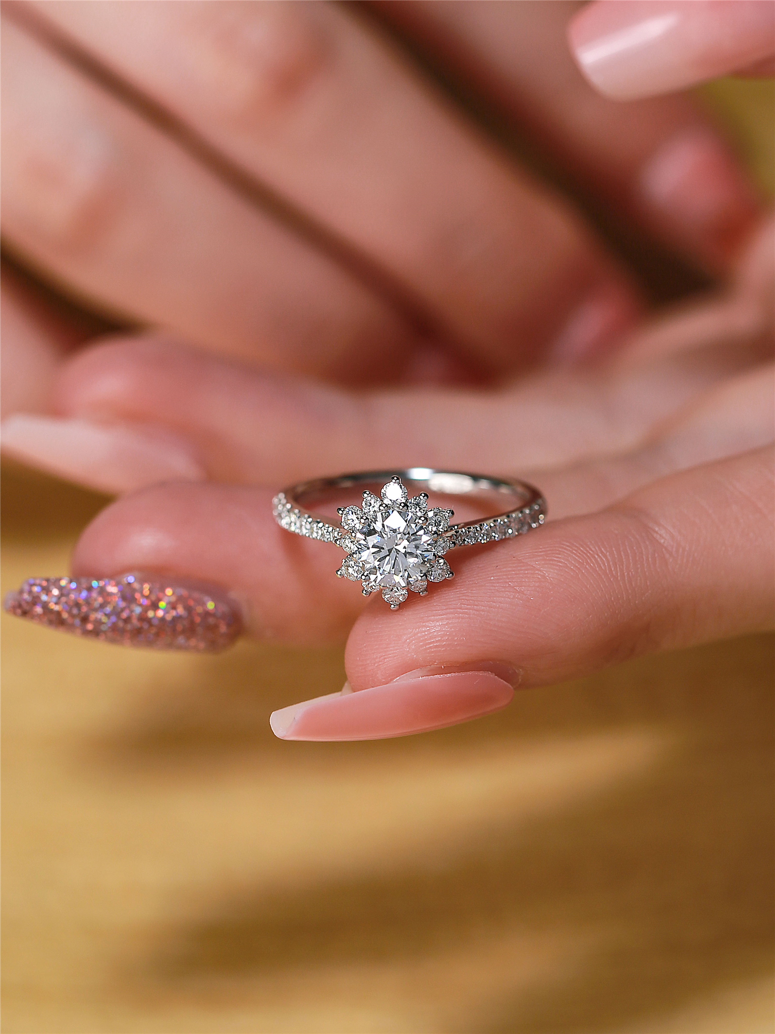 钻戒工艺很好,我两年前就在他家定了一个两克拉黄钻,太好看了。小钻排列鳞次栉比,严丝合缝。