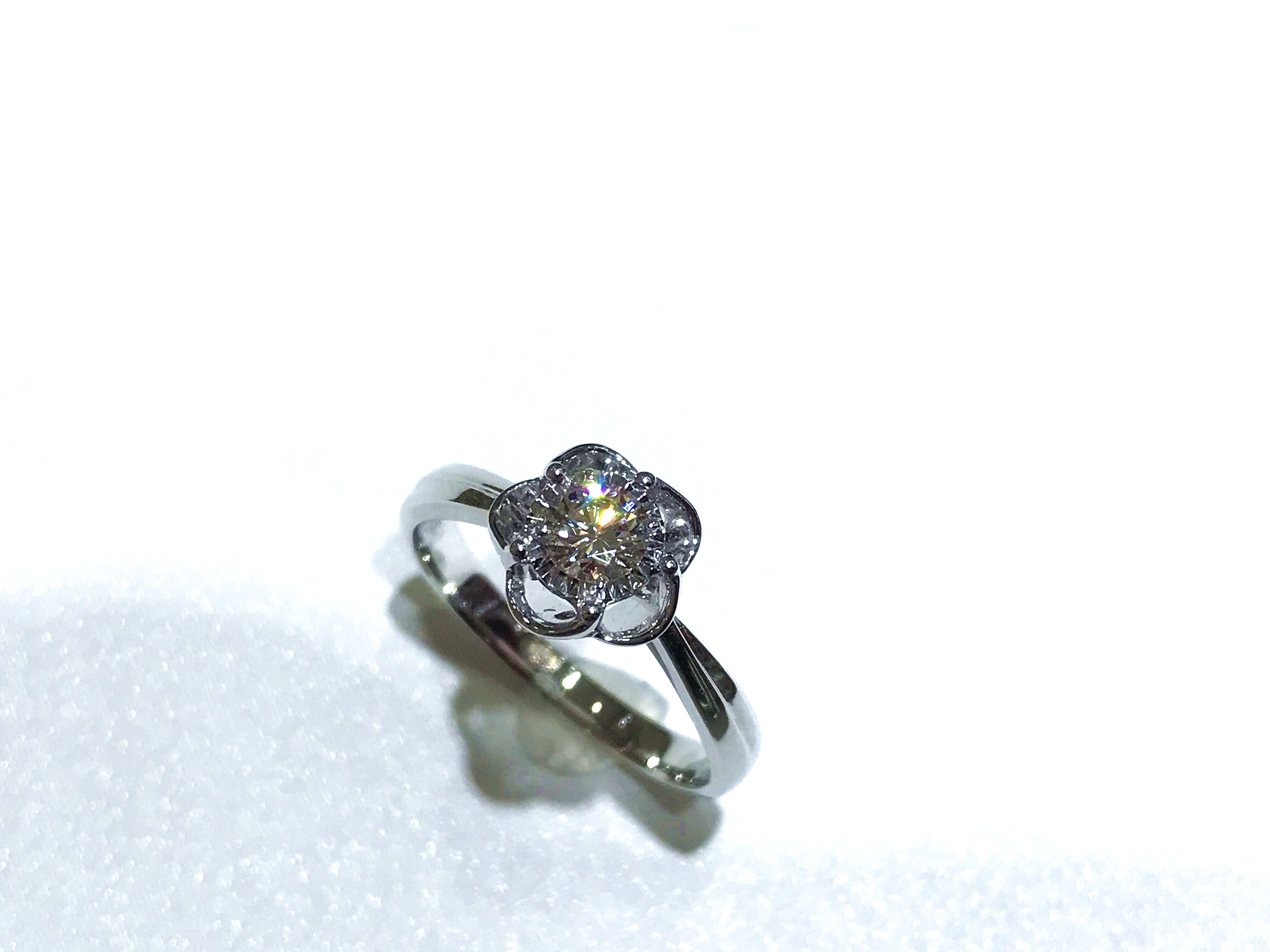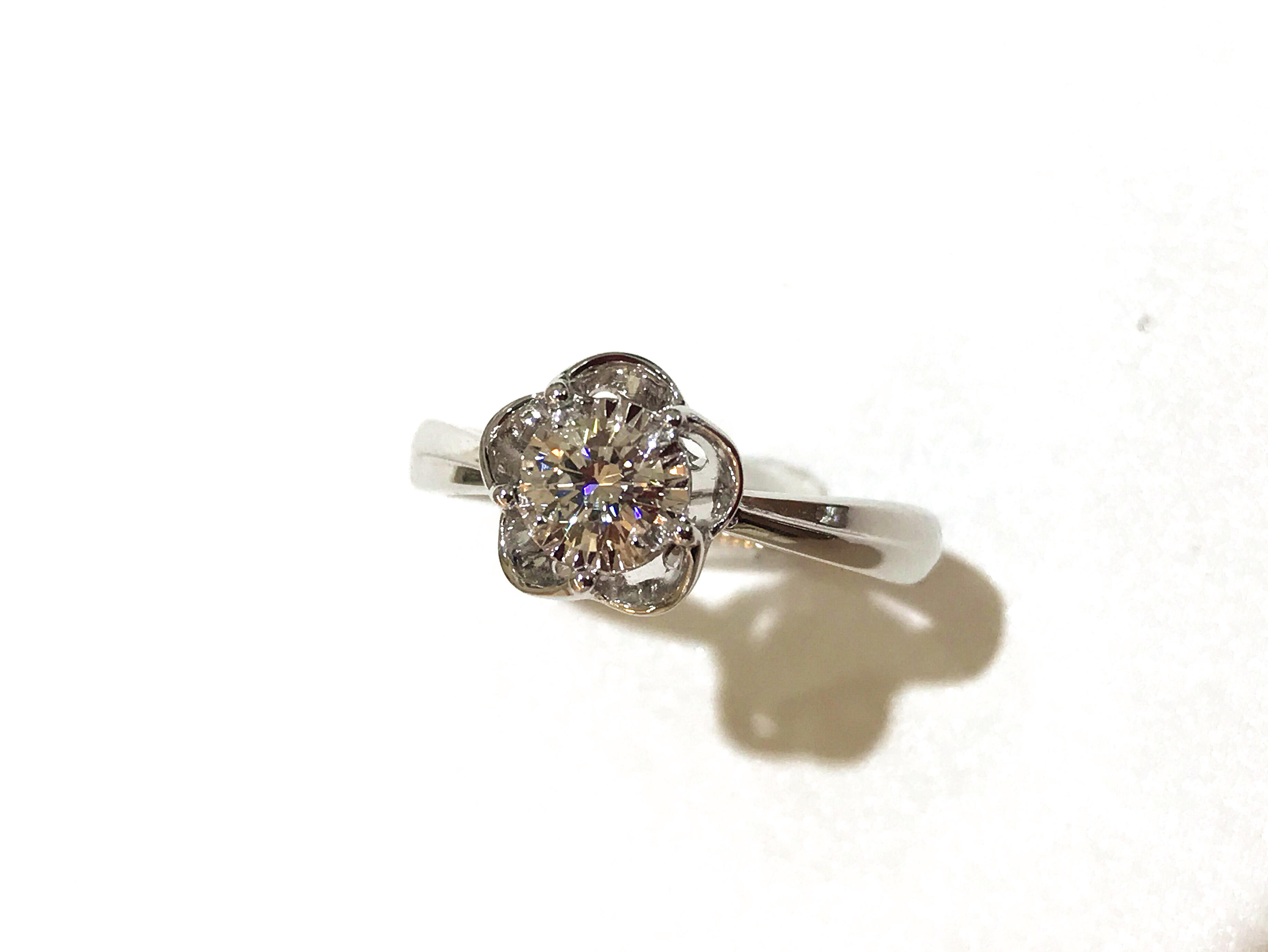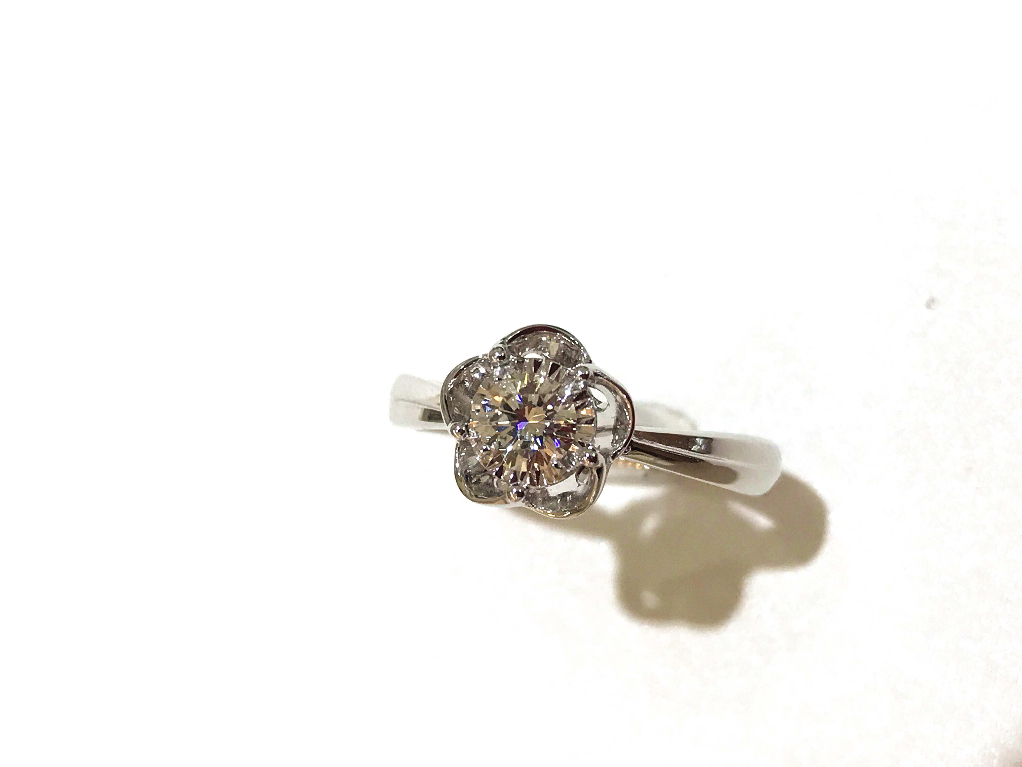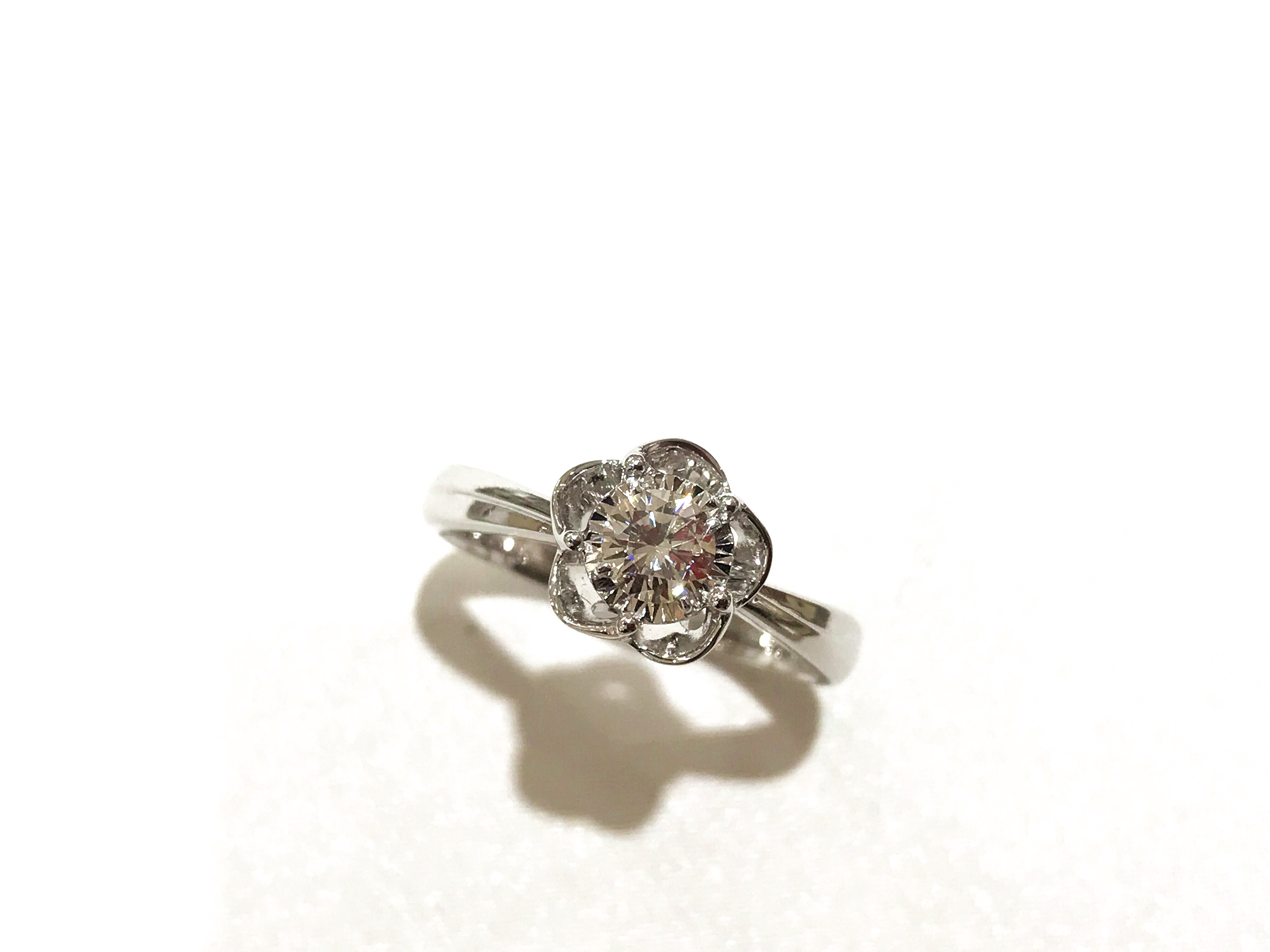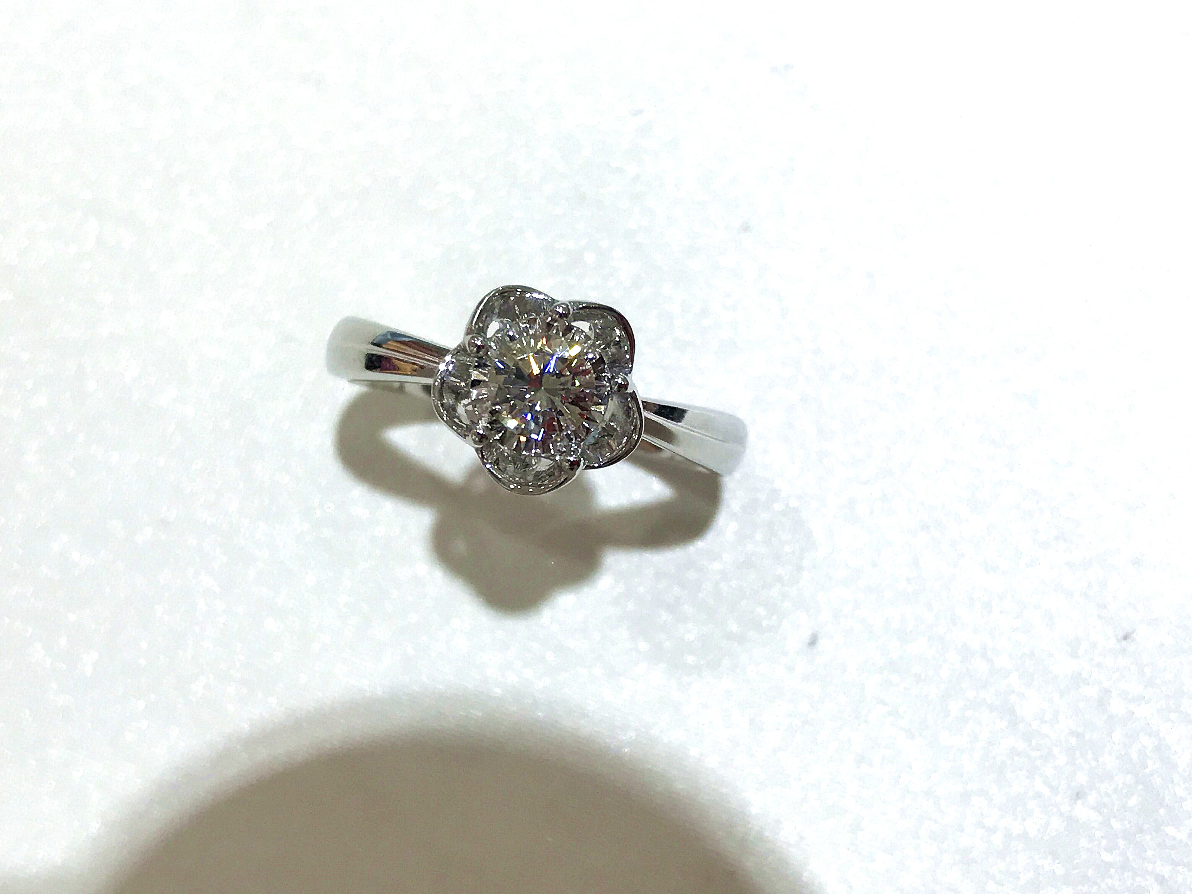 35分逆天显钻款--盛开 戒壁简洁大方,花型戒托更显女人味,四爪型的镶嵌方式也使得钻石火彩更加棒,更通透,同时这款35分的钻石视觉效果直逼1克拉的视觉效果哦