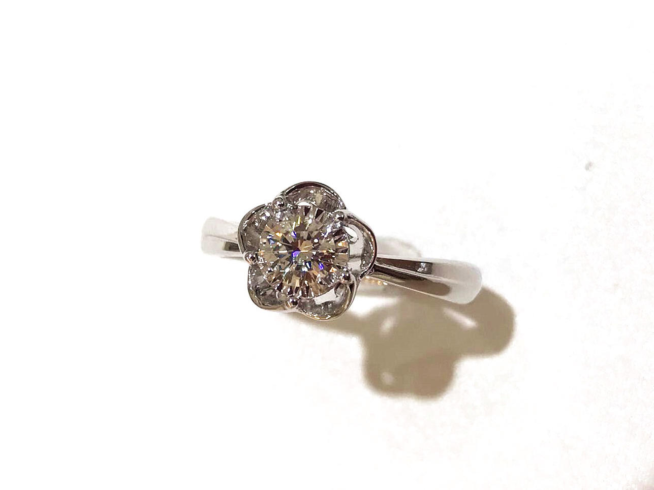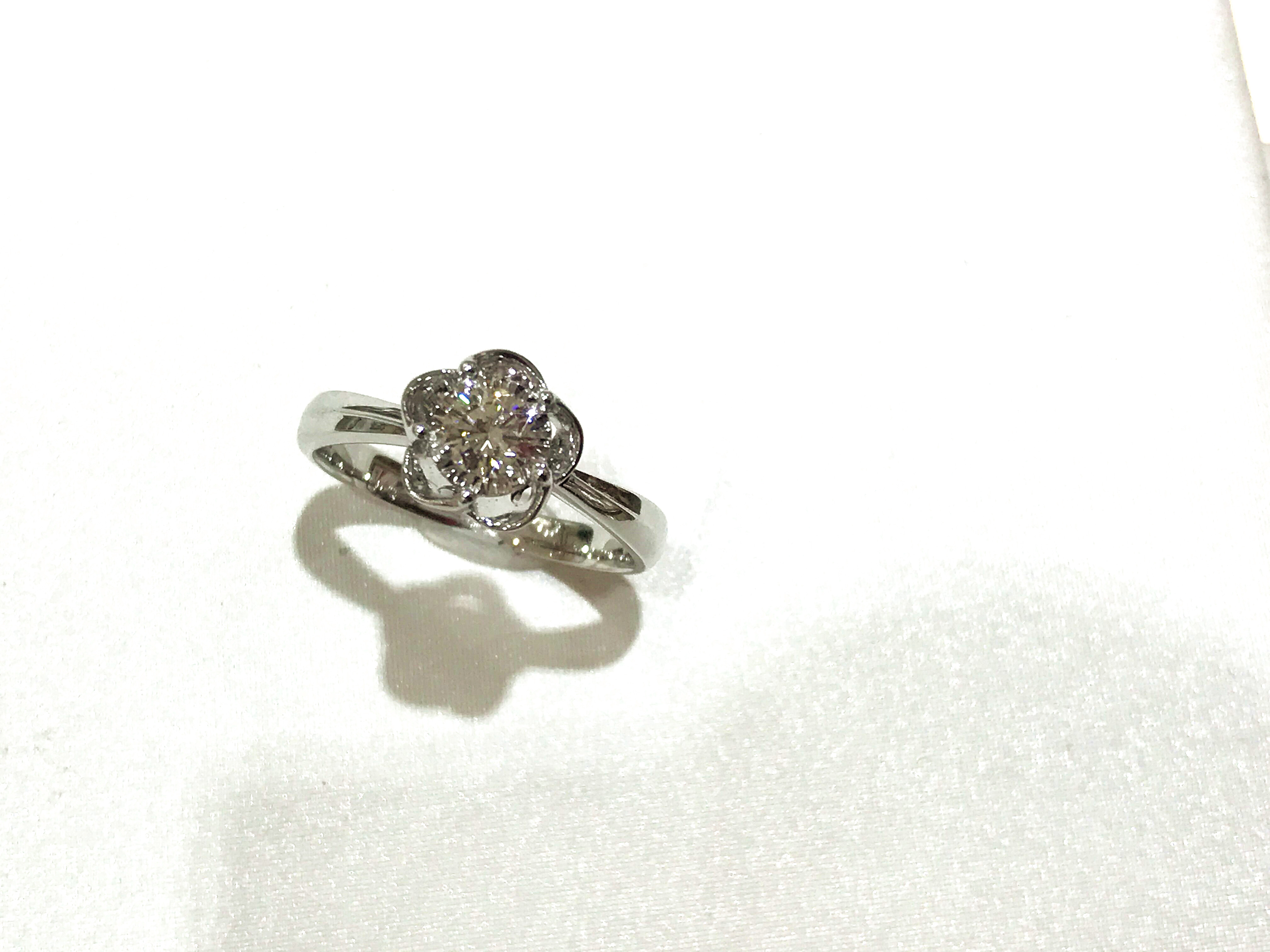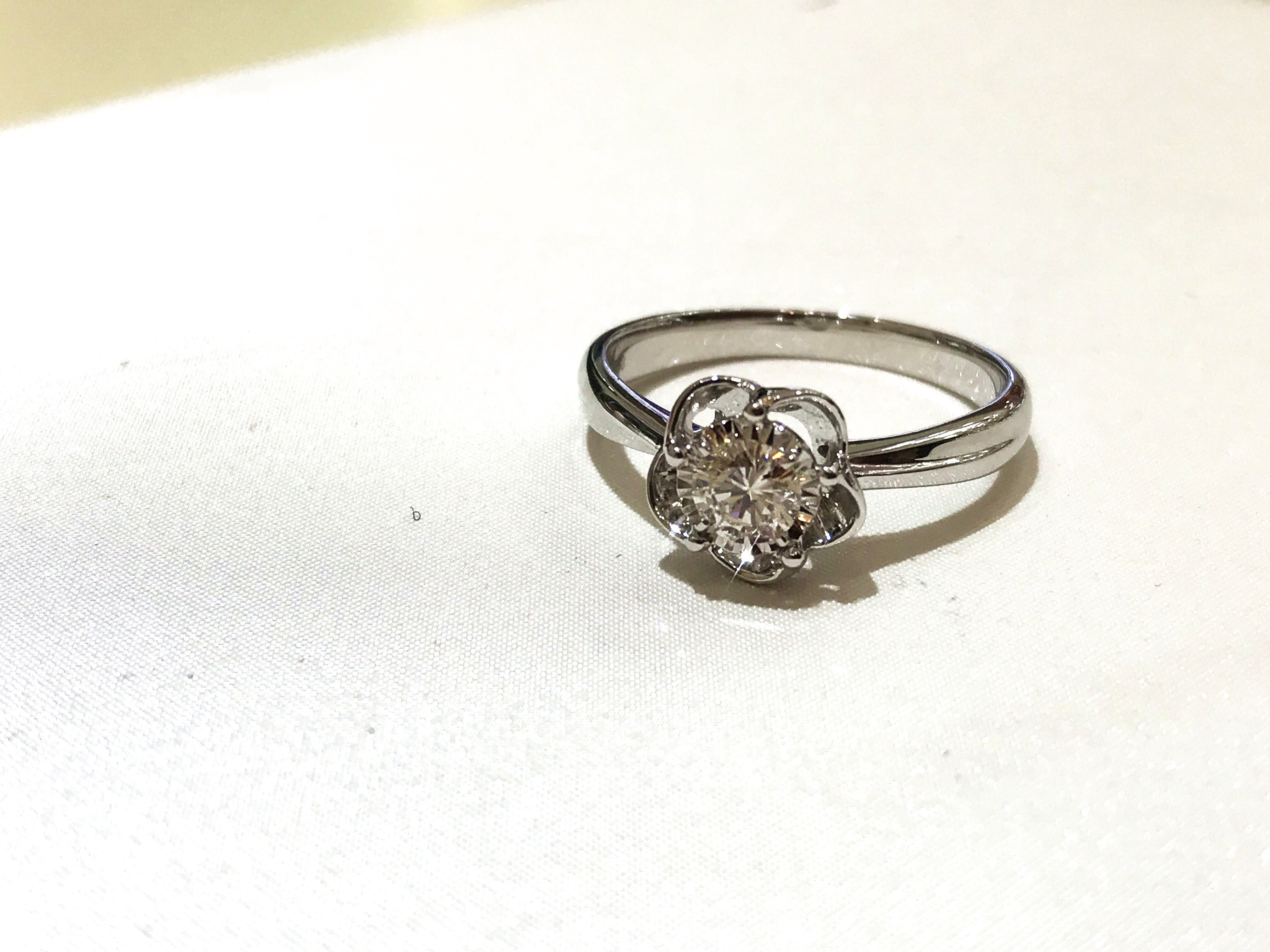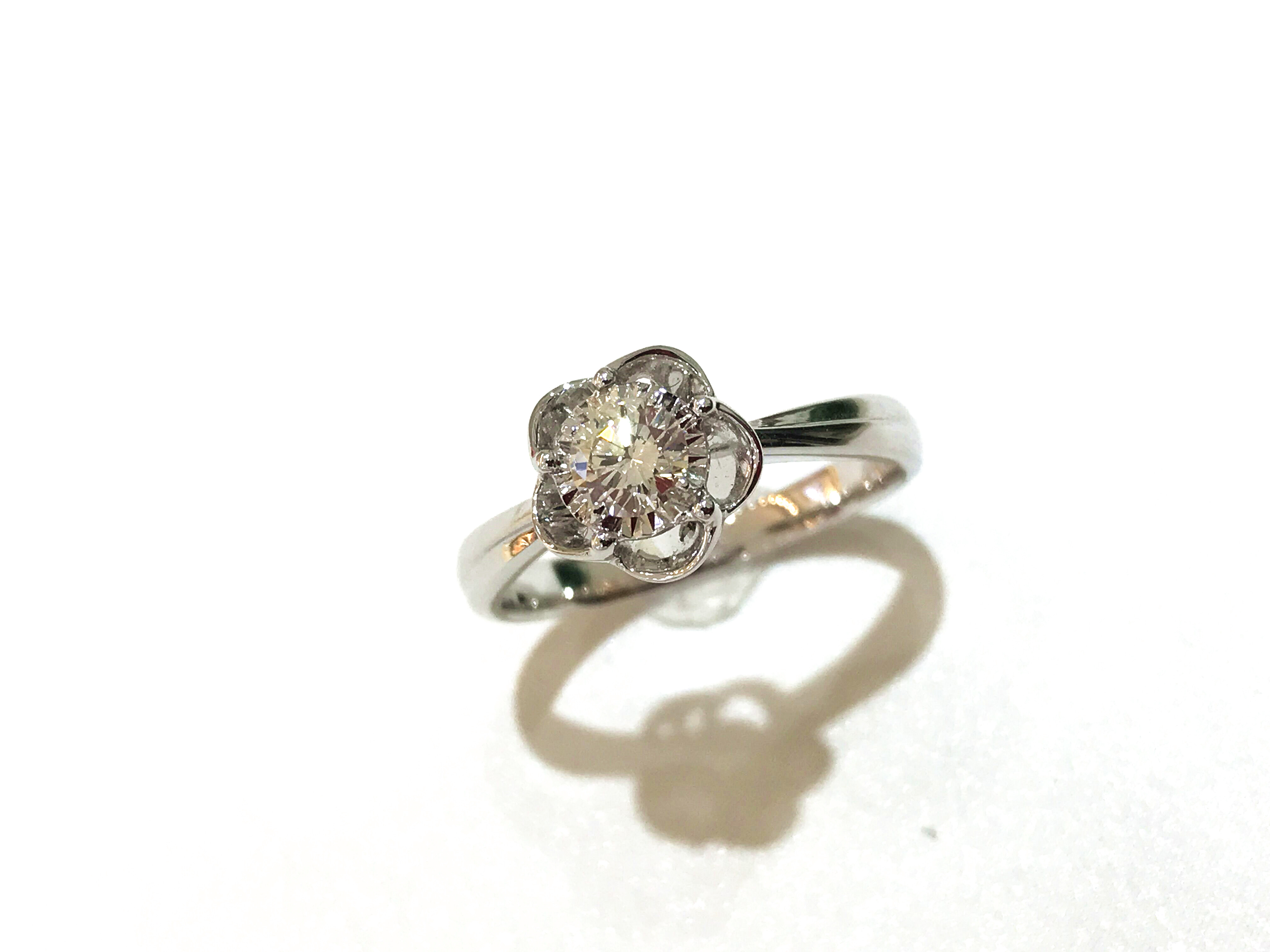 35分逆天显钻款--盛开 戒壁简洁大方,花型戒托更显女人味,四爪型的镶嵌方式也使得钻石火彩更加棒,更通透,同时这款35分的钻石视觉效果直逼1克拉的视觉效果哦