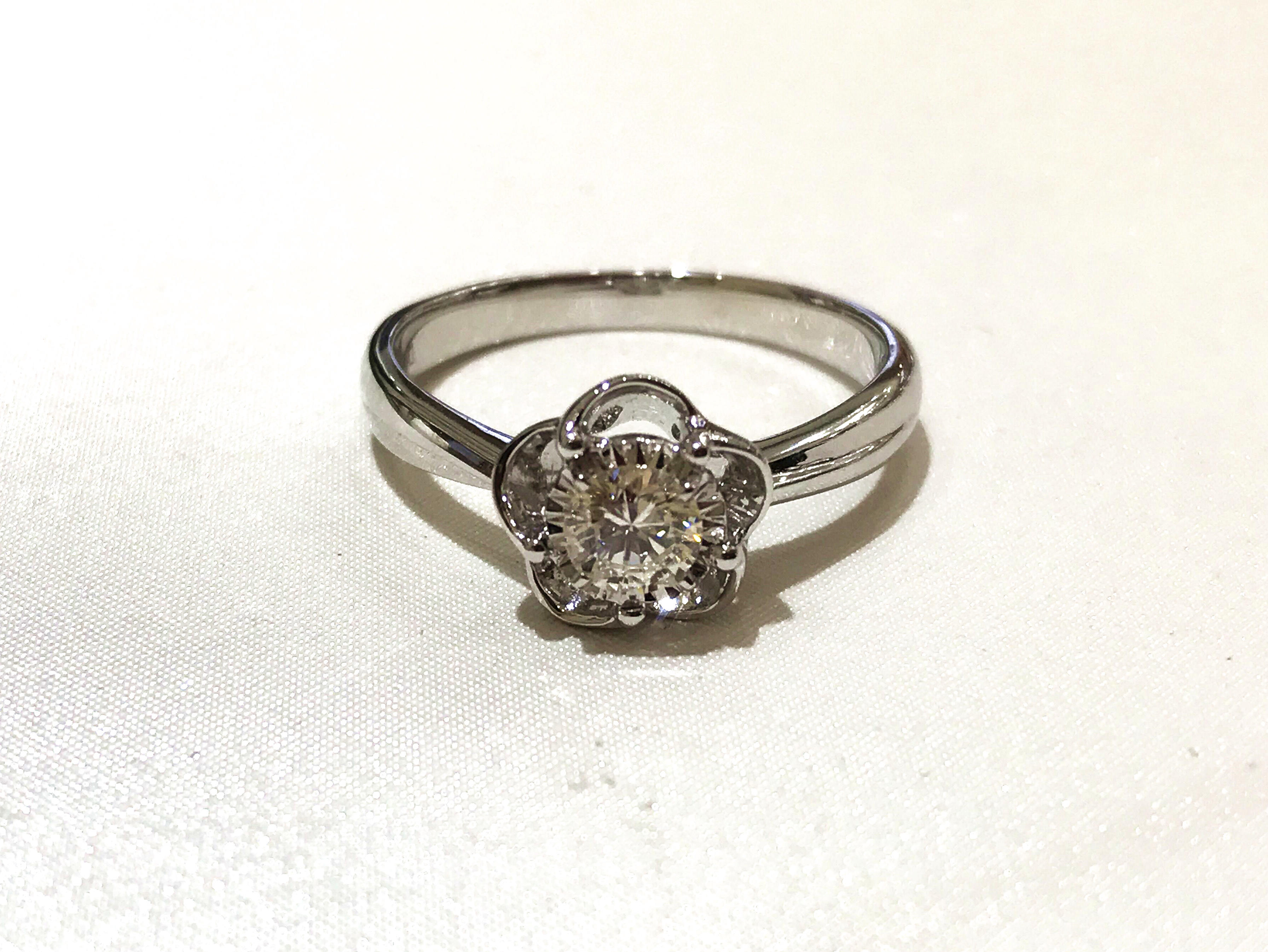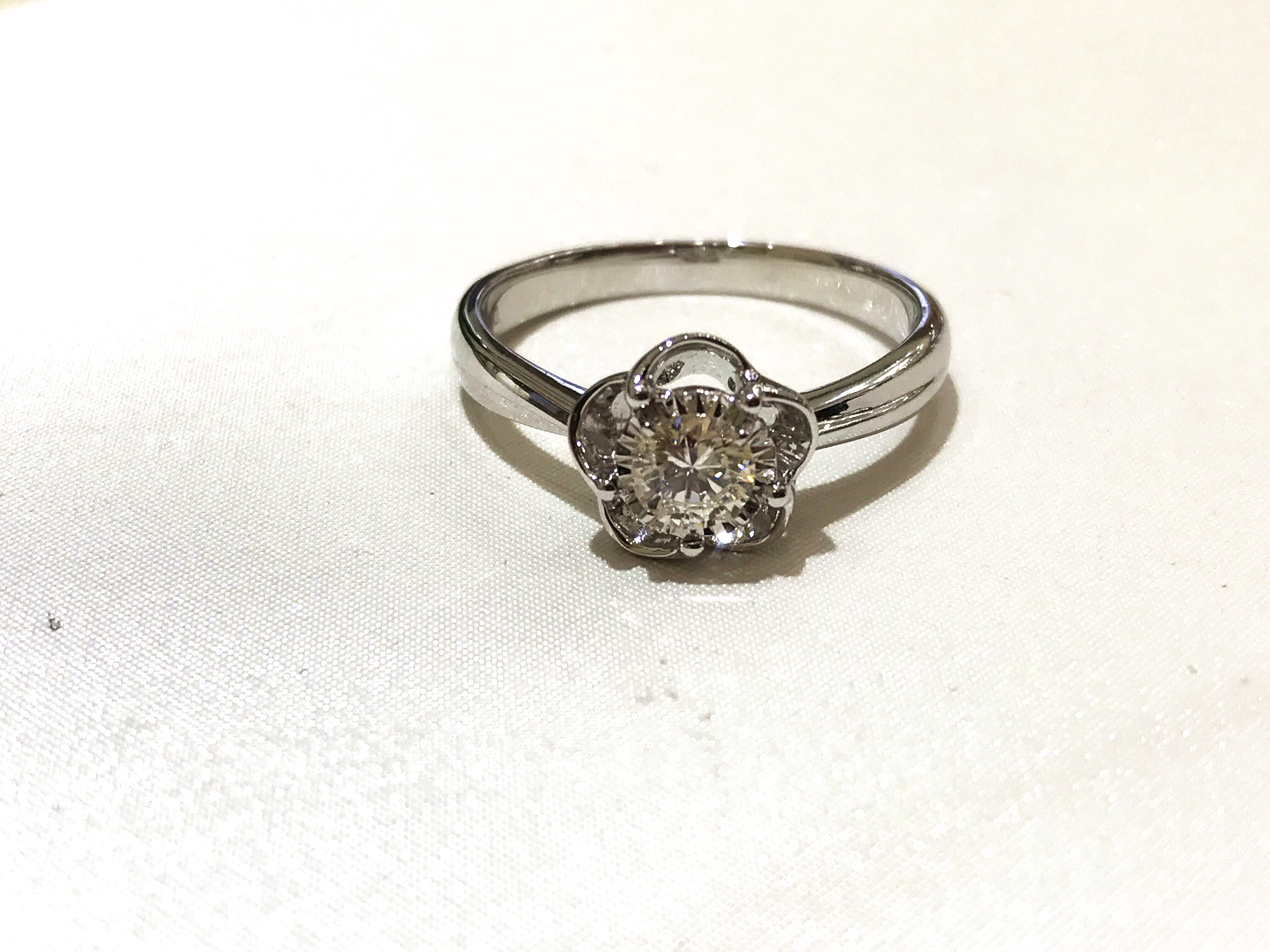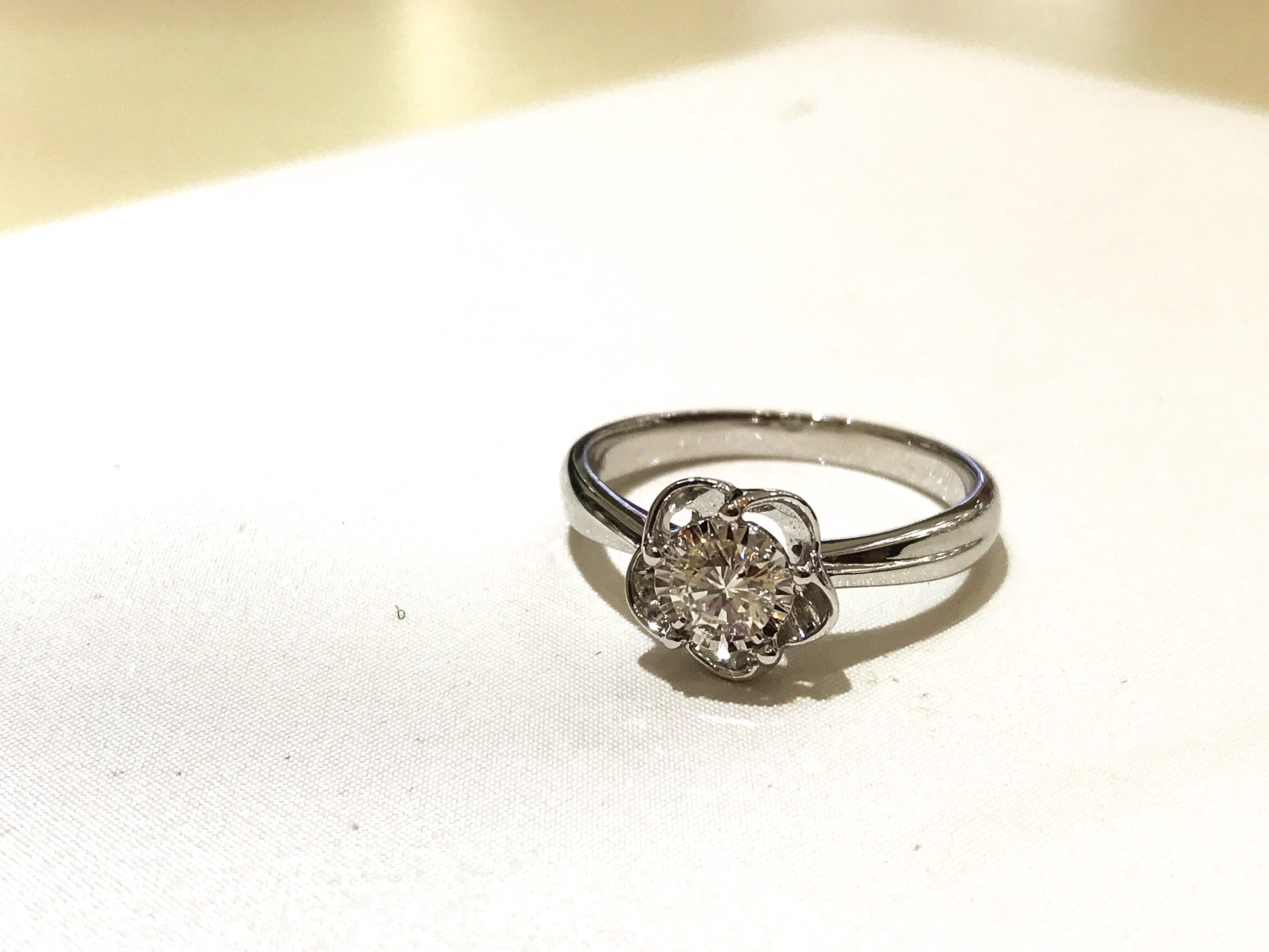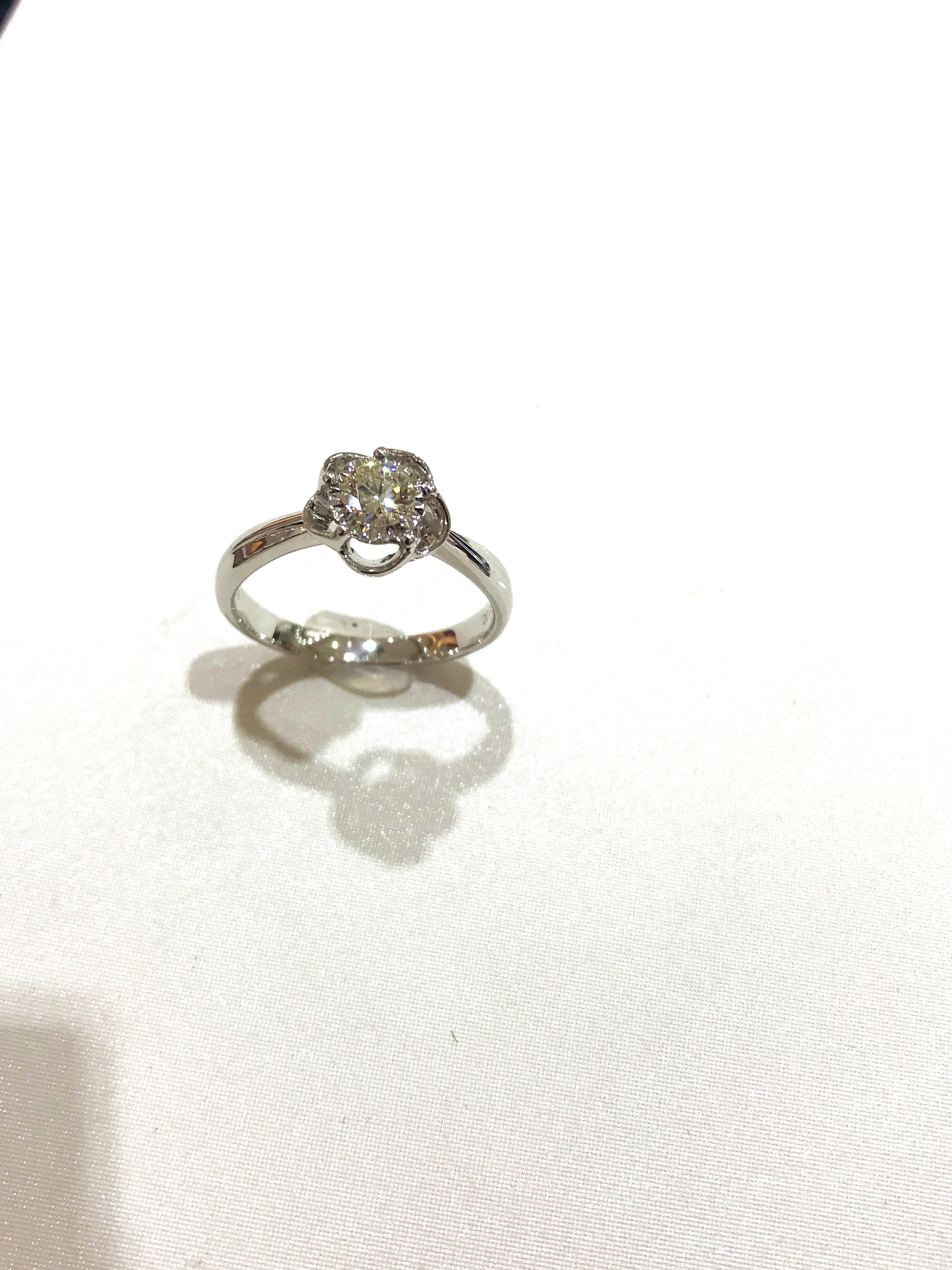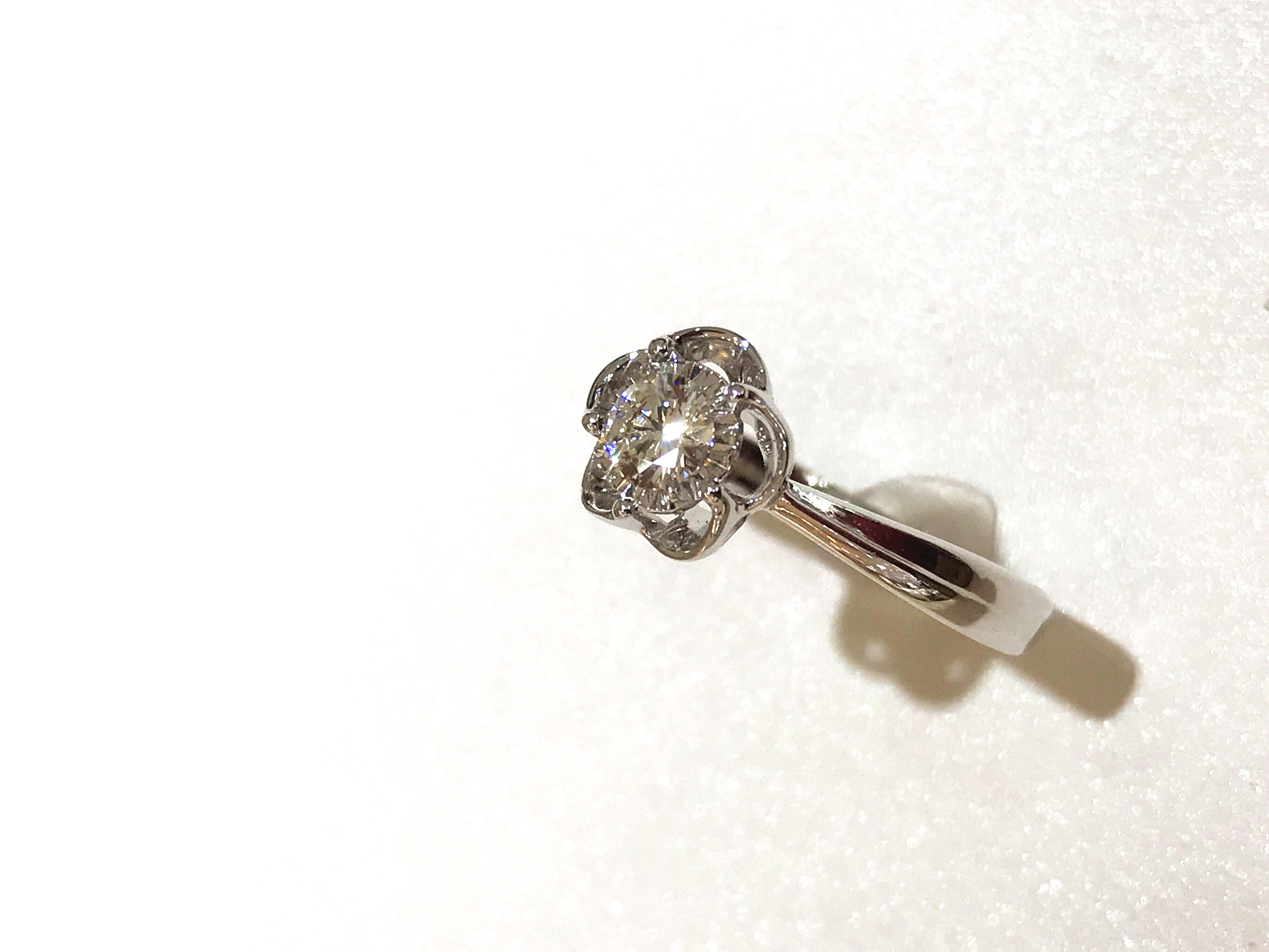 35分逆天显钻款--盛开 戒壁简洁大方,花型戒托更显女人味,四爪型的镶嵌方式也使得钻石火彩更加棒,更通透,同时这款35分的钻石视觉效果直逼1克拉的视觉效果哦