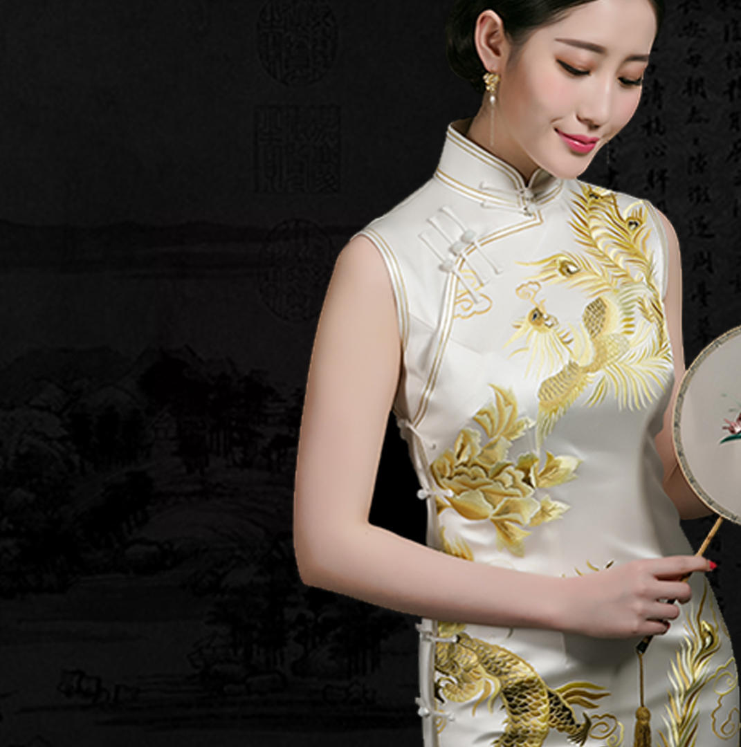 龙凤呈祥,是中国最古老的祝福新人百年好合的美好刺绣图案,经过300多小时的手工绣制而成。大真开襟,玉石纽扣,手工欠边。给你完美的中式嫁衣!量体定制,一人一板,手工缝制而成。