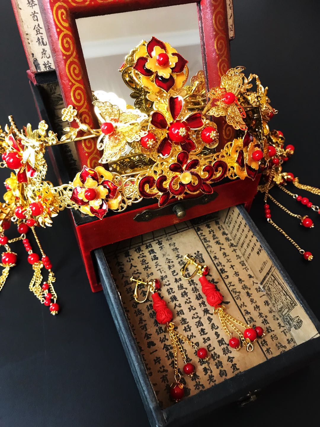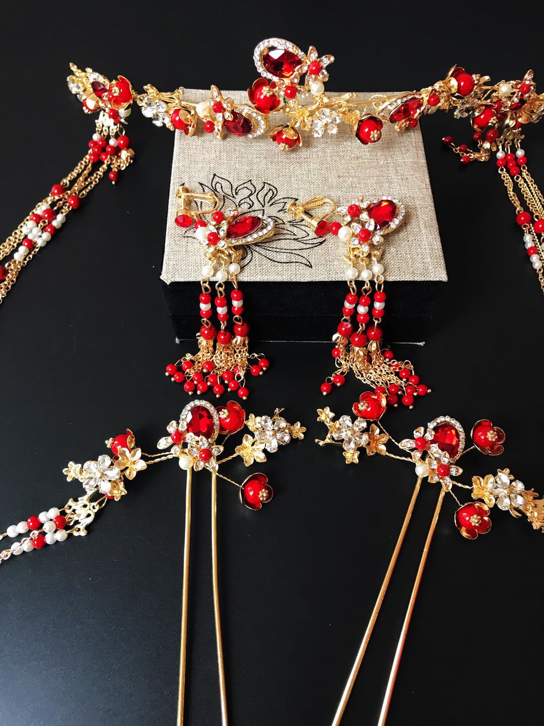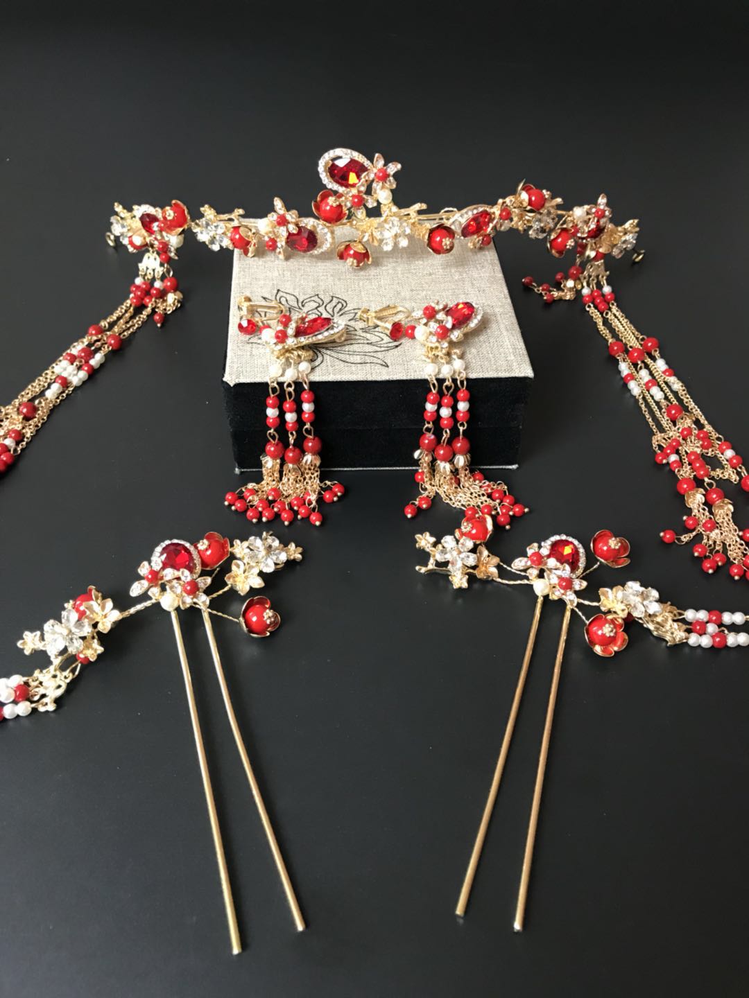 重工牡丹凤凰秀禾服一套租赁3天,手工头饰一套租赁,赠送手工绣花鞋一双。