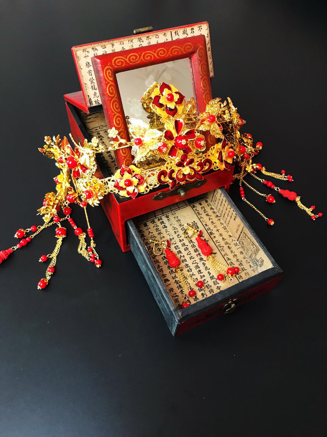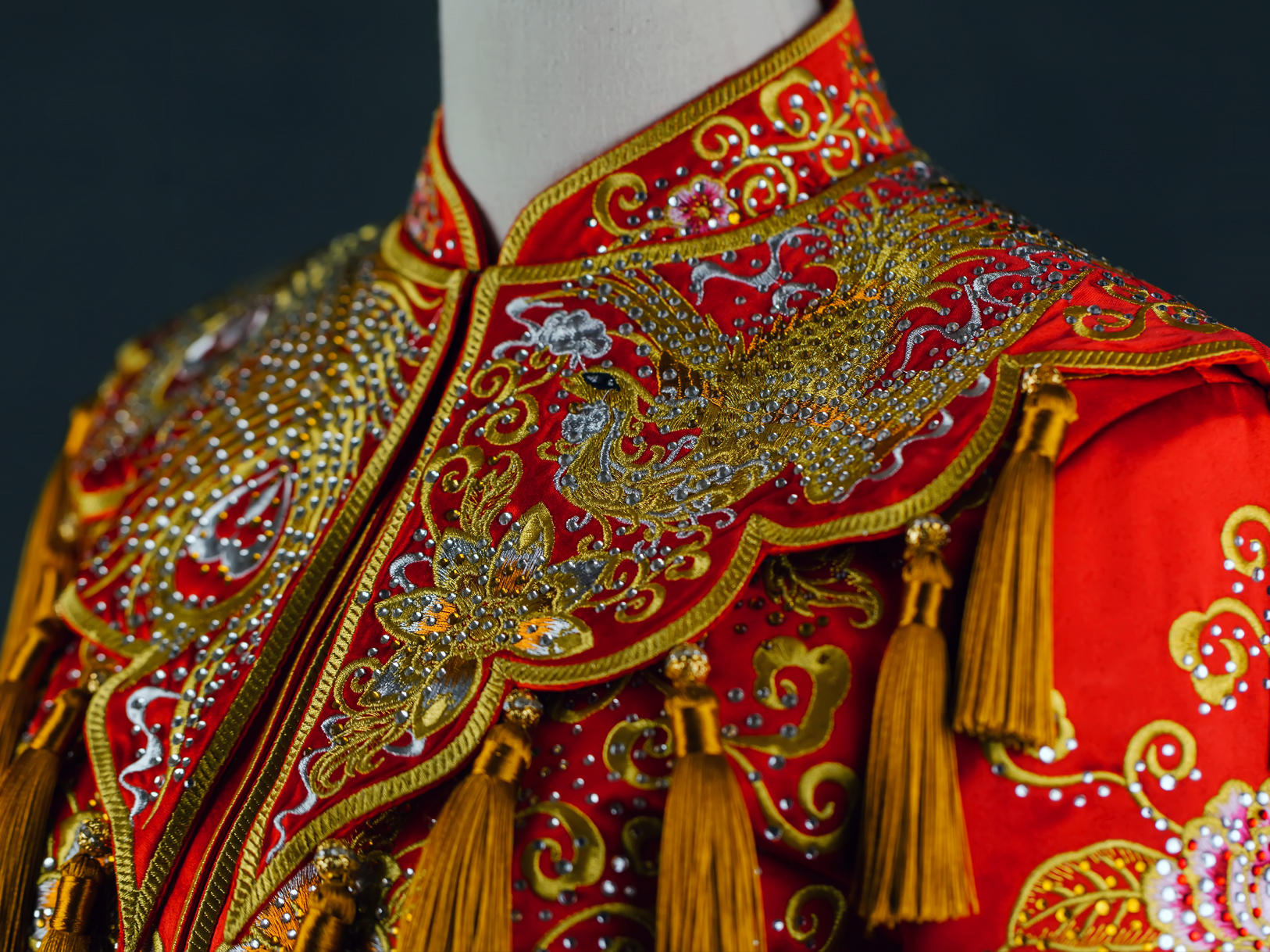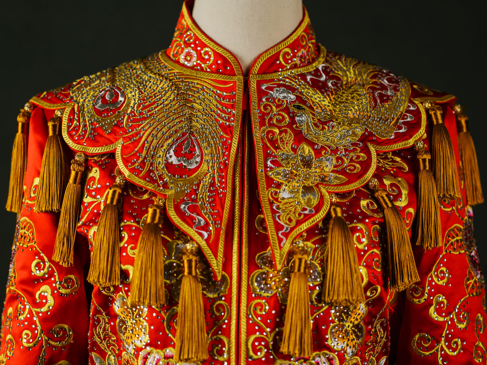 重工牡丹凤凰秀禾服一套租赁3天,手工头饰一套租赁,赠送手工绣花鞋一双。