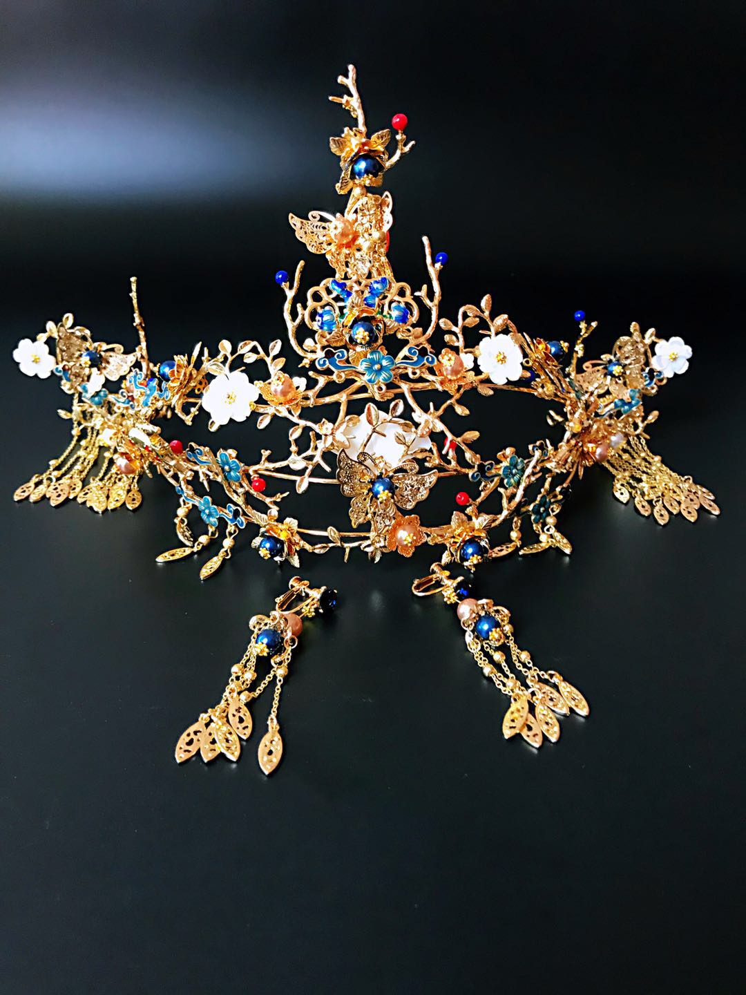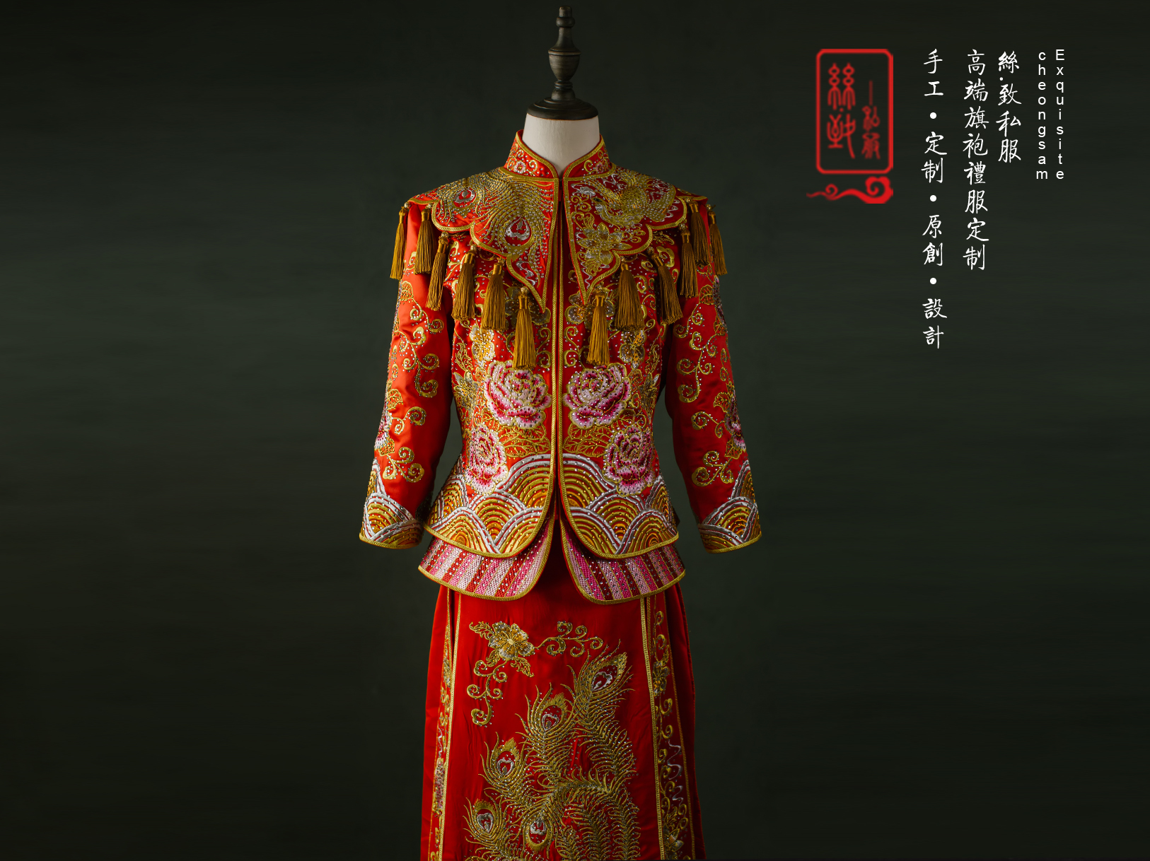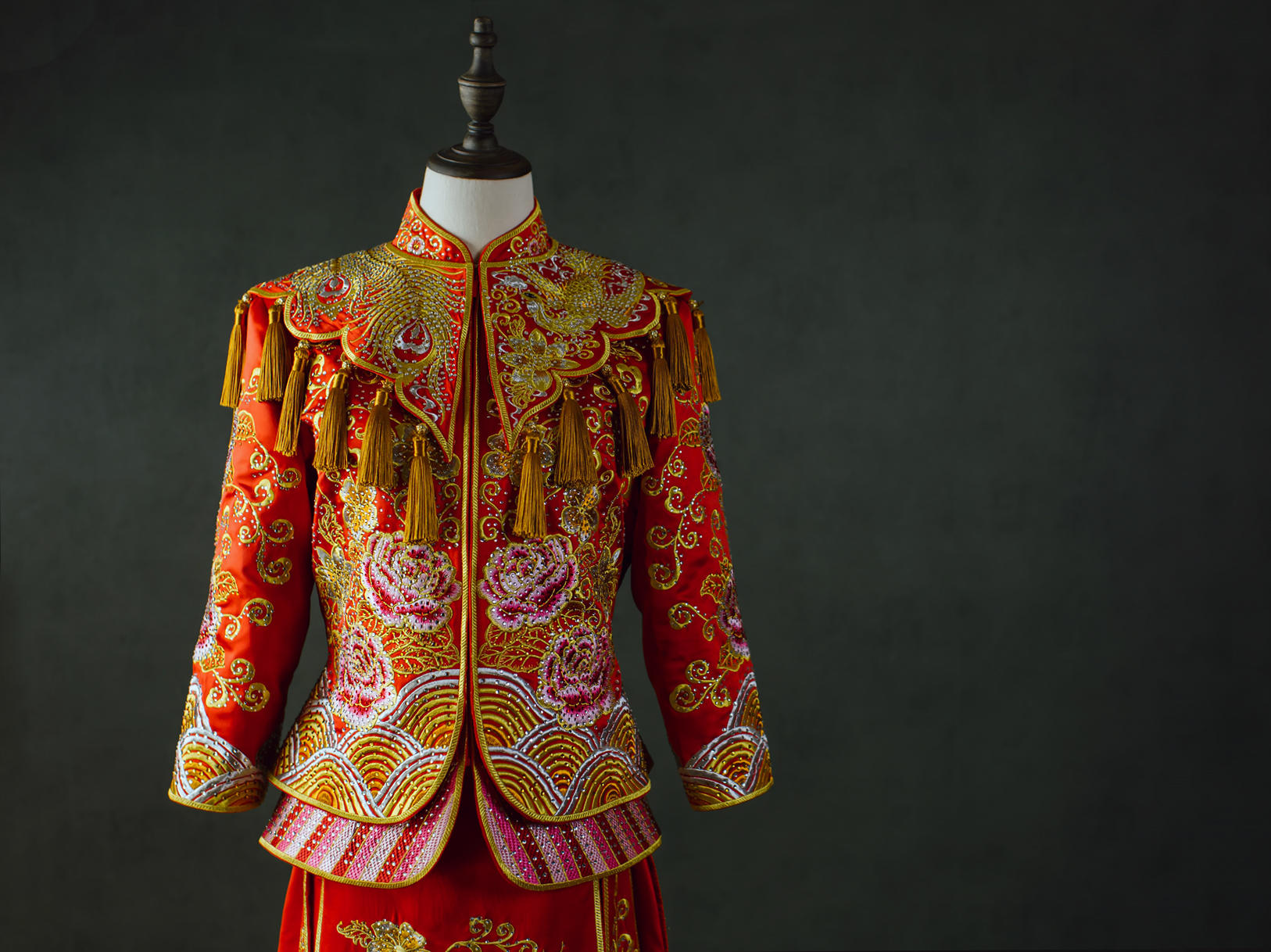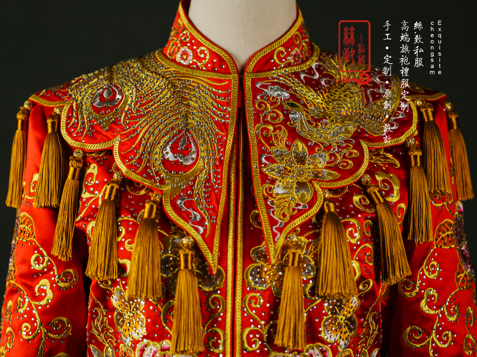 重工牡丹凤凰秀禾服一套租赁3天,手工头饰一套租赁,赠送手工绣花鞋一双。有押金,无清洗费。