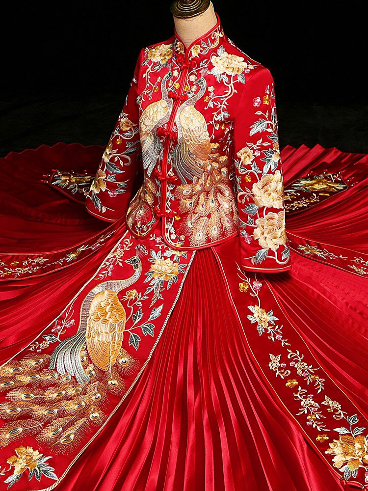 齐地或秀禾一套,<br />拖尾主纱一套,<br />敬酒服一套,<br />伴娘服1-4套,<br />伴郎服(马褂)1-4<br />赠送总监妈妈妆<br />