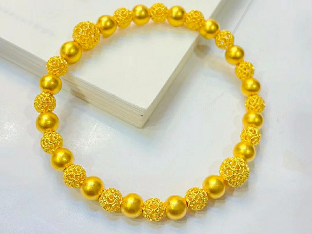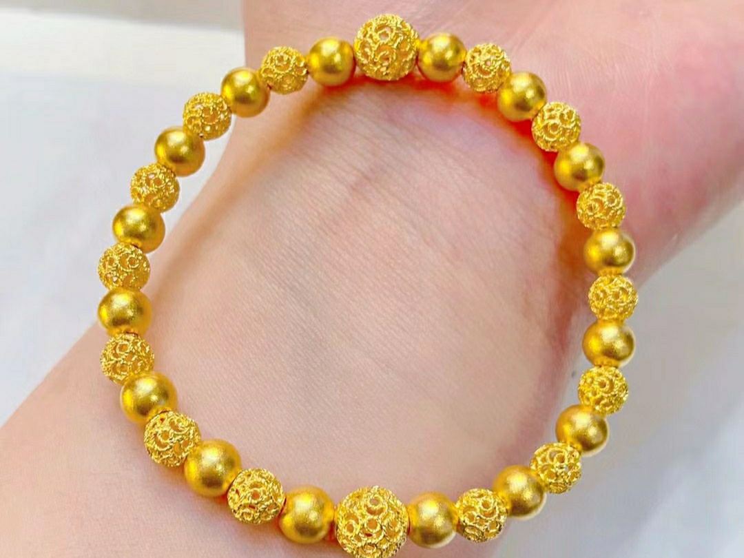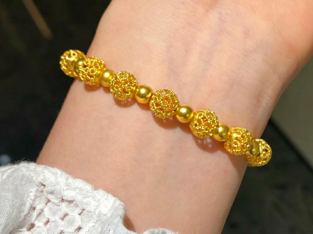镂空花丝绣球黄金手串有点别致哦!<br />绣球玲珑搭配古法金珠精致的宛如艺术品一般,带上去优雅又高级<br />学会富养自己,活成散发光彩的女主角!