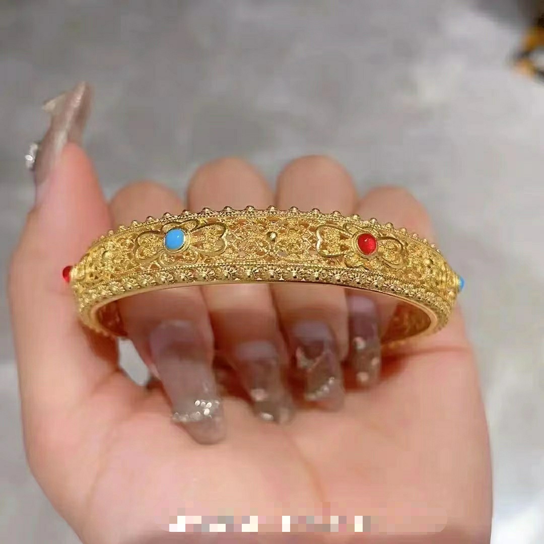 新款古法花丝皇后手镯,妥妥的宫廷风,采用纯手工拉丝工艺制作,细节漂亮的没话说,上手很大气!
