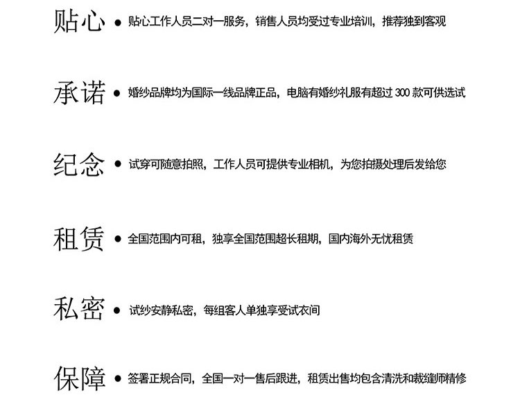 价格仅支持到店咨询 预约试纱请提前告知客服婚期 口头预定档期无效 需要到店试穿,支付租赁费用后保留档期