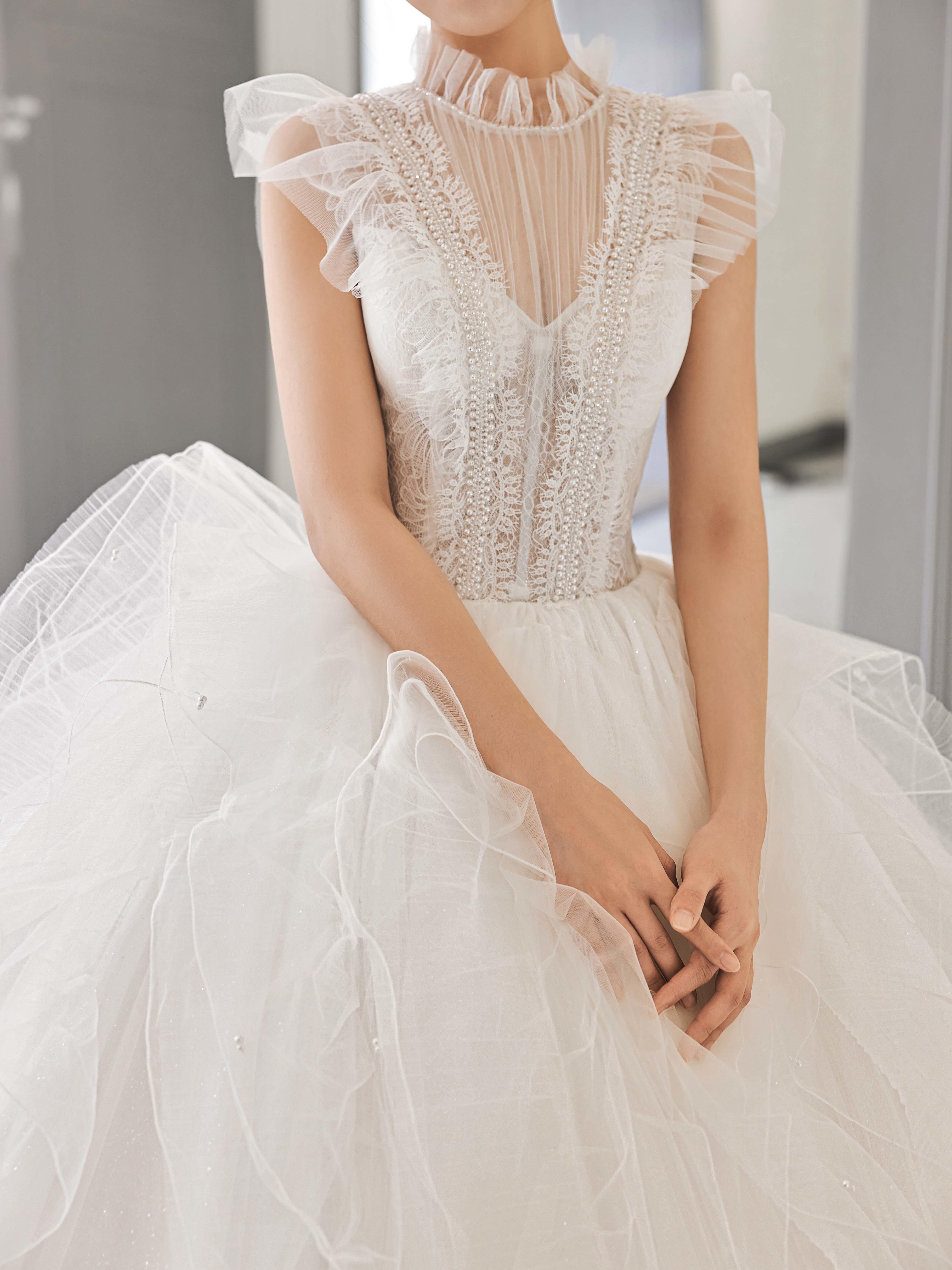 国内一线品牌主纱 一件 清新雅致晚礼服 一件 手工刺绣小五福 一件 定制头纱 一件 手套、蓬裙、量身修改、清洁熨烫